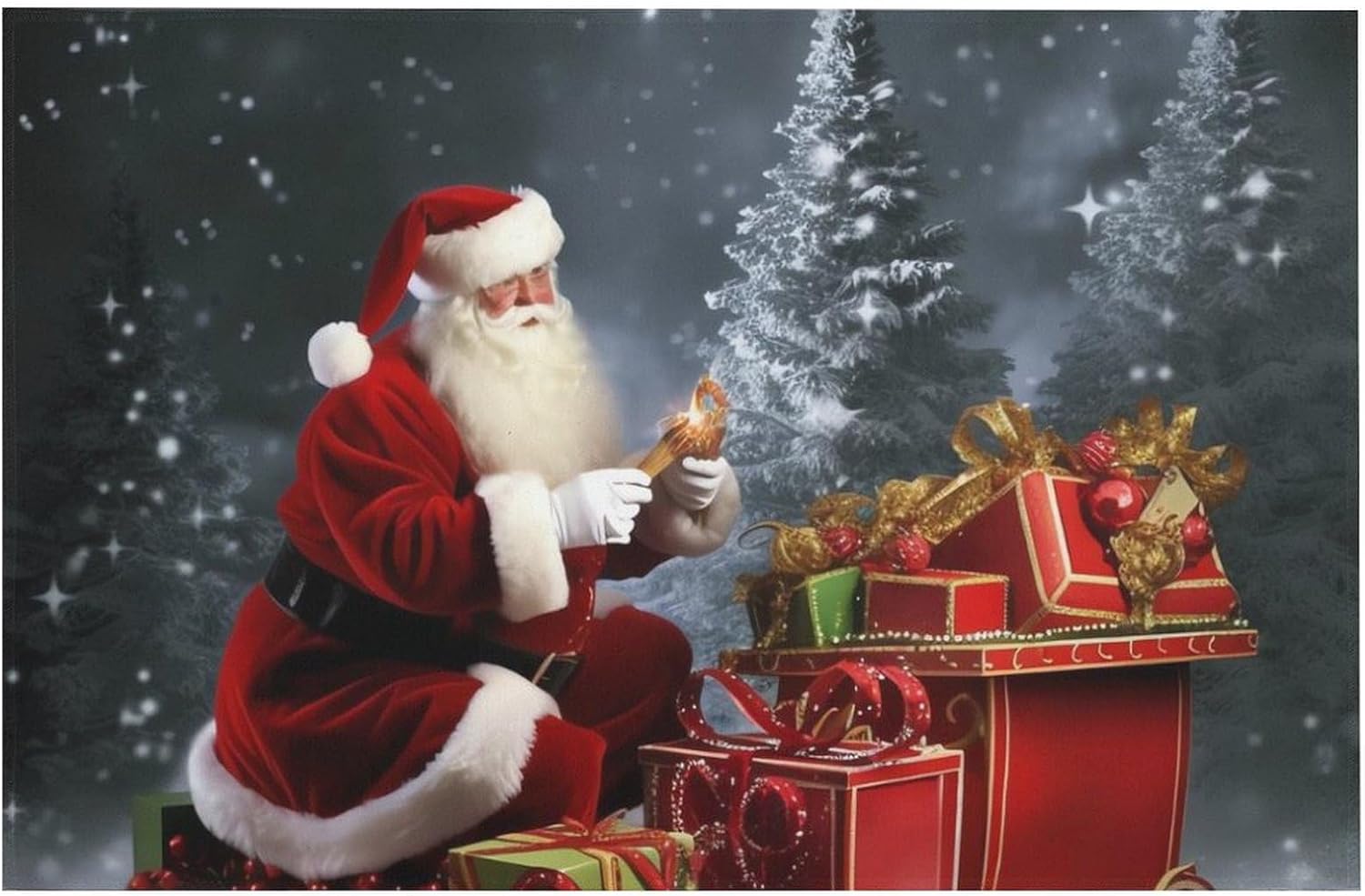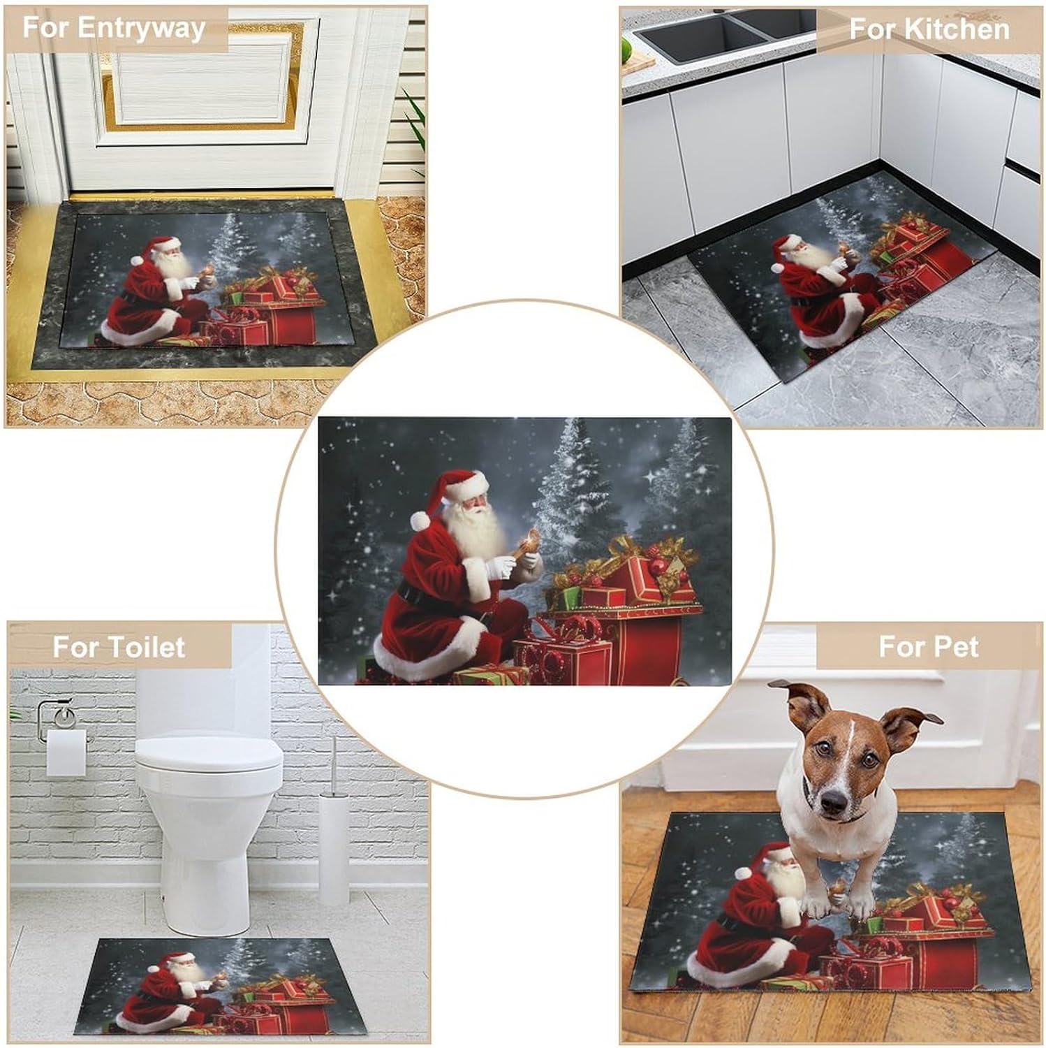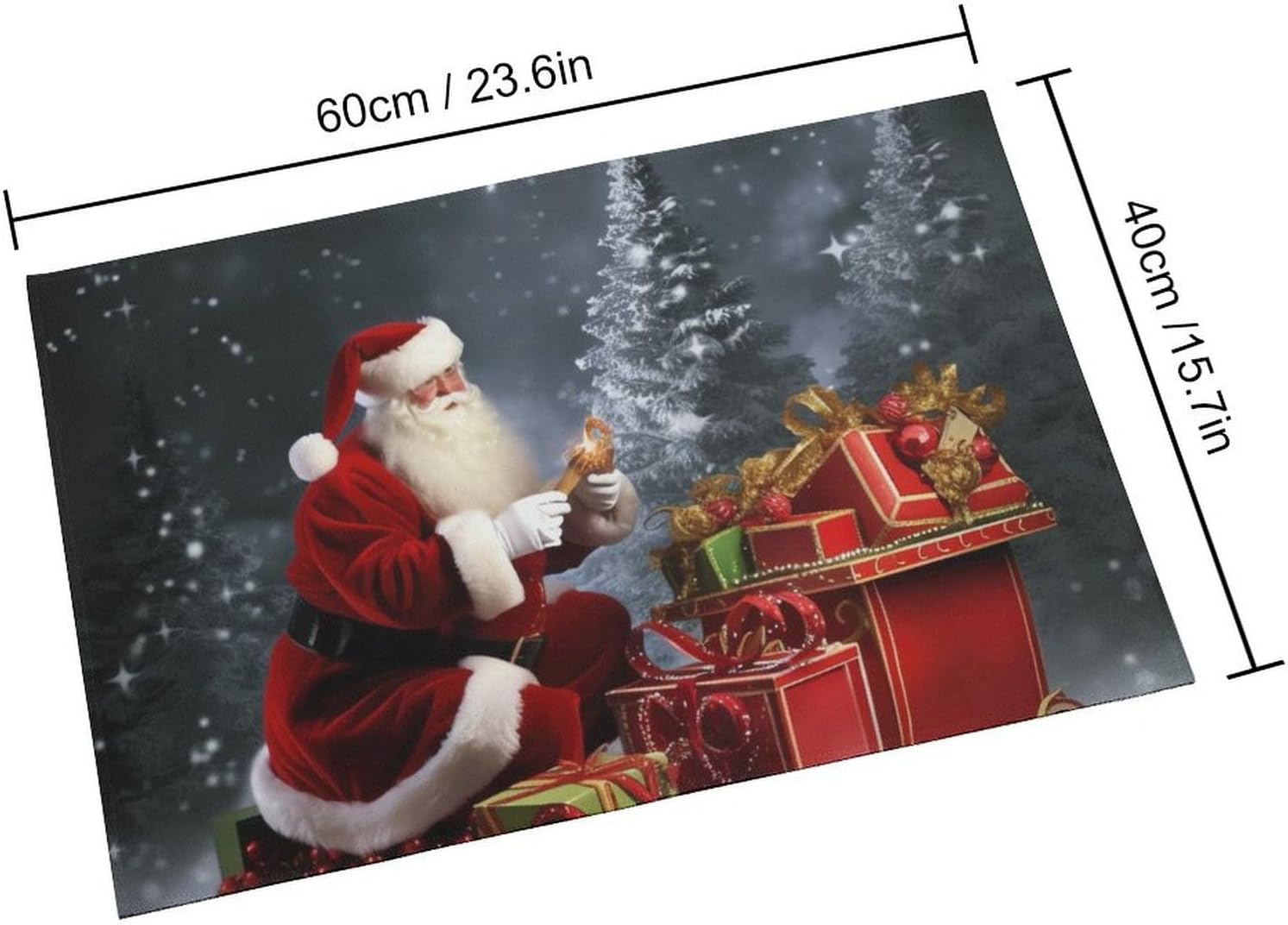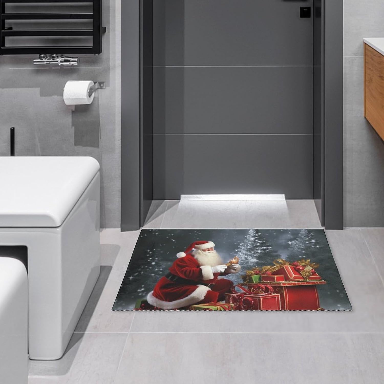 Merry Christmas Santa’s Gift Area Rugs Soft Crystal Velvet Carpets Washable Living Room Rugs Modern Bedside Rugs Non-Slip Large Floor Mats for Bedroom Kitchen Dining Room