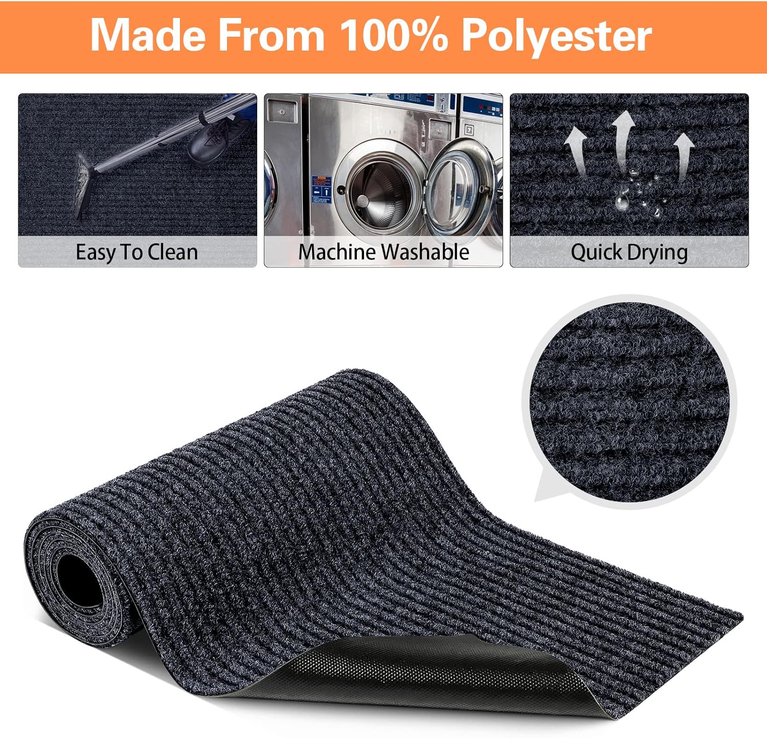 Material de calidad: este tapete de entrada a rayas impermeable está hecho de poliéster y goma de calidad, e incluye respaldo de goma antideslizante que puede evitar fugas de humedad hasta cierto punto mientras mantiene esta alfombrilla en su lugar