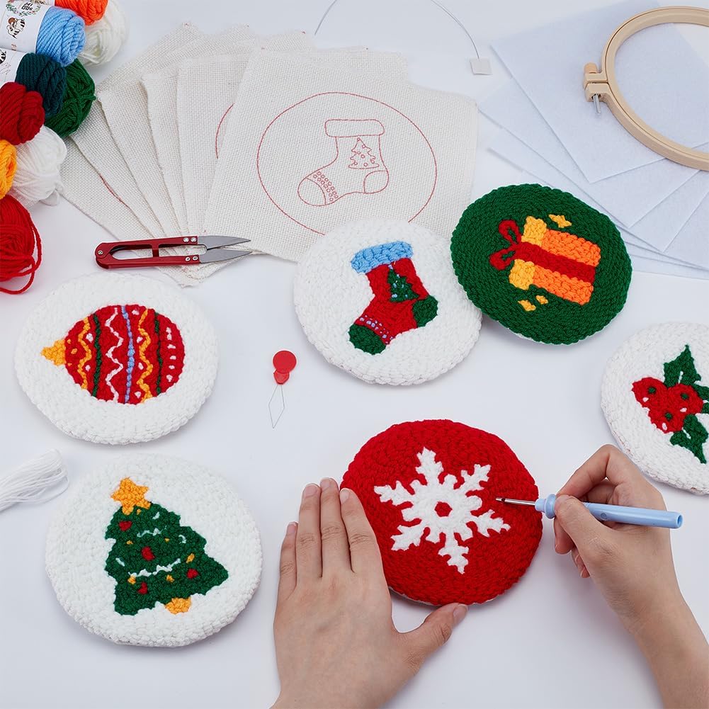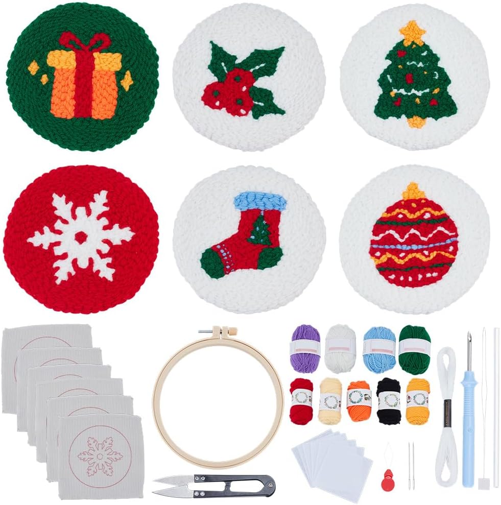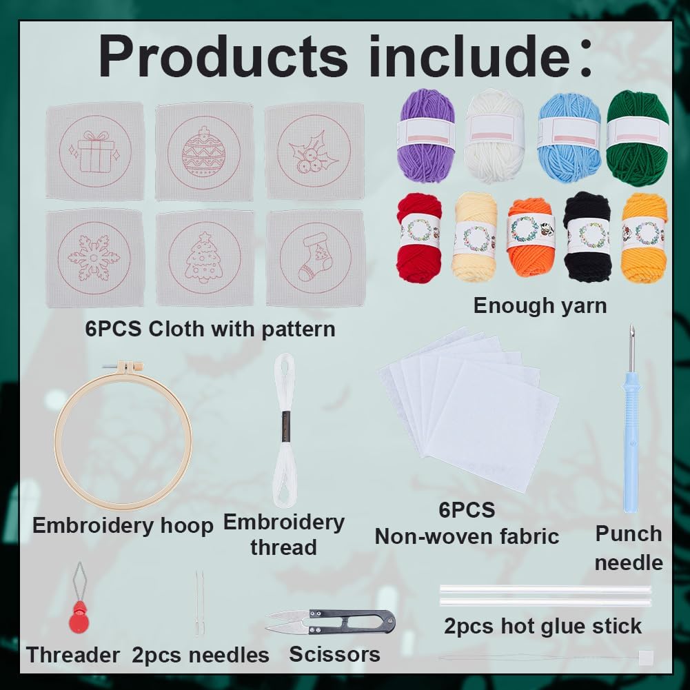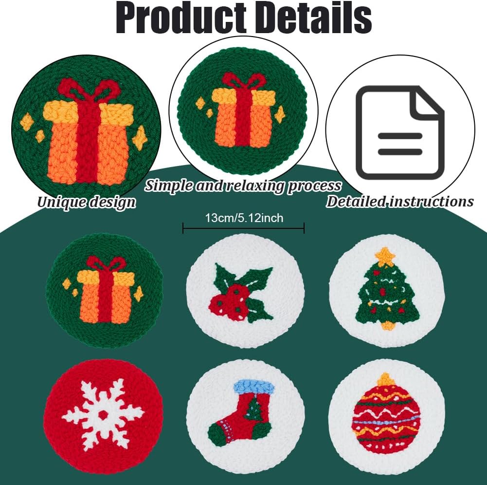 El paquete incluye: recibirás 6 piezas de tela con patrón, nueve colores de hilo de alta calidad, herramientas de mano, aro de bordado de plástico y tutoriales detallados, un montón de accesorios para satisfacer completamente tus necesidades para hacer posavasos con agujas perforadoras temáticas navideñas.