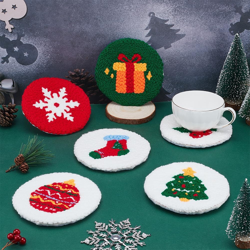 Diseños navideños festivos: este kit cuenta con 6 encantadores patrones de posavasos inspirados en la Navidad, incluyendo árboles de Navidad, copos de nieve, medias, cajas de regalo y hojas de acebo. Estos diseños añaden un fuerte ambiente festivo a tu mesa