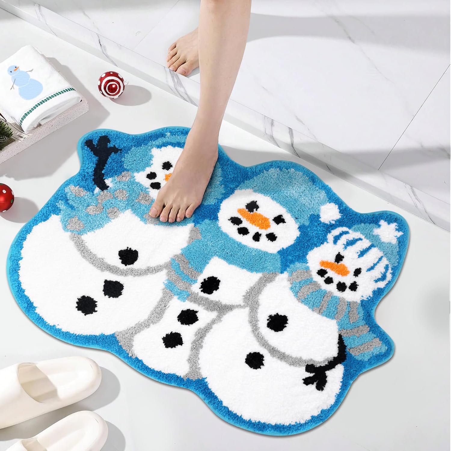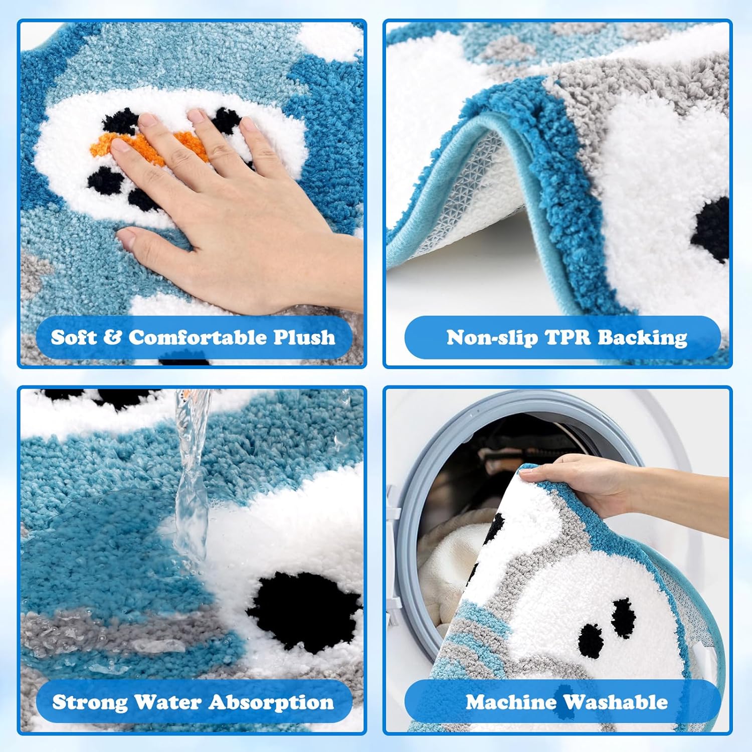 Material suave y cómodo: el tapete de muñeco de nieve está hecho de material de microfibra, suave y duradero. Además, tiene una gran calidad de absorción de agua, manteniendo tu suelo seco y limpio.