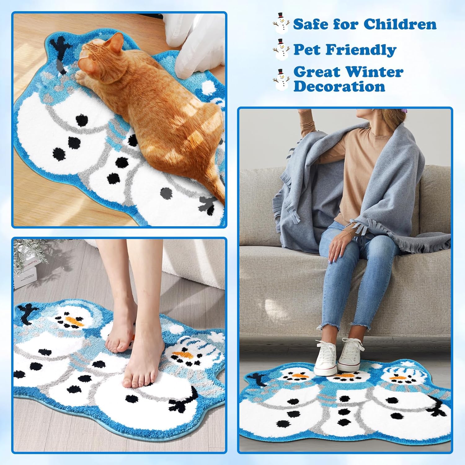 Alfombra multifuncional: el tapete de muñeco de nieve no solo es un buen ayudante de decoración de invierno, sino que también es práctico para ser una alfombra de área de juegos, alfombra de mascotas, tapete de baño, alfombra de dormitorio, alfombra de cocina, etc.