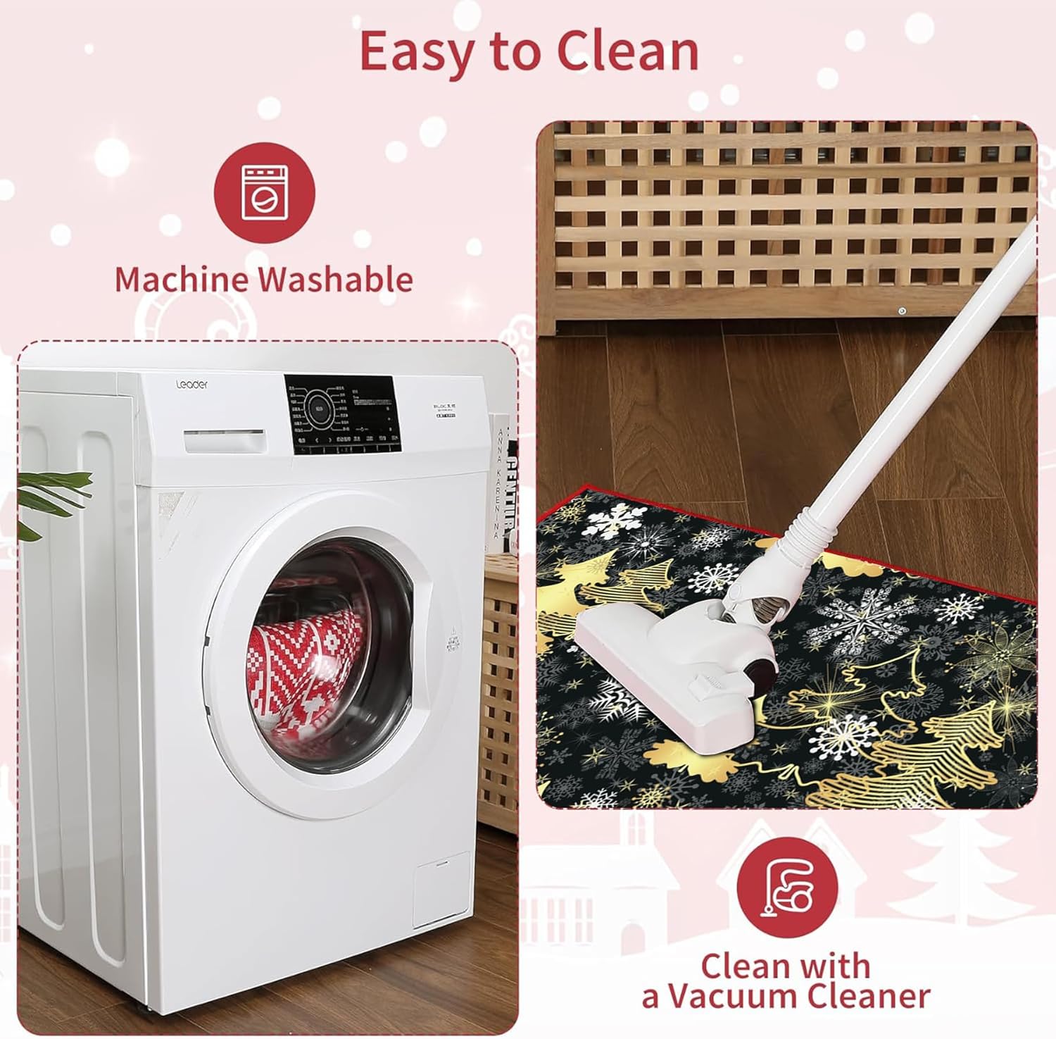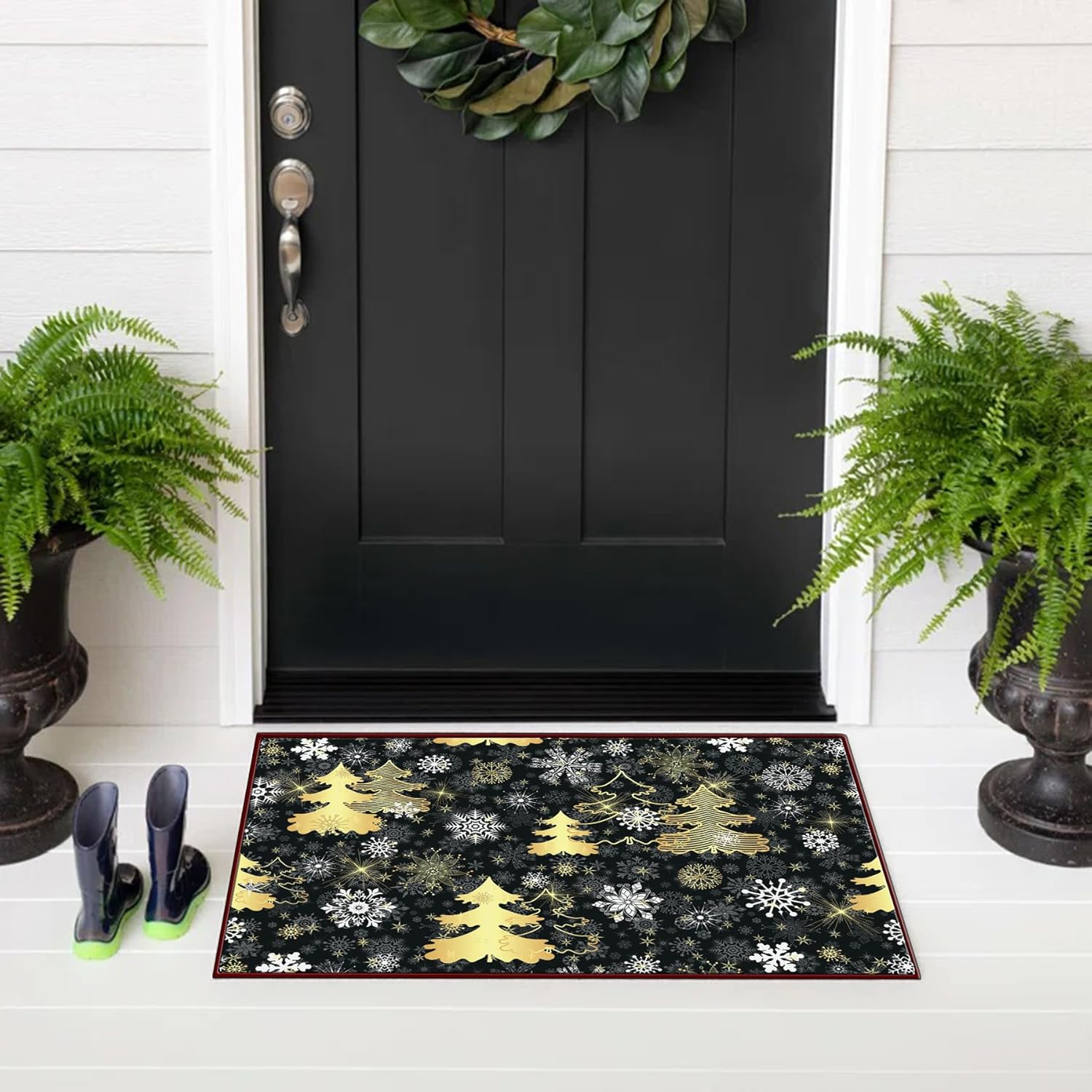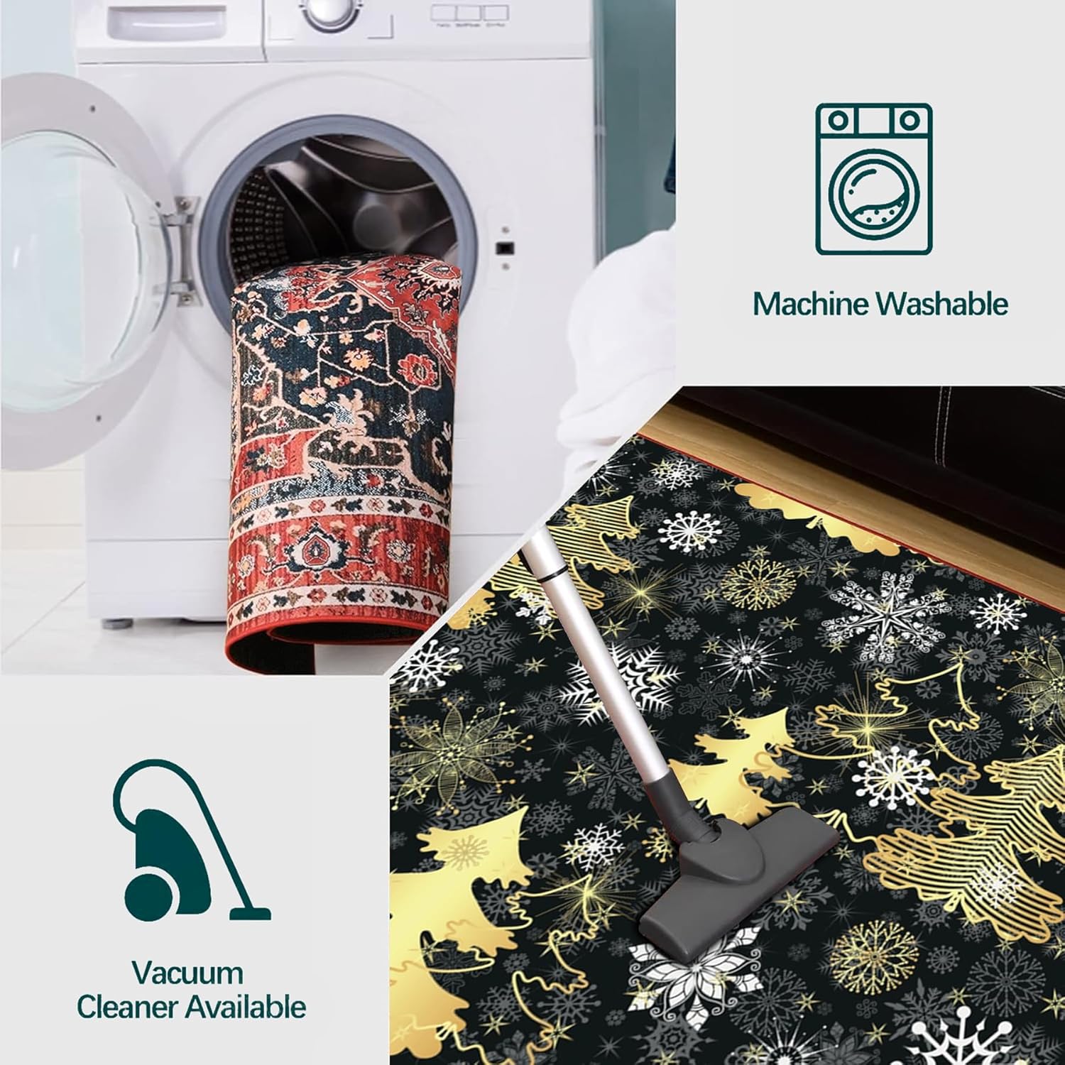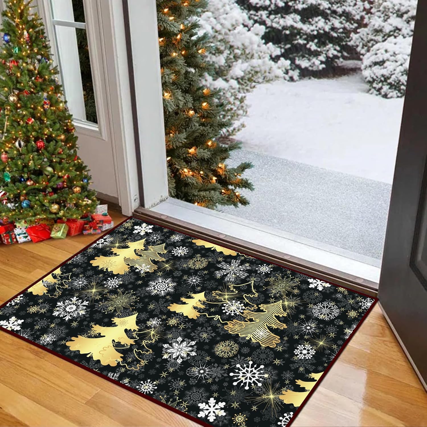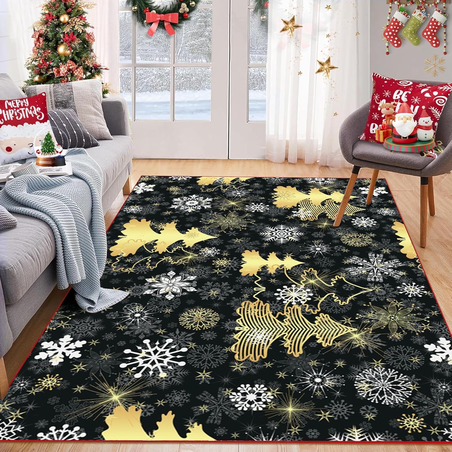 🎄 PERFECT DECOR – Our stylish Christmas area rug, is perfect for Christmas home decor, put it in front of your favorite sofa, bedside, or on the entryway floor as a welcoming mat. As a indoor door mat, living room rug, bedroom rug, fireplace rug, play mat, dining room rug, sitting room decor, hallway runner rugs, kitchen mats, and etc. Also great Christmas gift for your friends and families.