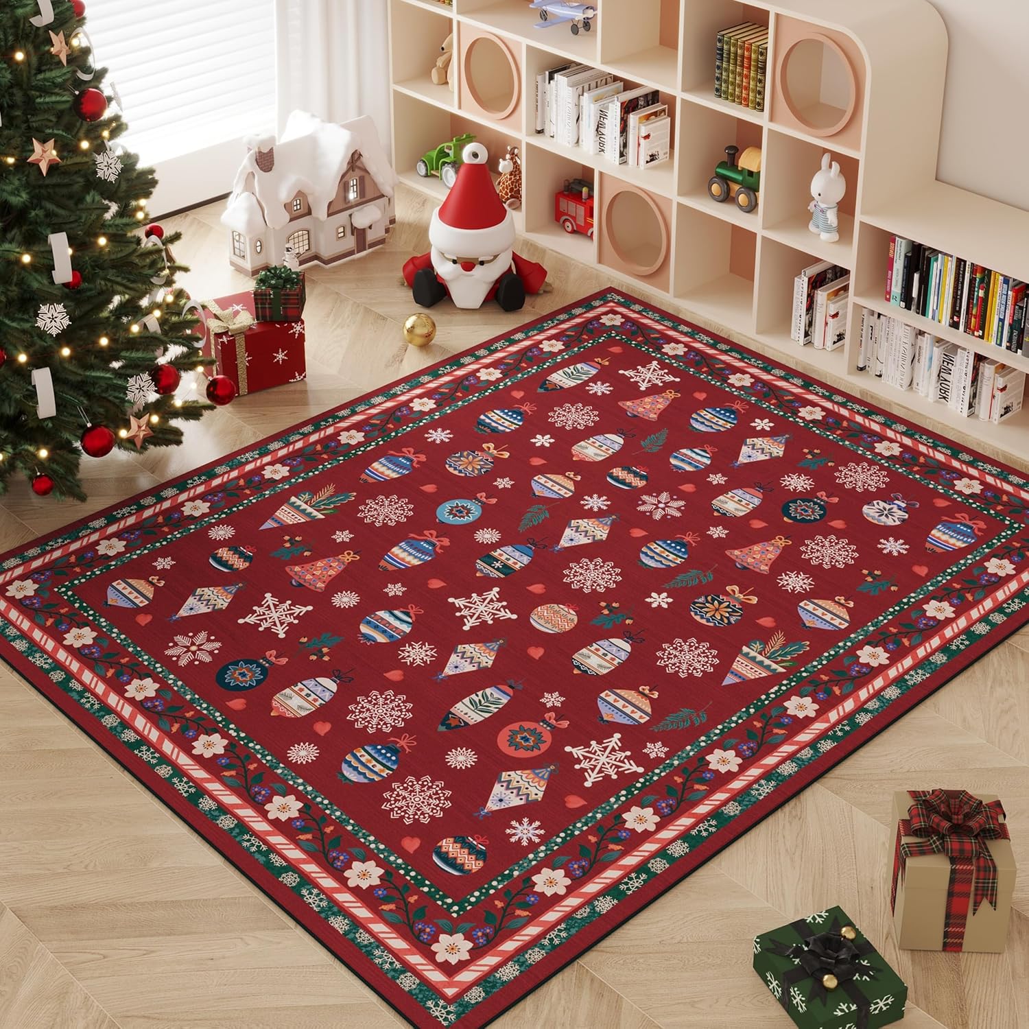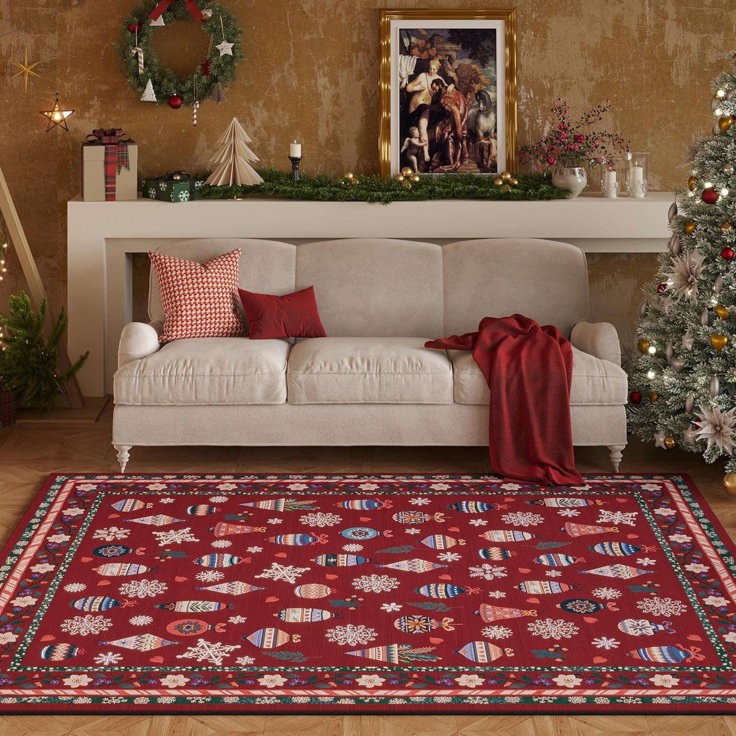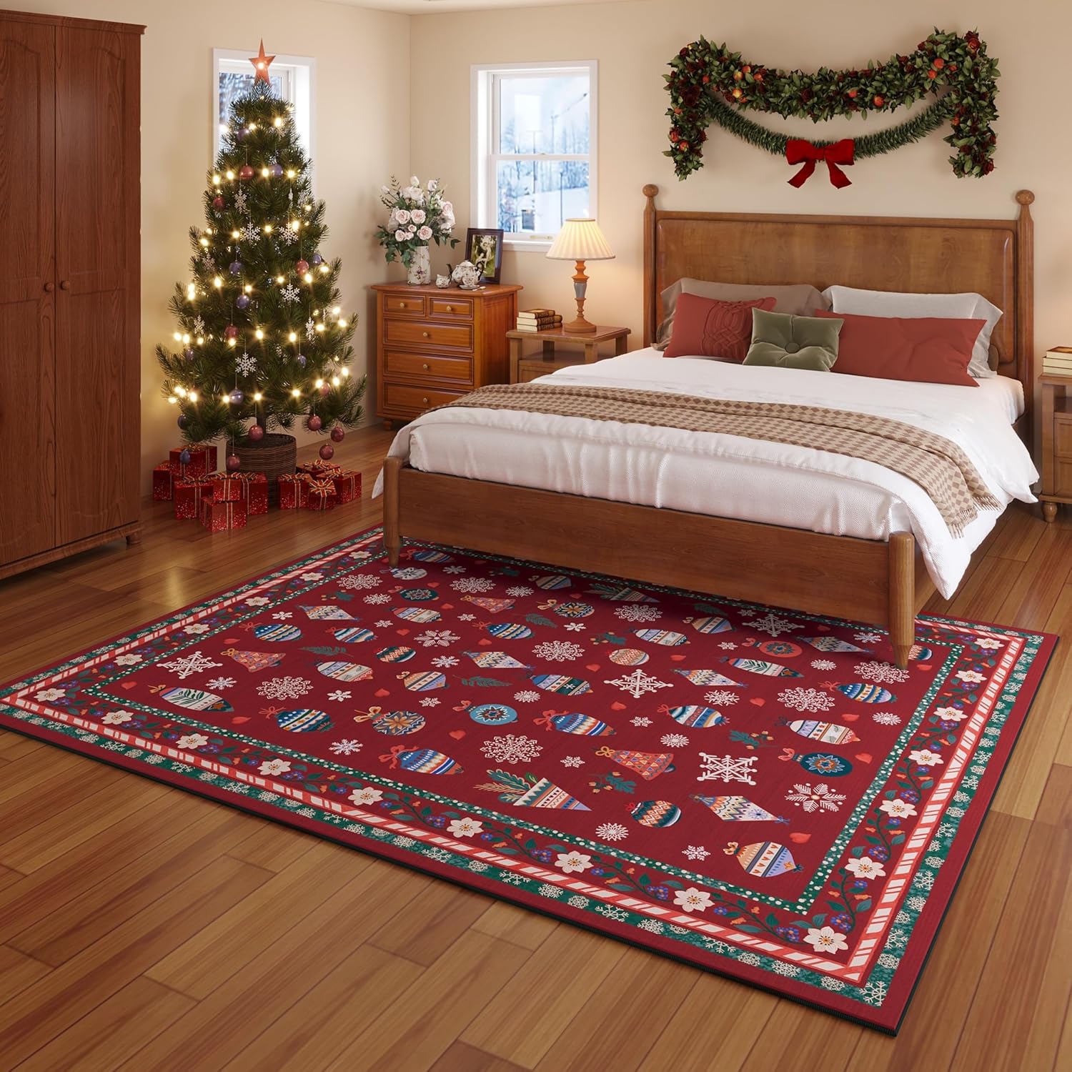 Diseño vibrante: esta alfombra de Navidad tejida a máquina, el diseño inspirado en Vibrant está impreso digitalmente y los detalles no se pueden replicar a mano. Los vibrantes patrones florales de alfombras adornan maravillosamente los espacios de tu hogar, incluyendo la sala de estar, dormitorio, comedor, entrada, sala de juegos de los niños, oficina en casa, cocina y mucho más.