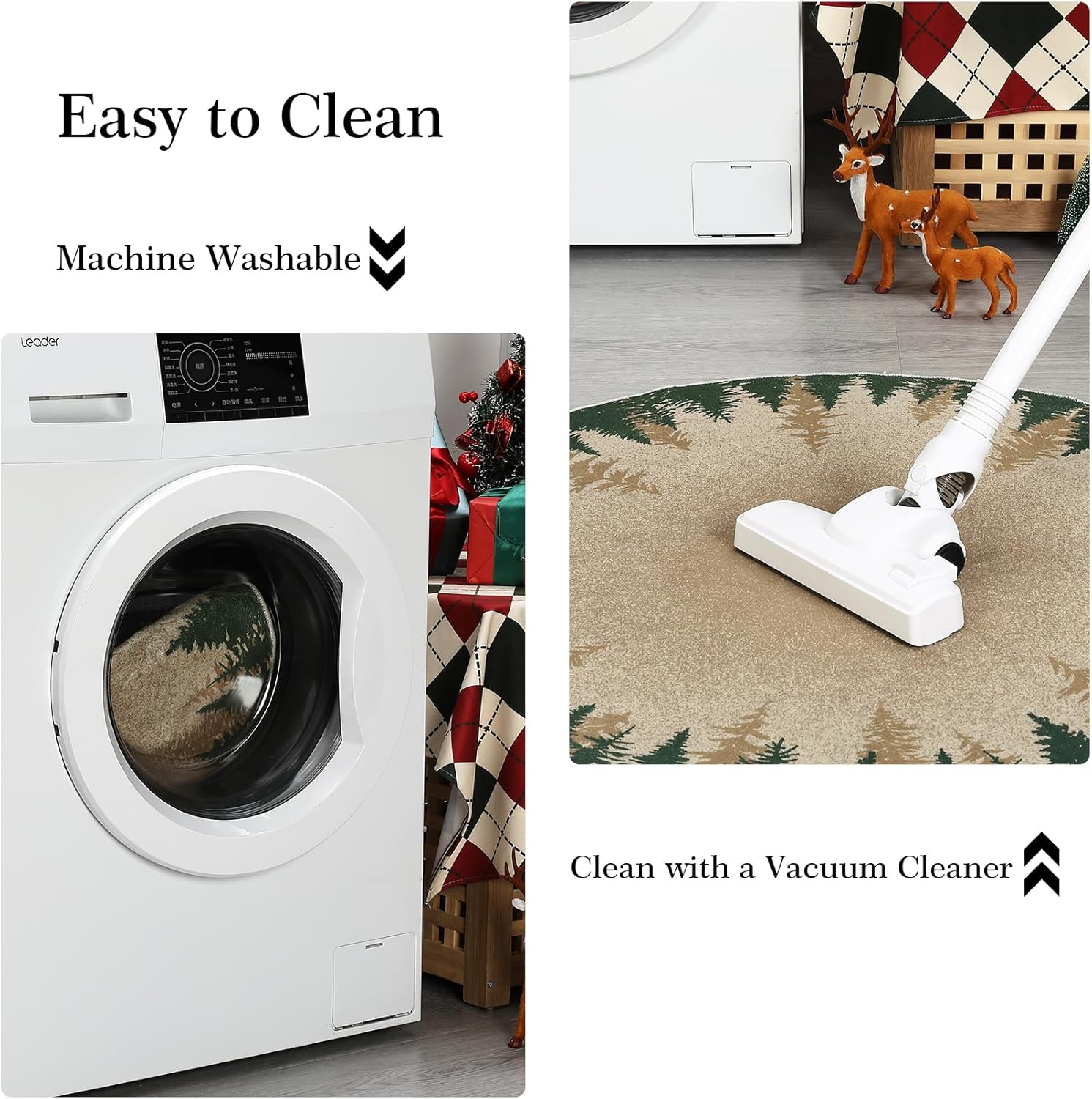 Práctico diseño lavable a máquina: esta alfombra es lavable a máquina, ofrece una fácil limpieza y mantenimiento para hogares ocupados de vacaciones. La función lavable a máquina garantiza una alfombra fresca e higiénica que se mantiene con su mejor aspecto durante las festividades navideñas.