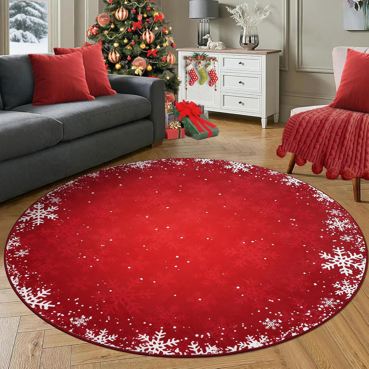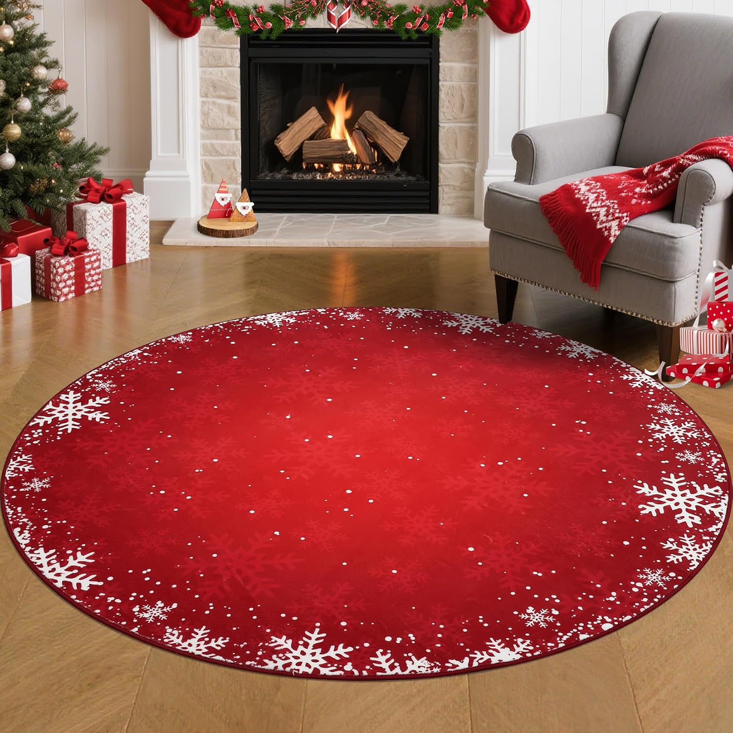 RUGSREAL Alfombra redonda de Navidad de 3 pies lavable para entrada, alfombra pequeña antideslizante para interiores, alfombra circular decorativa de Navidad, alfombra circular decorativa de estilo