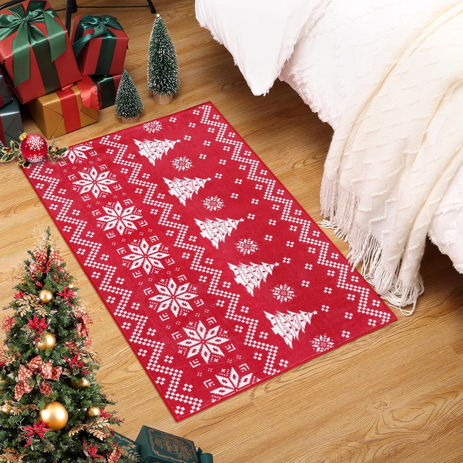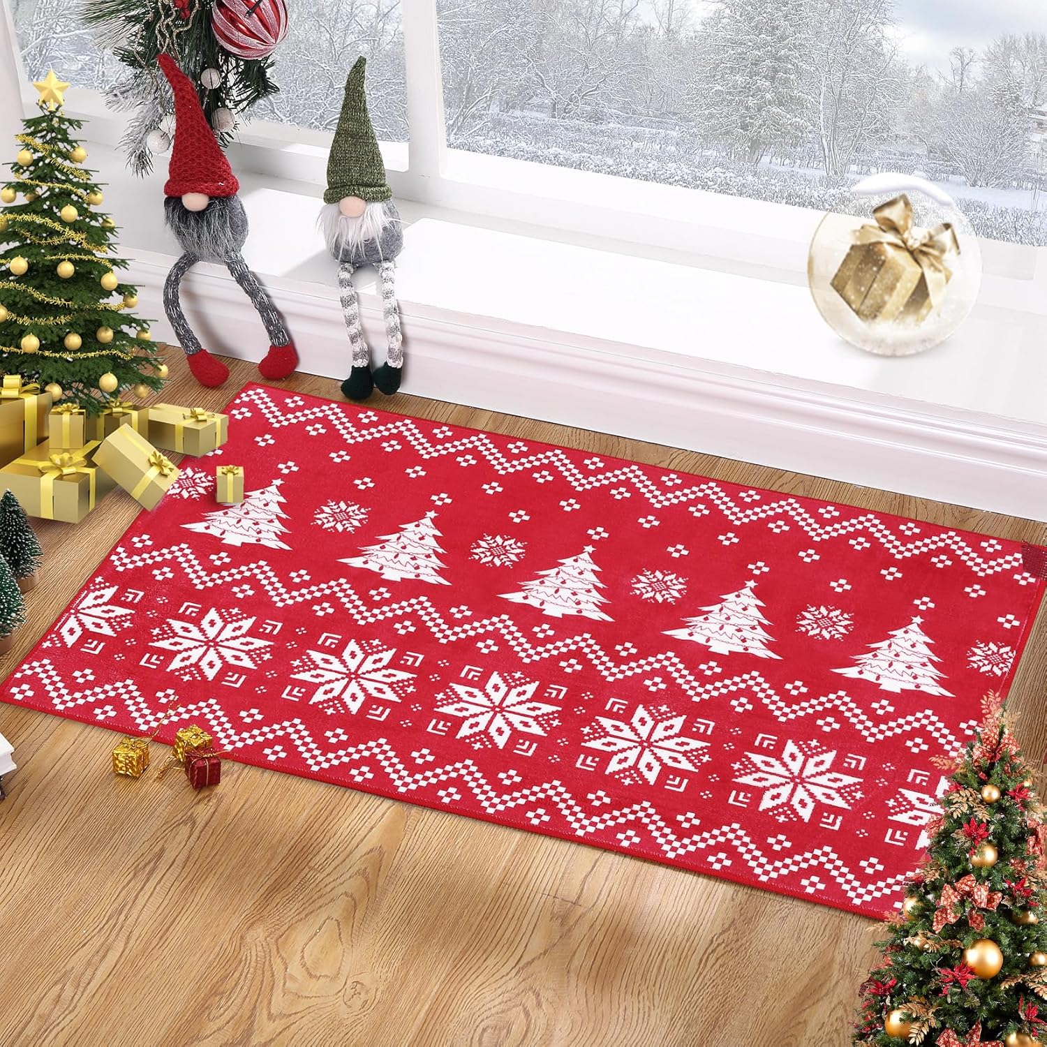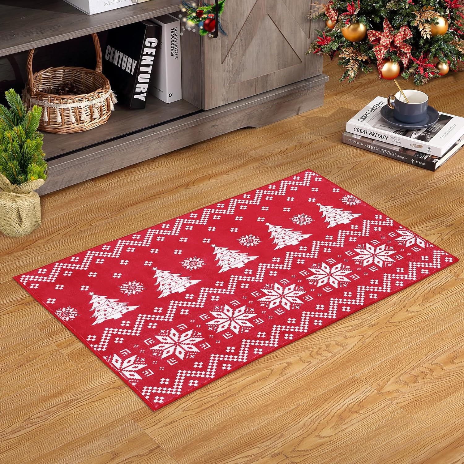 RUGSREAL Tapete de entrada de Navidad de 2 x 3 pulgadas, tapete pequeño para puerta delantera, tapete decorativo de Navidad, lavable a máquina, tapete antideslizante para dormitorio, sala de estar,