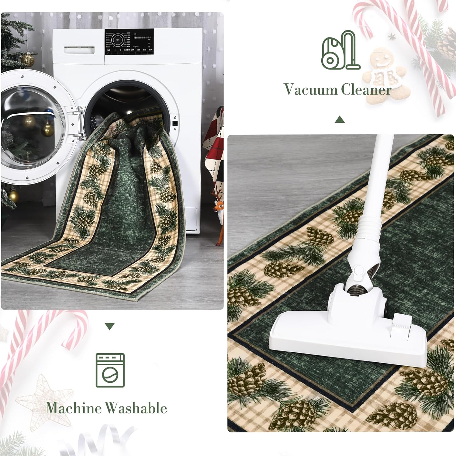 Estilo navideño: la alfombra de Navidad muestra patrones clásicos de cuadros y piñas de pino, mejorando el ambiente festivo e infundiendo la decoración de tu hogar con un ambiente alegre. Fabricada con un cuidado meticuloso, esta alfombra está diseñada para una calidad duradera. Este tapete es una decoración navideña indispensable en tu hogar. ¡Felices fiestas!