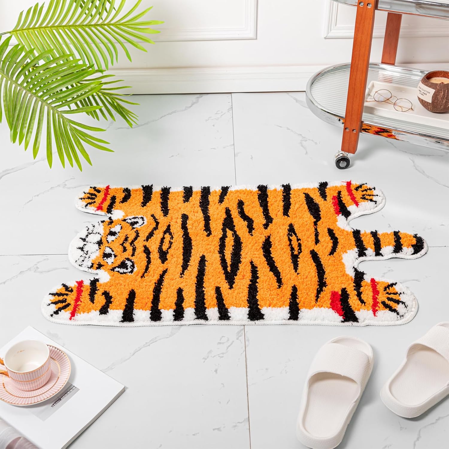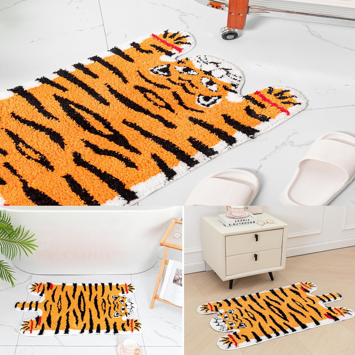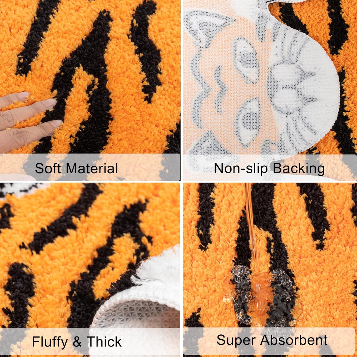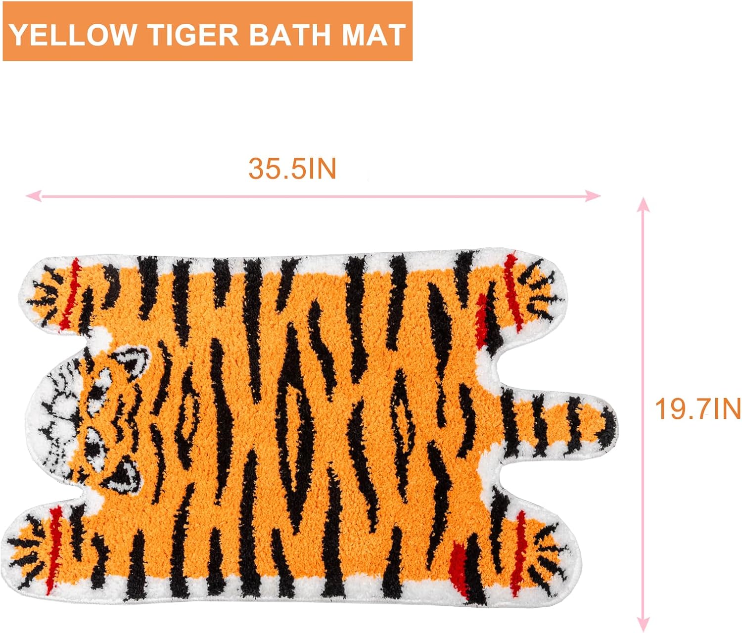 Bonito diseño personalizado: el tamaño de la alfombra con forma de tigre es de 19.7 x 35.5 (aprox. 90.2 cm), el patrón de tigre amarillo de la alfombra de baño de microfibra es súper lindo y brillante, lo que es suficiente para las alfombras de tus hijos, baño o cualquier lugar que lo necesite.