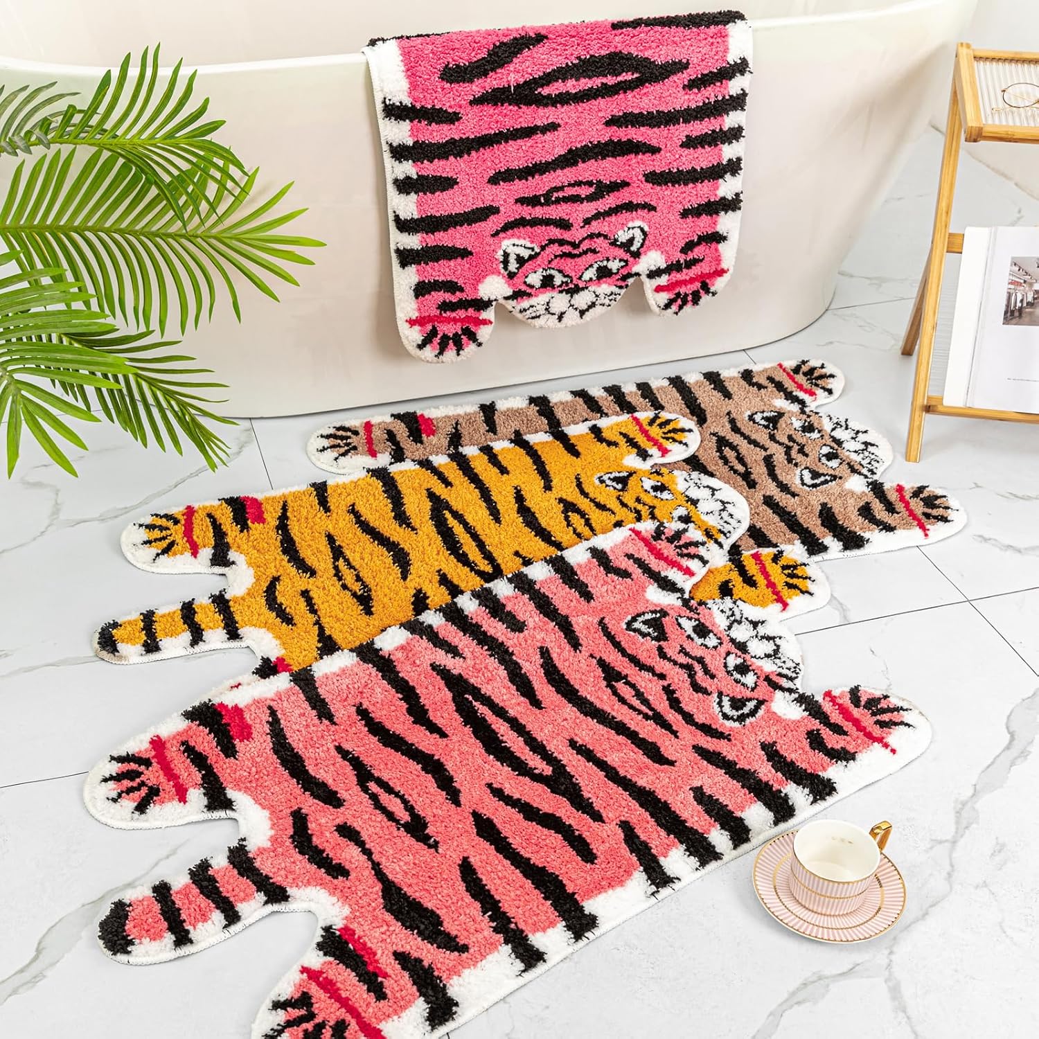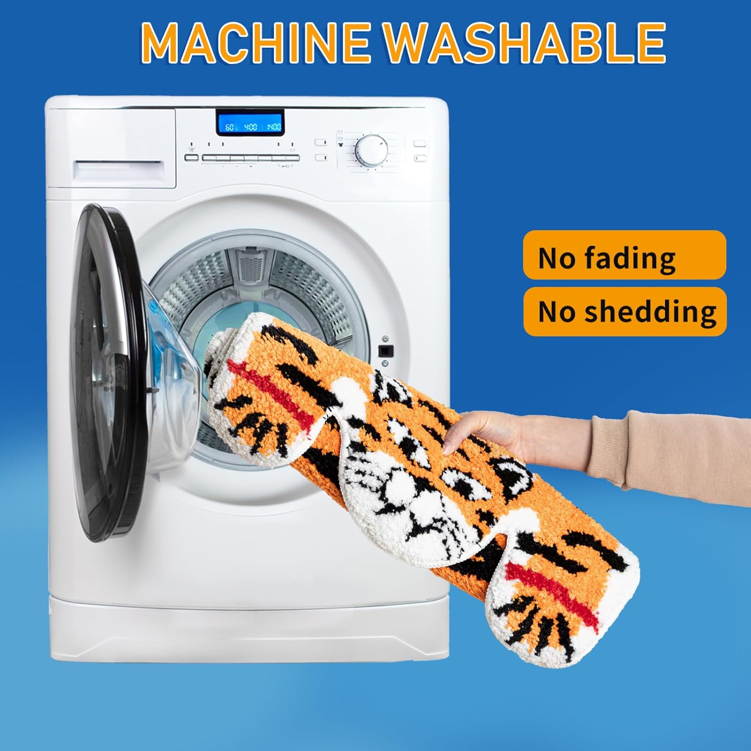 Parte trasera antideslizante: esta alfombra de baño de tigre con forma de animal está hecha de material TPR duradero que tiene un peso un poco pesado, lo que puede evitar que se mueva y se deslice, y los cojines firmemente fijados evitan accidentes.