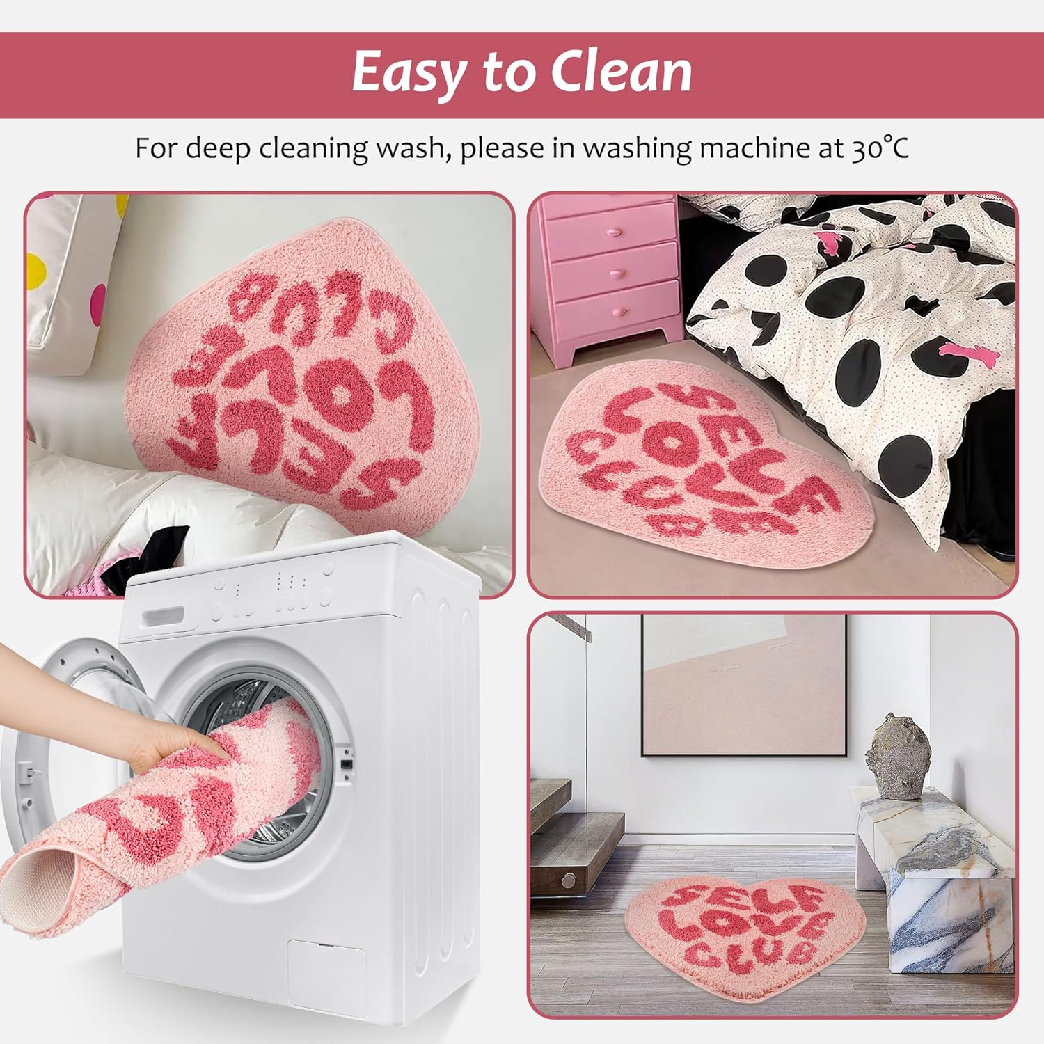 2. Diseño único: la alfombra Slef Love es suave, antideslizante y adecuada para varios espacios como dormitorios, salas de estar, exteriores y baños, añadiendo un toque destacado a tu habitación.