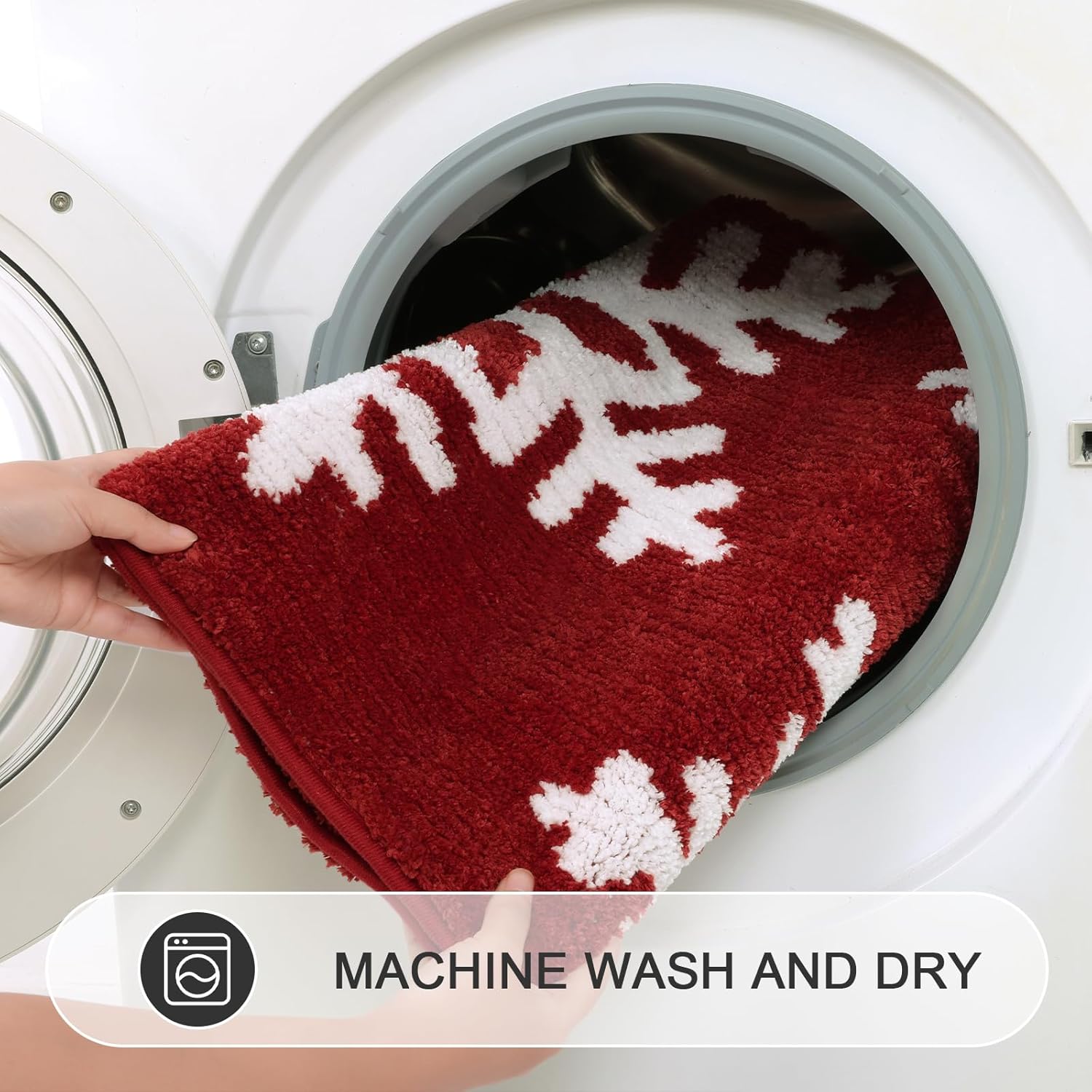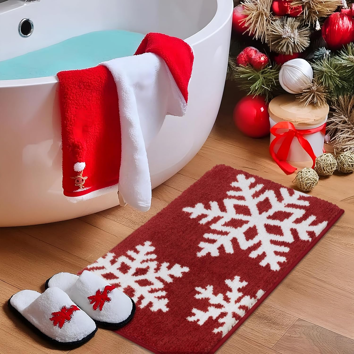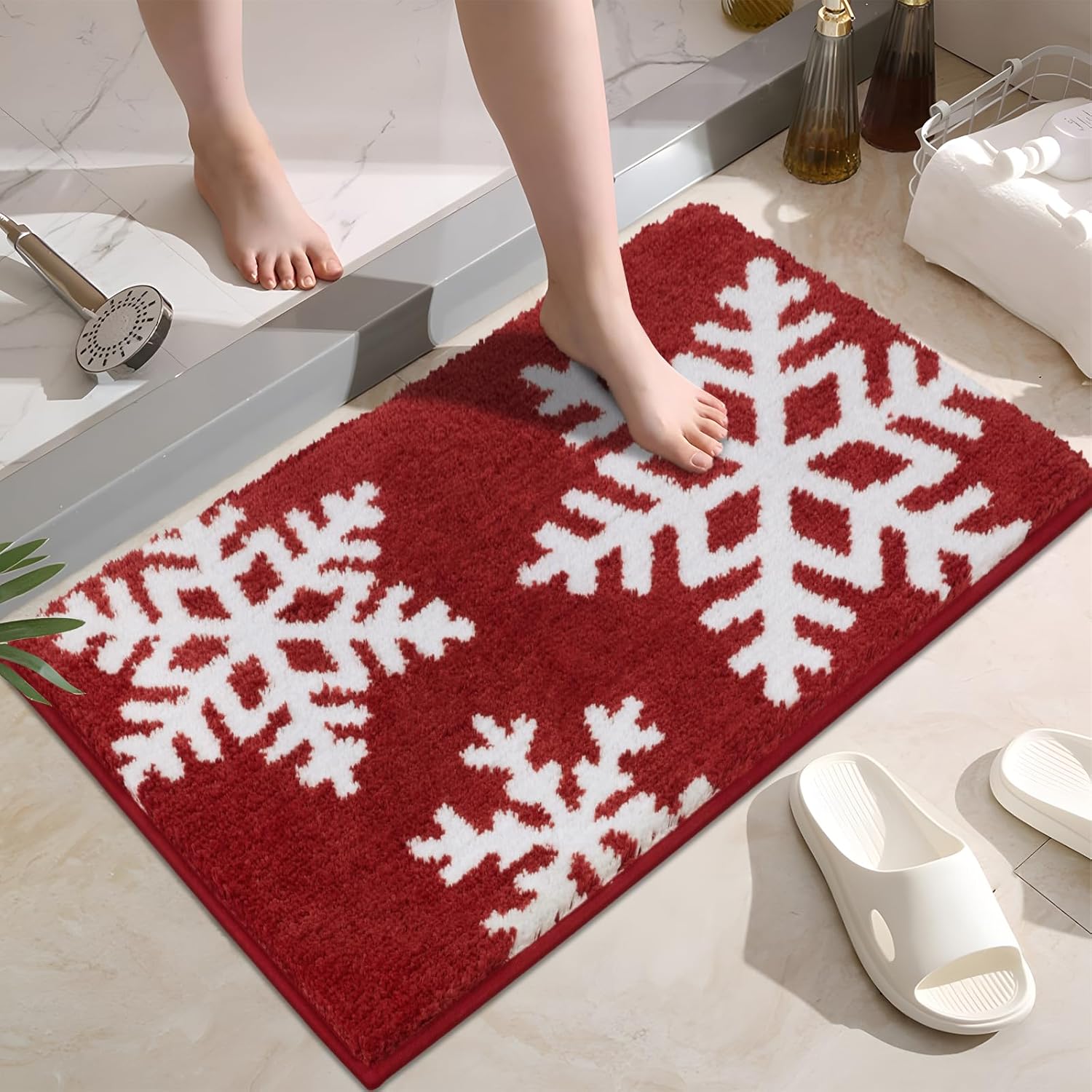 SHACOS Alfombras de baño de copo de nieve de Navidad de 20 x 32 pulgadas, extra suaves, absorbentes, tapetes de baño de microfibra para suelo de baño, alfombras de baño antideslizantes y peludas