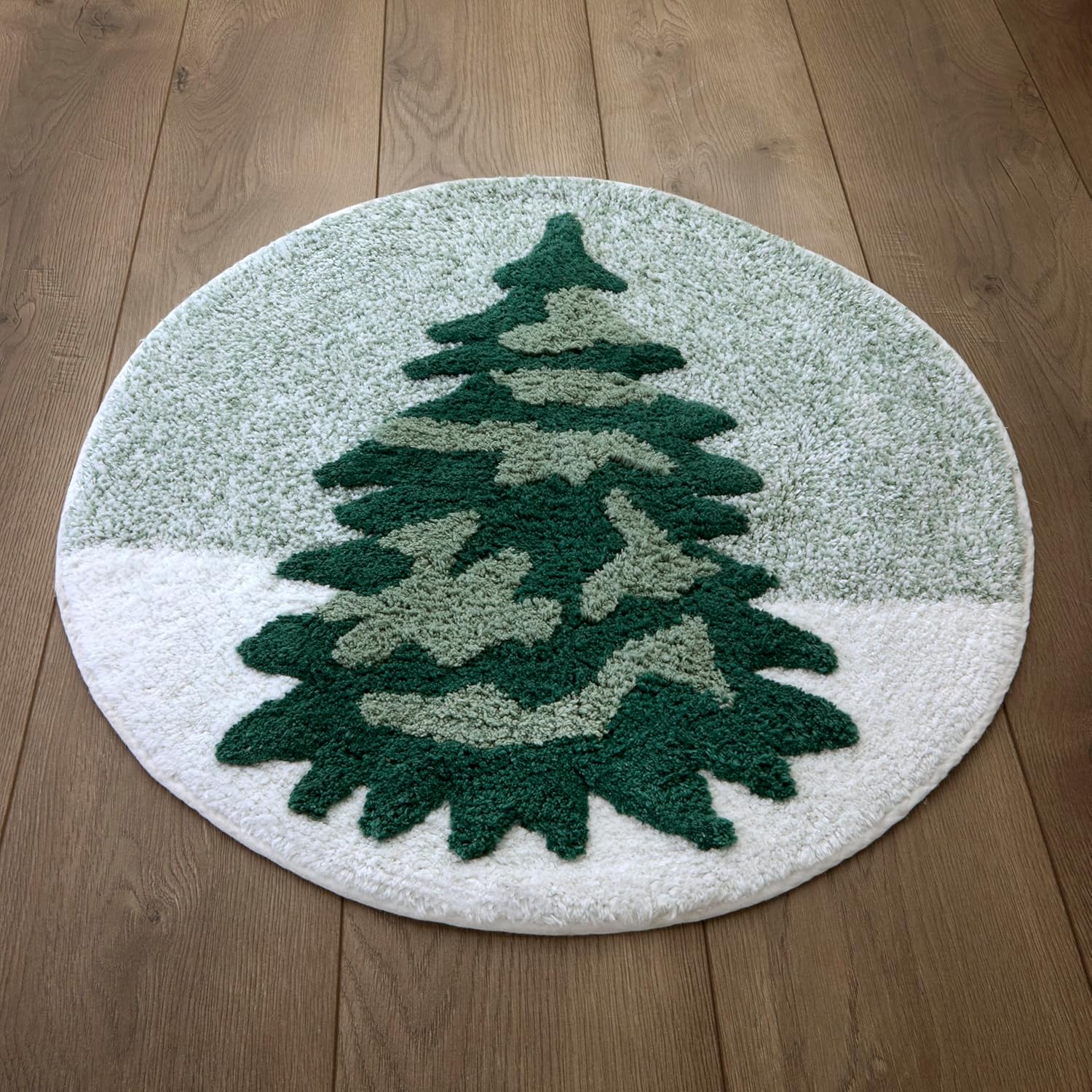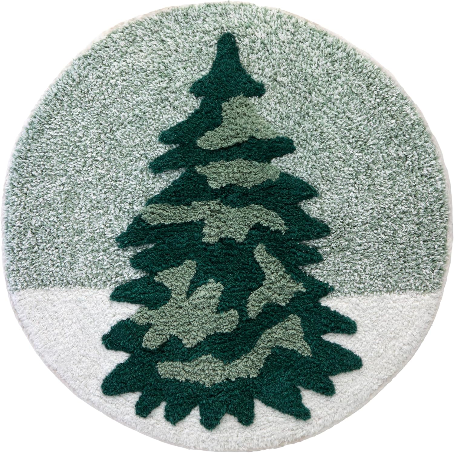 Alfombra circular y copetuda con un diseño de pino de invierno