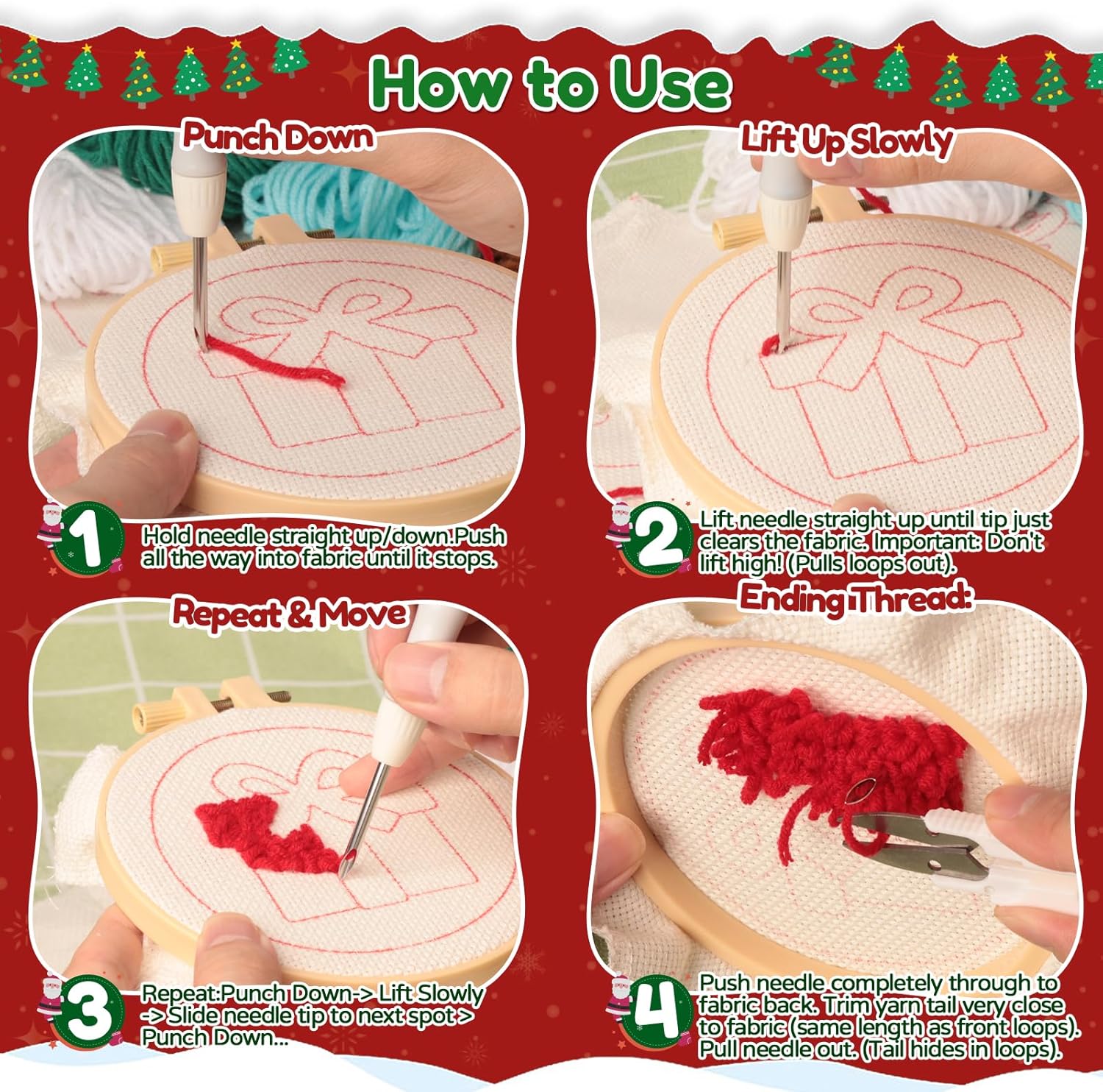 Kit de manualidades todo incluido: el kit contiene 6 respaldos de fieltro adhesivos, abundantes yardas de agujas de perforación, herramienta profesional de aguja de perforación, aro de bordado y guía ilustrada paso a paso, todo para la elaboración inmediata de agujas de punzón