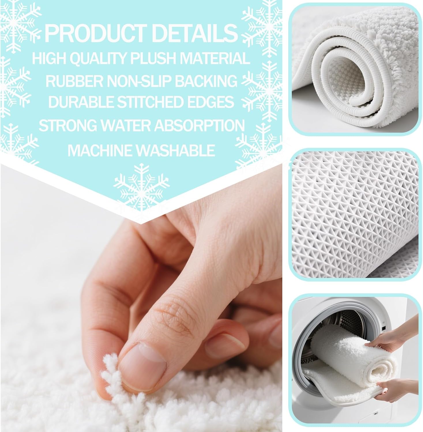 Tapete de baño con diseño de copos de nieve azul y blanco, tapete de baño de felpa suave, antideslizante y lavable a máquina, absorbente y de secado rápido, decoración del hogar para ducha