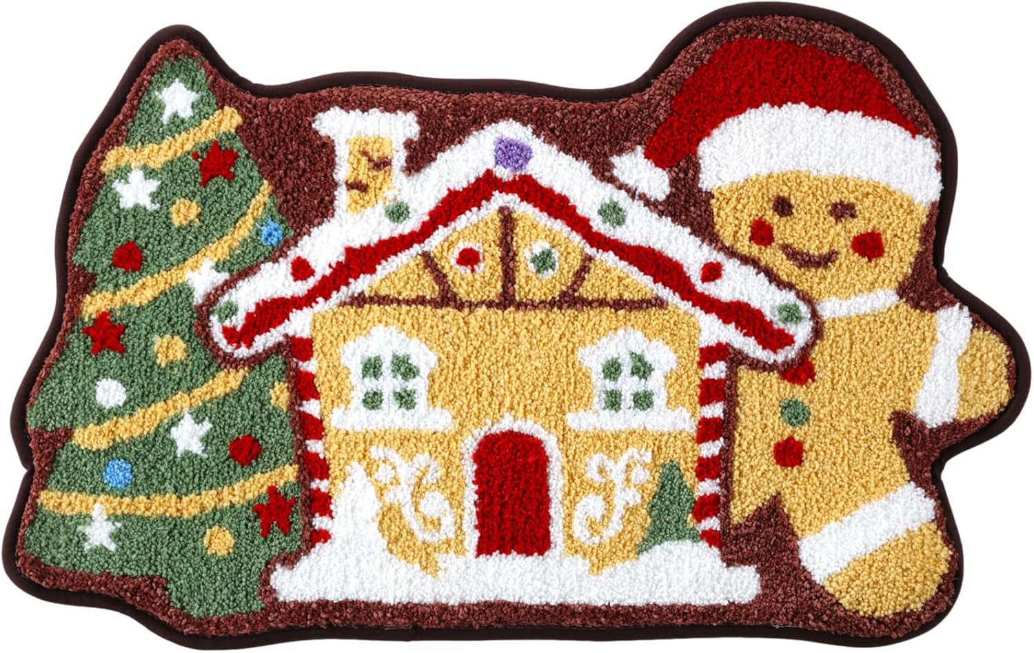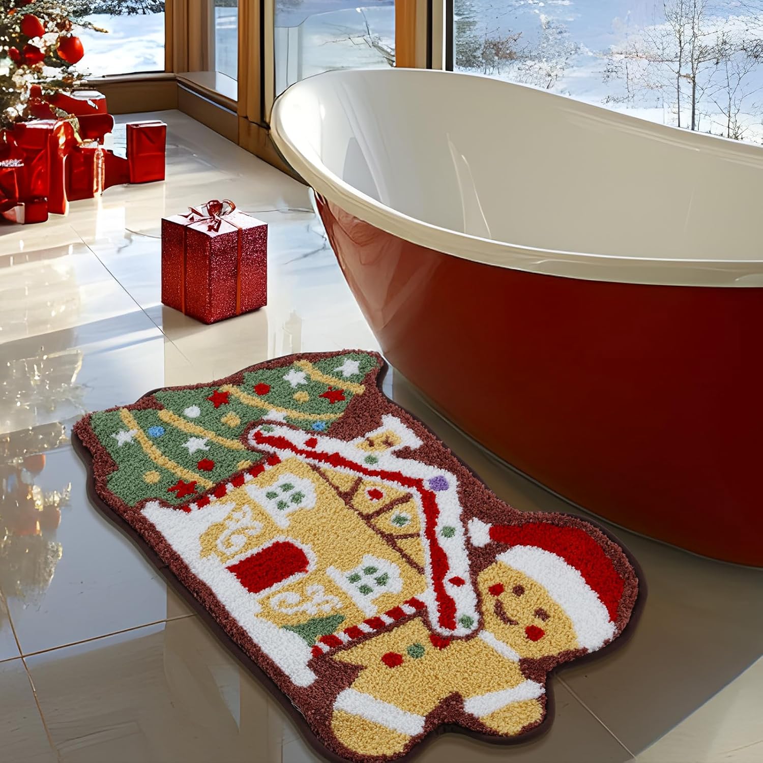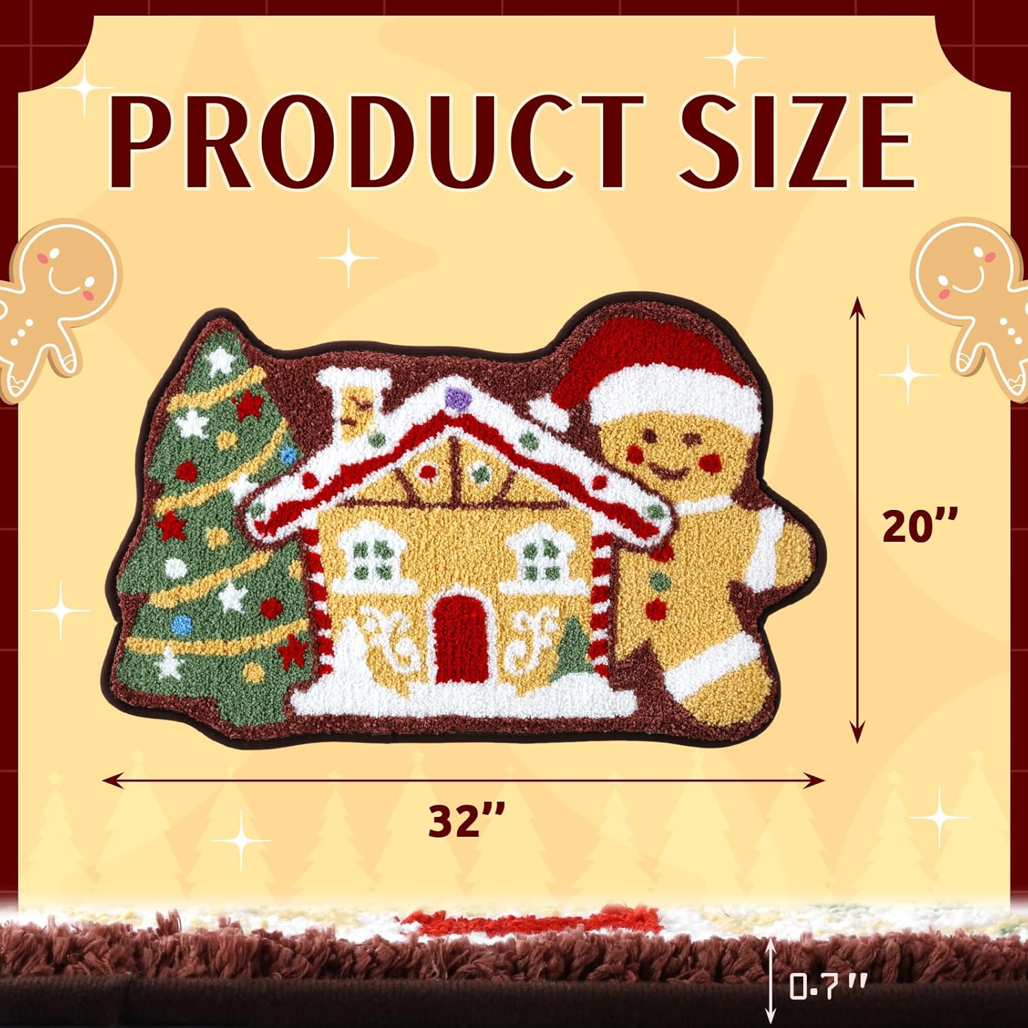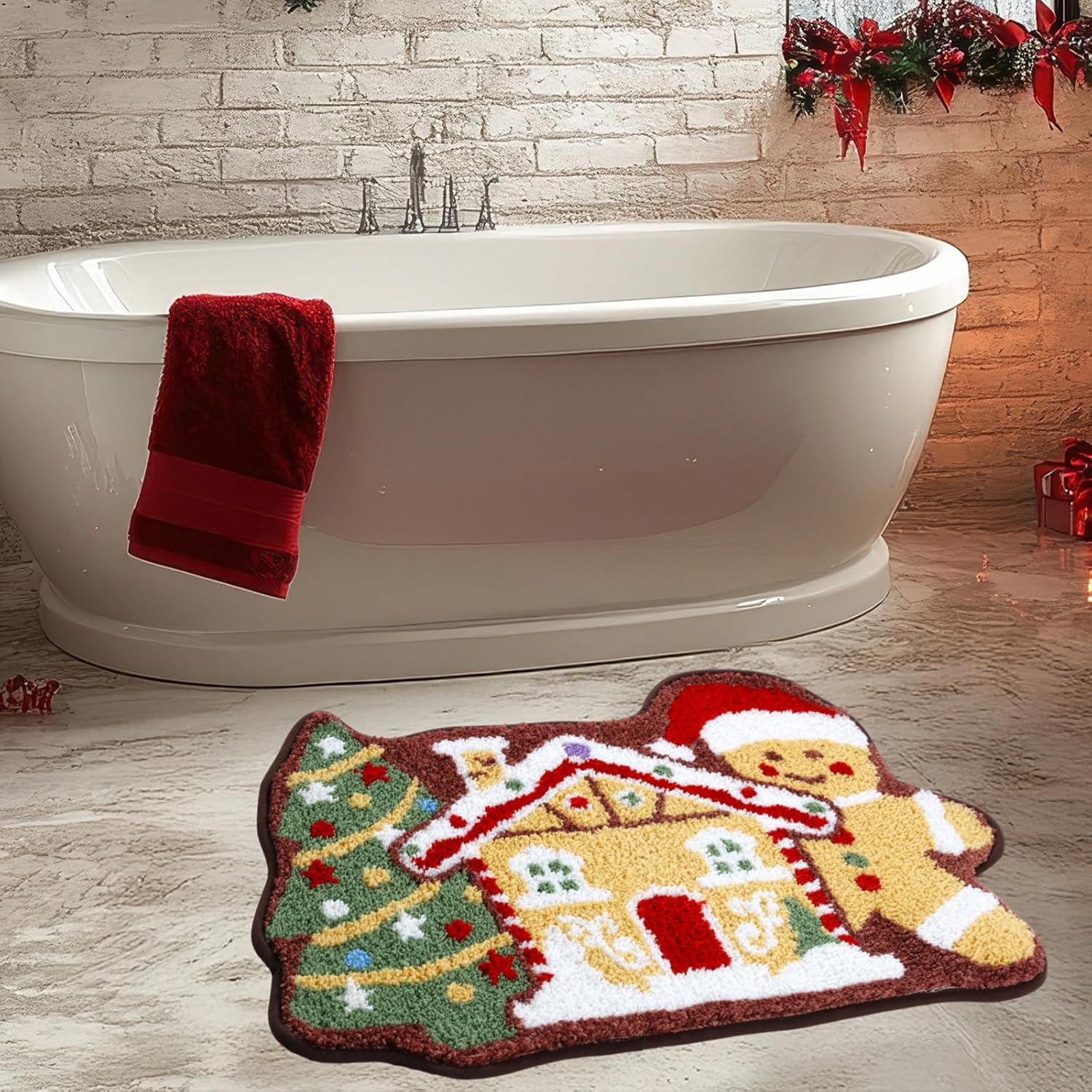 Perfecto para la decoración del hogar: la alfombra de baño decorativa de pan de jengibre cuenta con un diseño encantador y festivo de invierno, aportando un espíritu festivo acogedor a su hogar y deleitando a sus invitados.