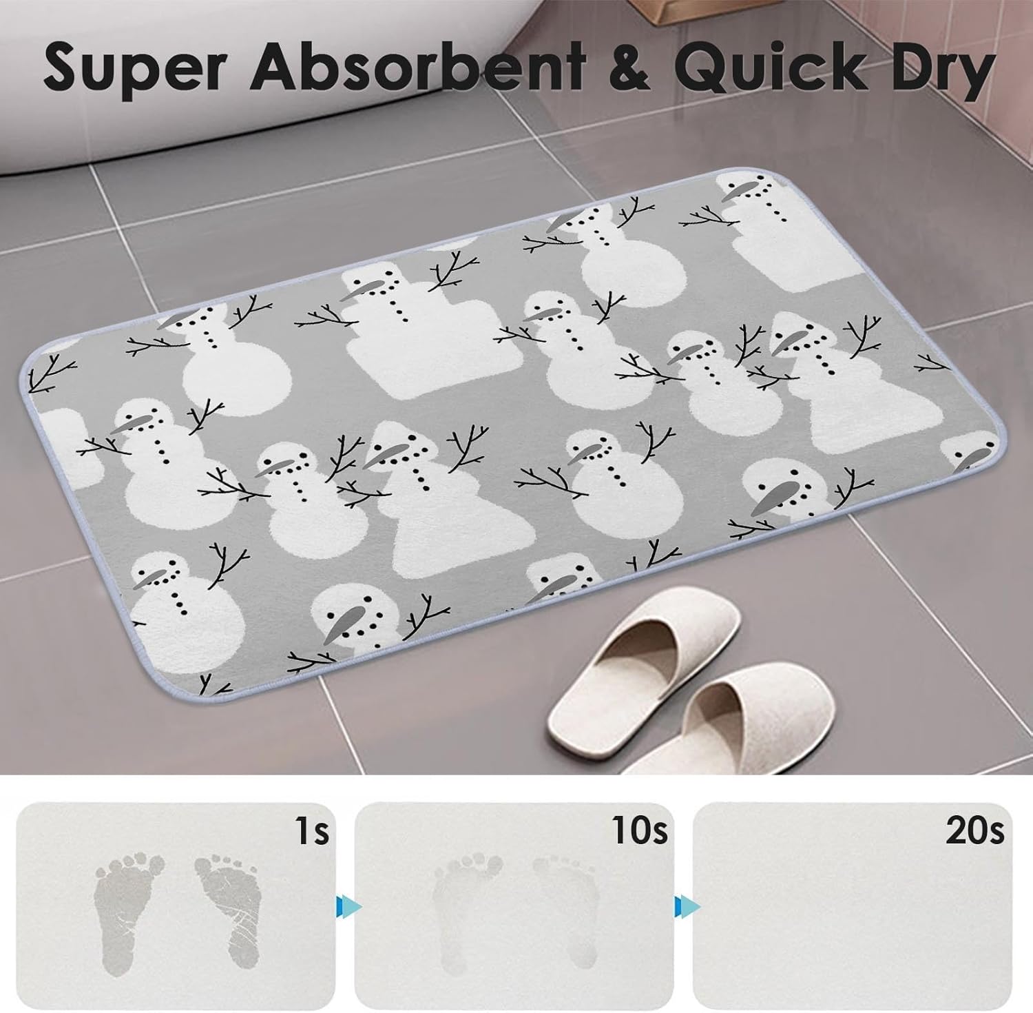 Absorción rápida y secado rápido: nuestra alfombrilla de baño de muñeco de nieve de invierno cuenta con capacidades superiores de absorción de agua. Al salir de la bañera o ducha, la alfombrilla absorbe rápidamente el agua de los dedos de los pies, la marca de agua pronto desaparecerá. Cualquier humedad en el tapete se seca rápidamente, asegurando un piso de baño limpio y seguro.