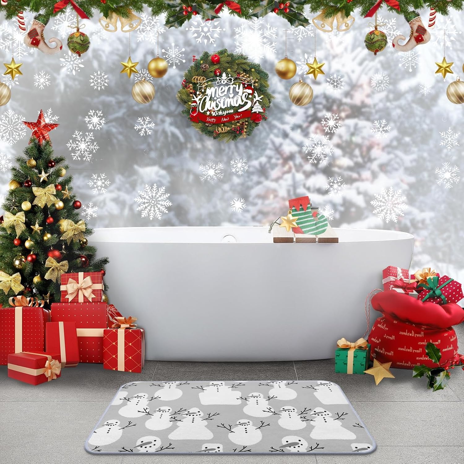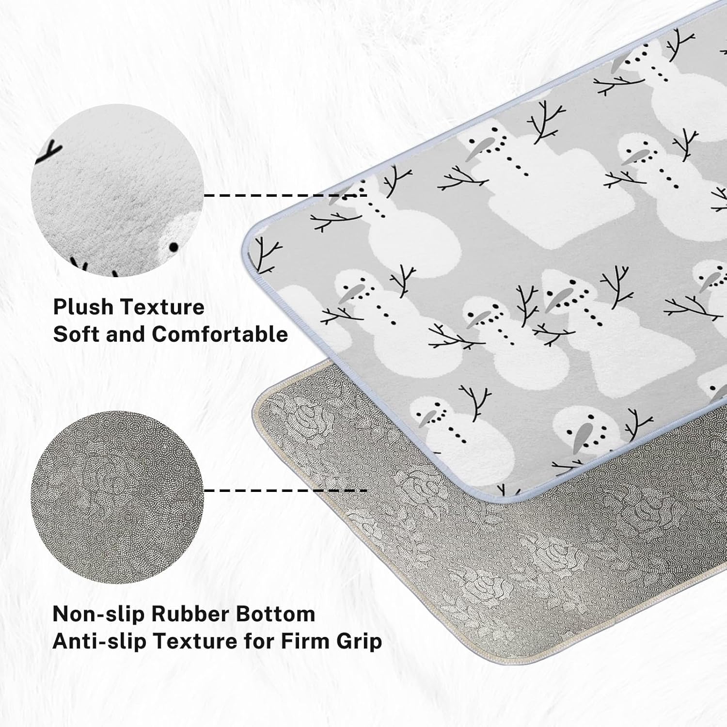 Uso versátil: diseñado para uso en interiores, nuestra alfombrilla de baño de muñeco de nieve de invierno viene con un respaldo de goma antideslizante, lo que los hace adecuados para una variedad de áreas de tu hogar. Estas alfombrillas son ideales para lugares como la cocina, el cuarto de lavado, el dormitorio y el baño.