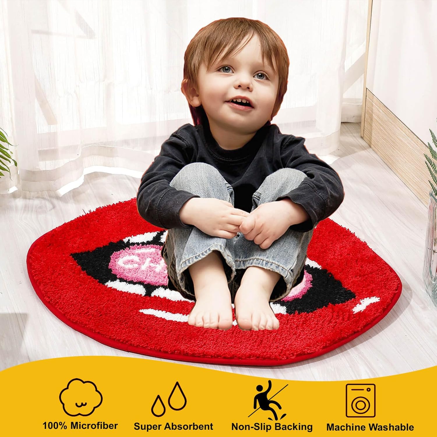 Ultra absorbente: nuestra bonita alfombra de baño de labios rojos está hecha de 100% microfibra de alta calidad, que es súper suave y absorbe el agua rápidamente. Las microfibras densas y gruesas mantienen el suelo de tu baño limpio y seco cuando sales de la ducha, proporcionando una sensación cómoda y cálida.