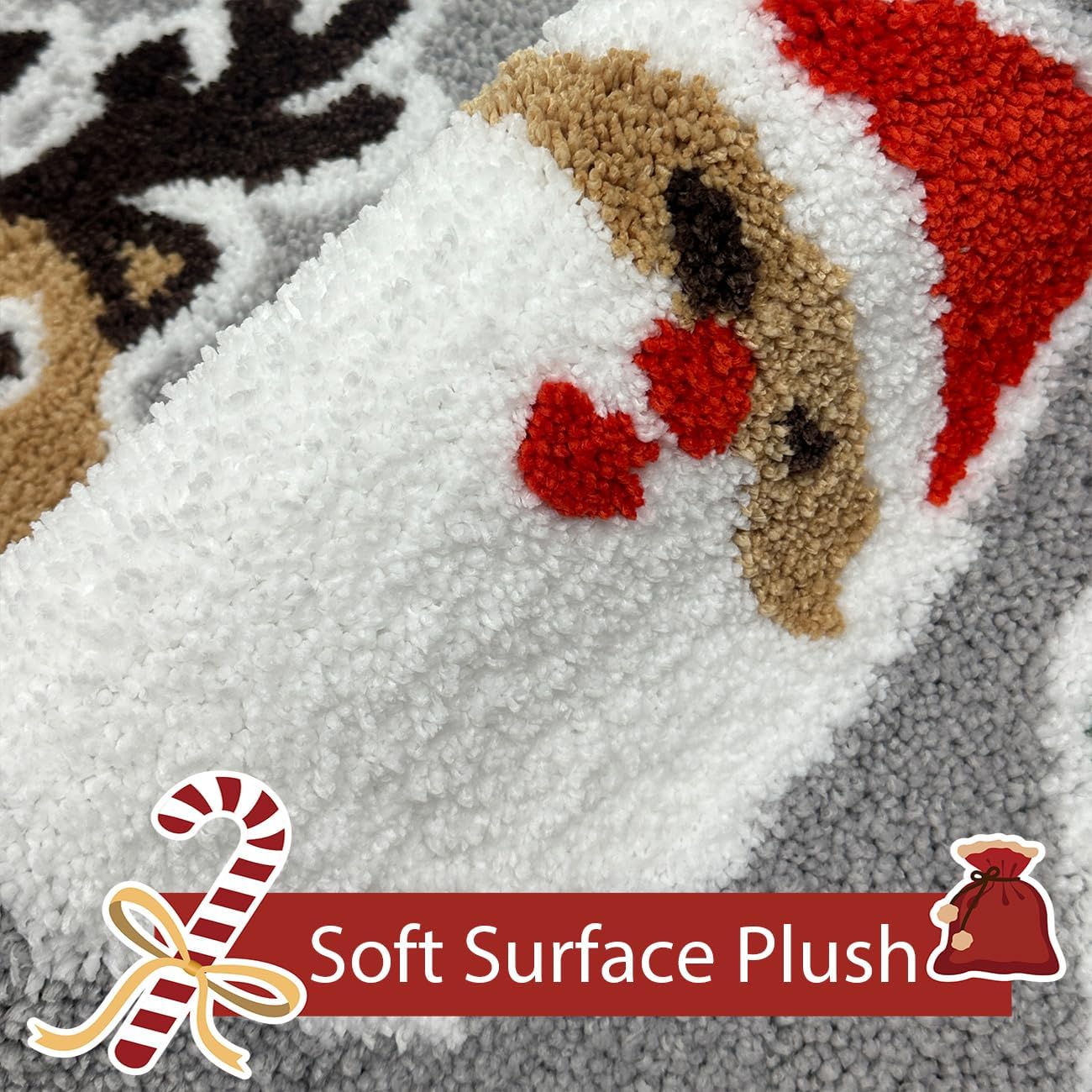 [Felpa y comodidad acogedora] ¡Entra en suavidad a nivel de Santa! Fabricado con flocado ultra afelpado, esta alfombra se siente como caminar sobre nieve fresca. La superficie gruesa y esponjosa mima tus pies cuando sales de la ducha o te despiertas en las frías mañanas de invierno.