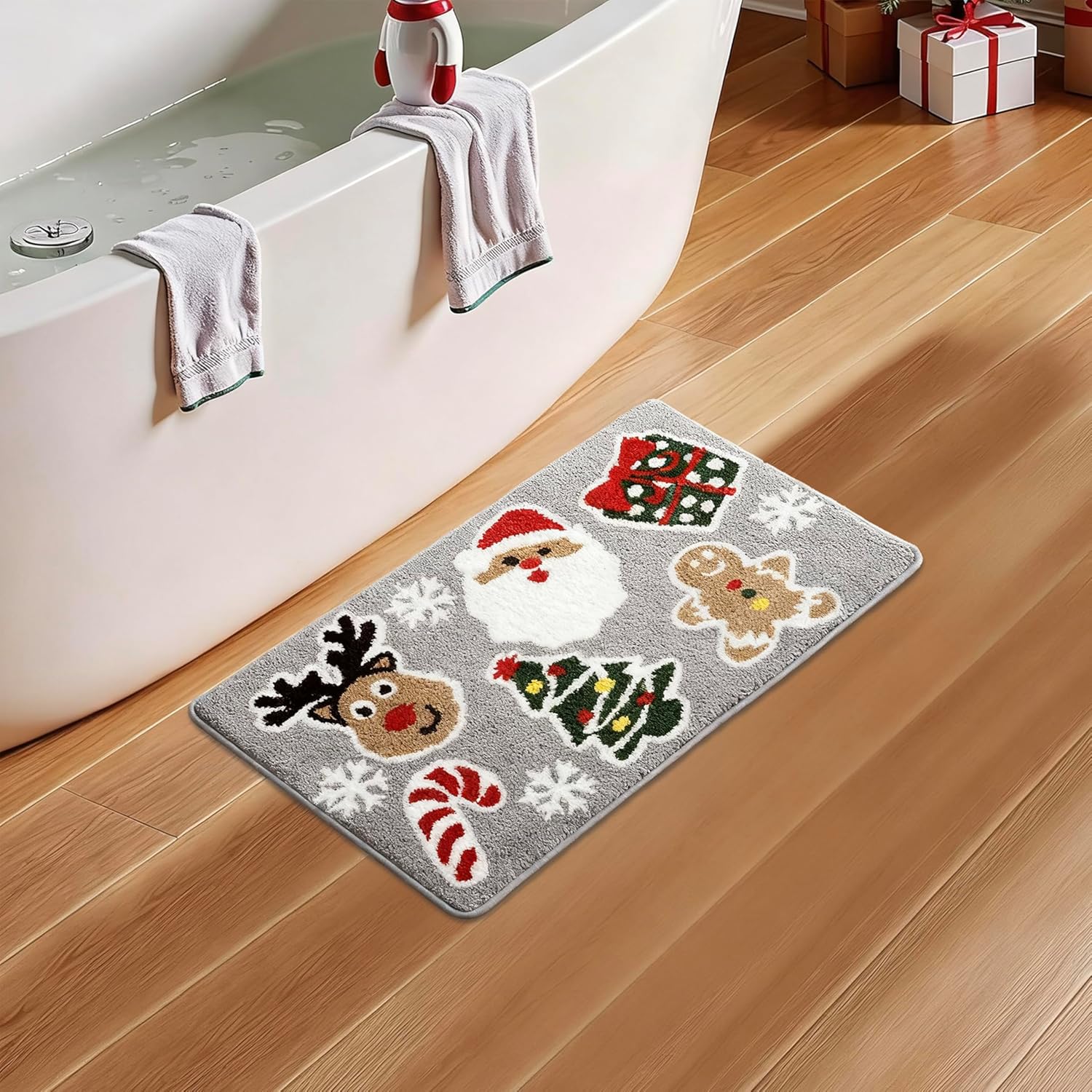 [Animación festiva] Decora tus pisos con espíritu navideño. Esta adorable alfombra de baño con temática de Papá Noel aporta magia navideña instantánea a baños, dormitorios o salas de estar. El diseño alegre difunde alegría festiva dondequiera que lo coloques