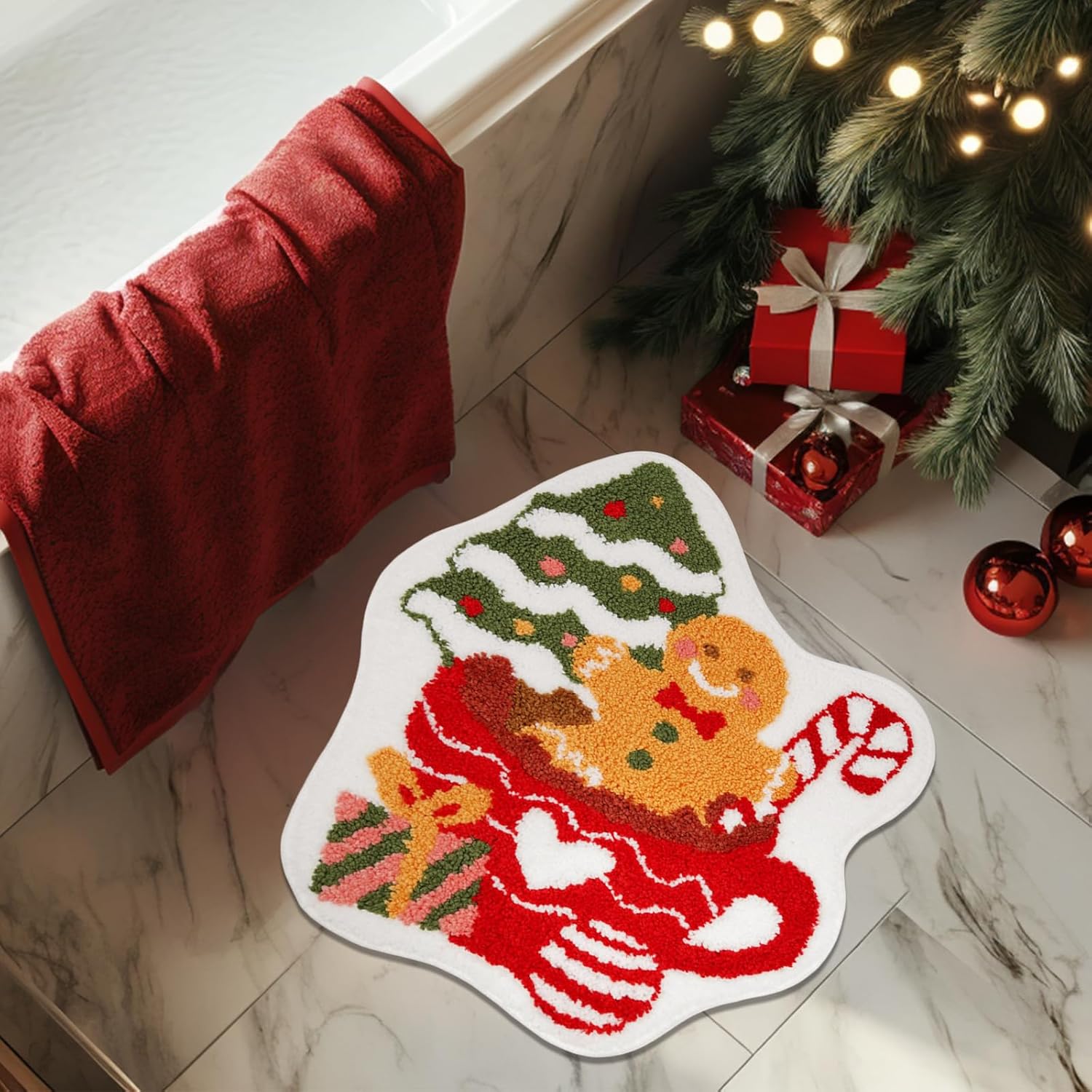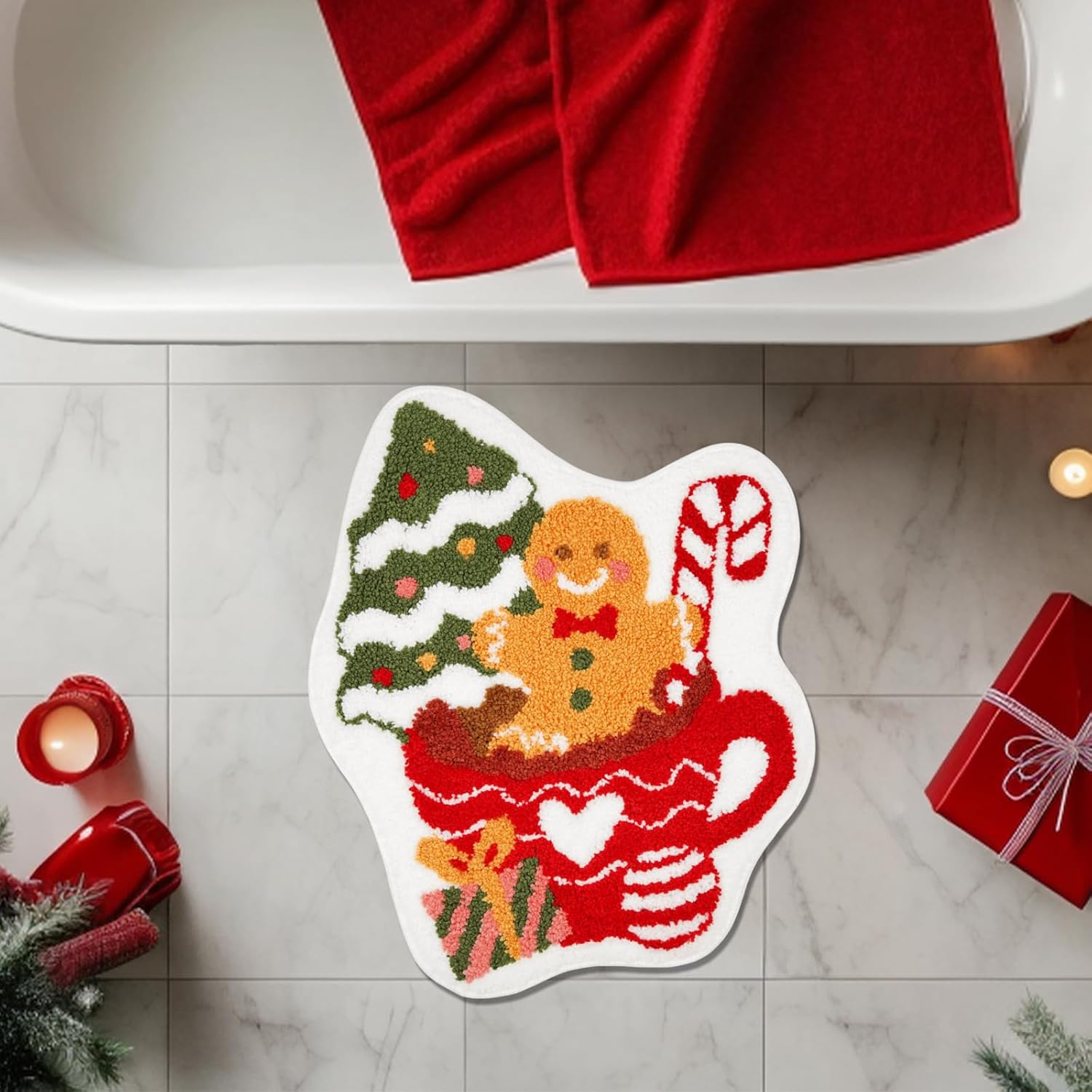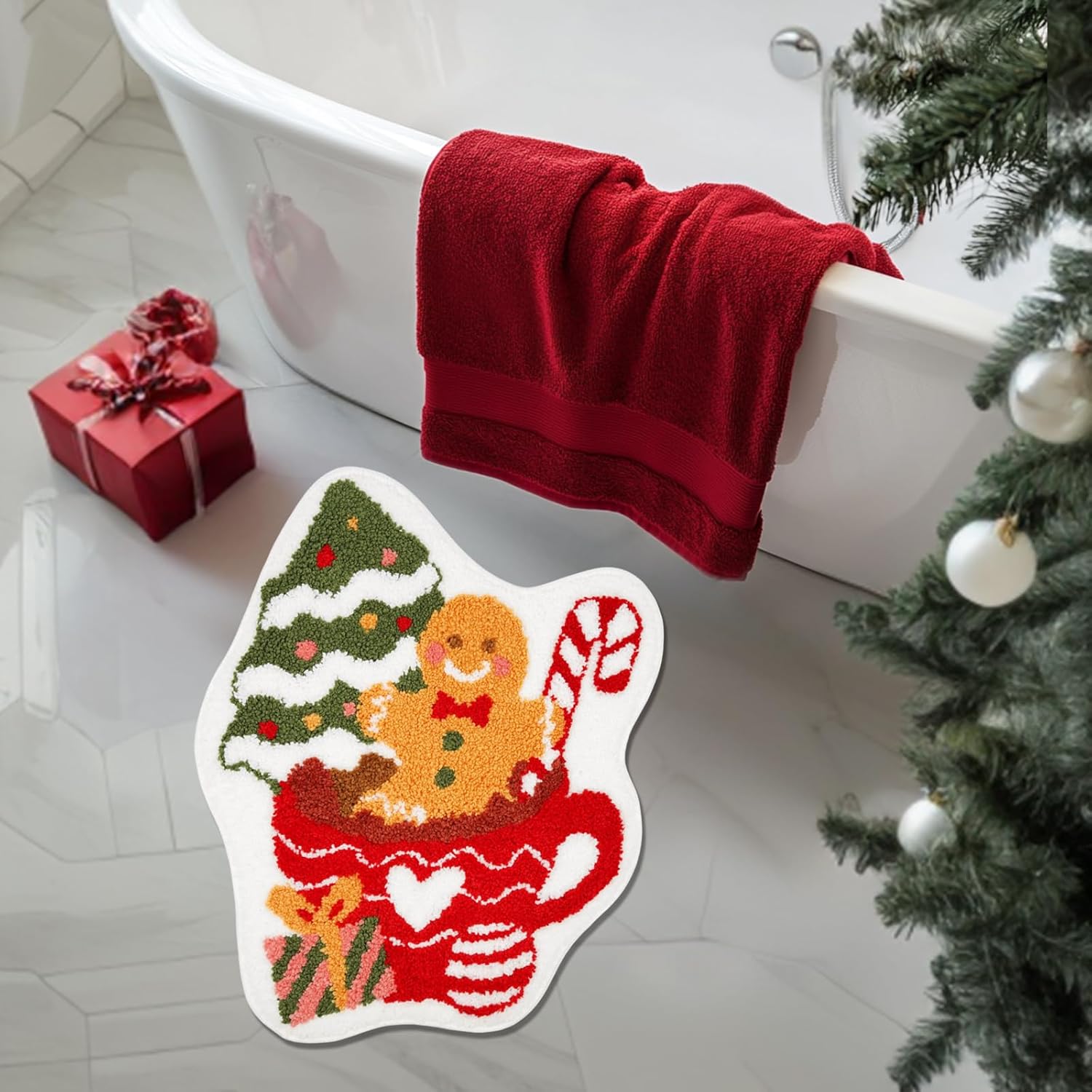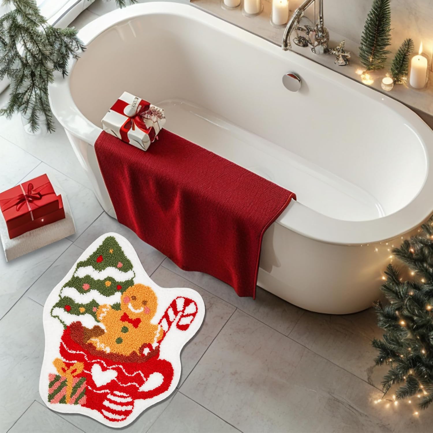 Diseño único: el tapete de baño de Navidad adopta el tema de Navidad, que resalta el ambiente festivo y es adecuado para su uso como decoración de Navidad o regalo.
