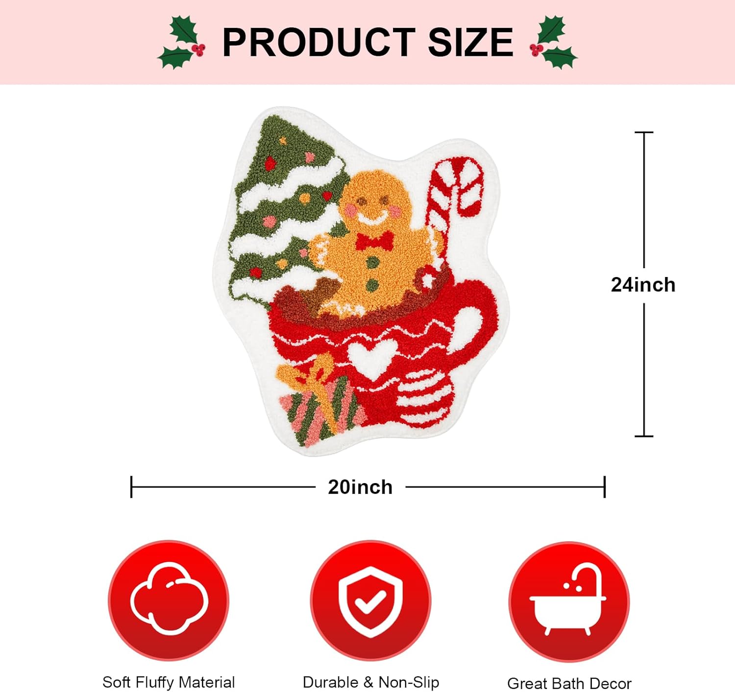 Tamaño: la alfombra de Navidad mide 24 x 20 (aprox. 50.8 cm), que es un tamaño estándar ideal para cualquier baño.