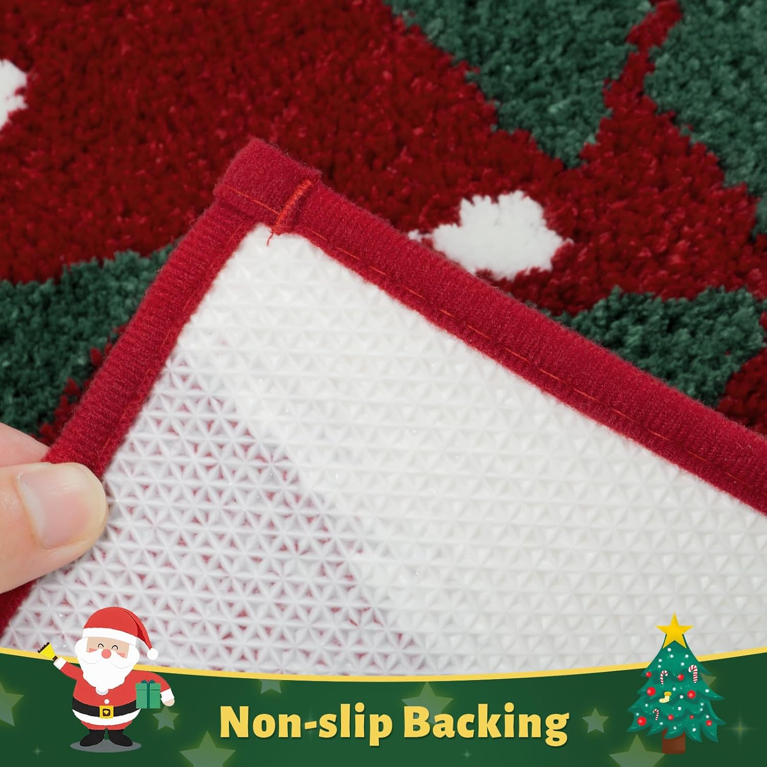 Respaldo antideslizante: ¡La seguridad es lo primero! La parte trasera antideslizante garantiza que la alfombra de Navidad para interiores se mantenga en su lugar de forma segura incluso en el tráfico de vacaciones más ocupado, evita accidentes de deslizamiento y proporciona tranquilidad