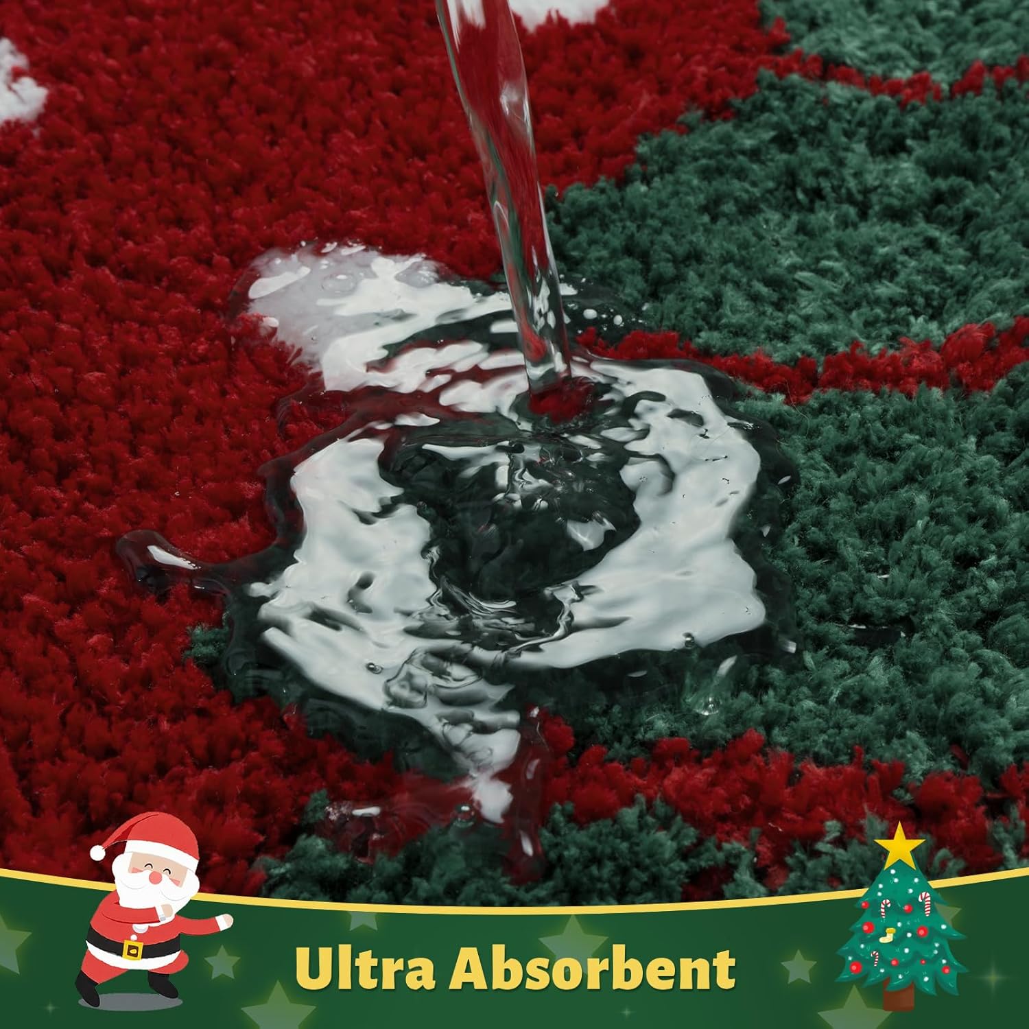 Súper absorbente: el pelo alto y suave dota a estas alfombras rojas de baño navideñas con una absorción excepcional. Absorbe rápidamente el goteo de agua y humedad, manteniendo tu hogar fresco y limpio
