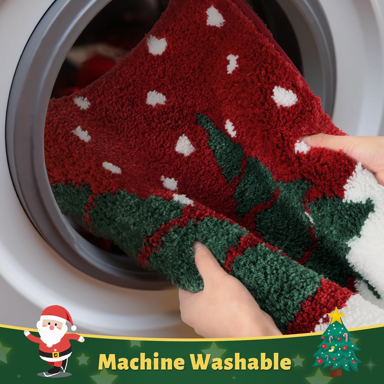 Fácil cuidado: simplemente coloca las alfombras navideñas en la lavadora en modo suave. Elimina la suciedad sin esfuerzo y mantén tu alfombra de baño con un aspecto nuevo, haciendo que la limpieza sea muy fácil y te da más tiempo para disfrutar de reuniones festivas