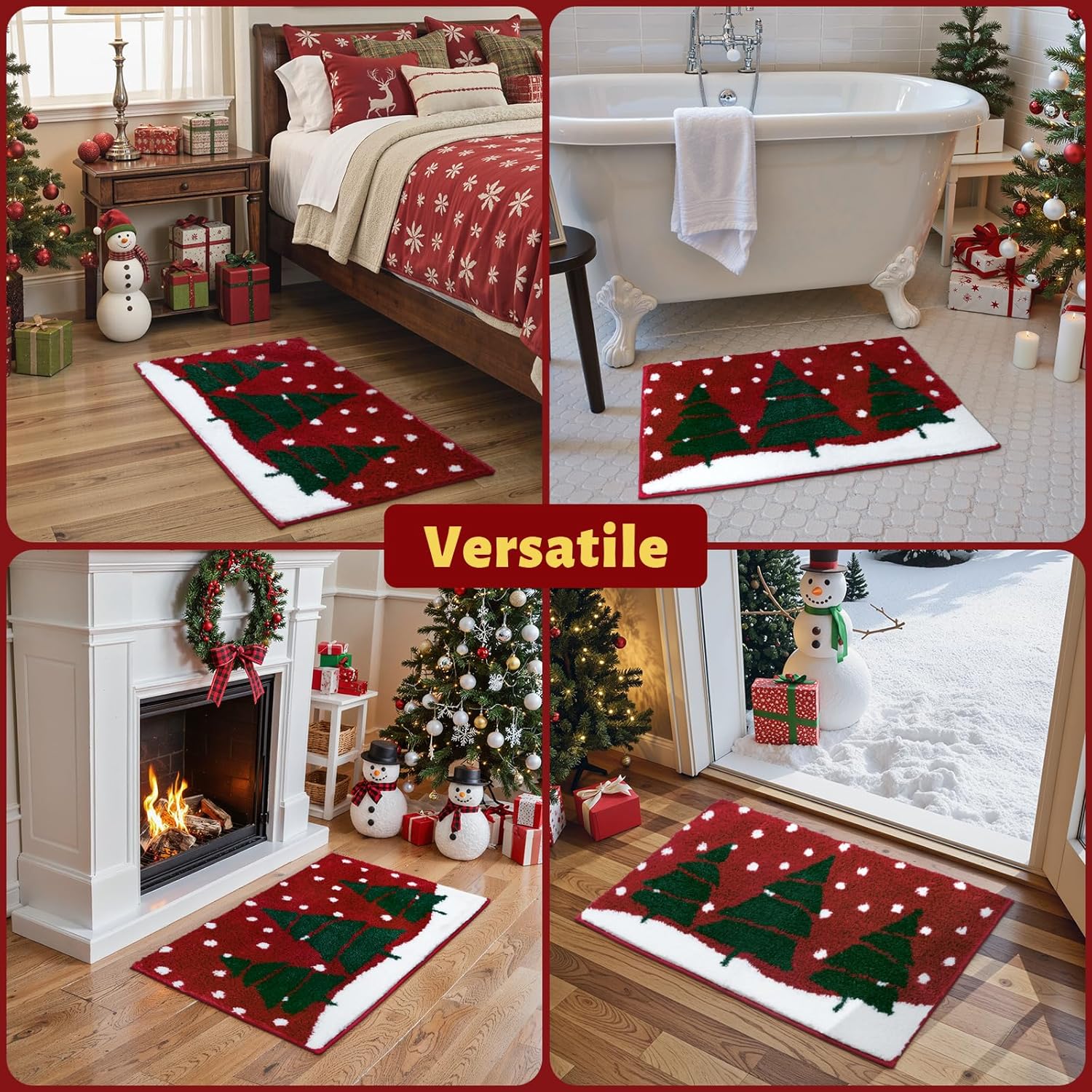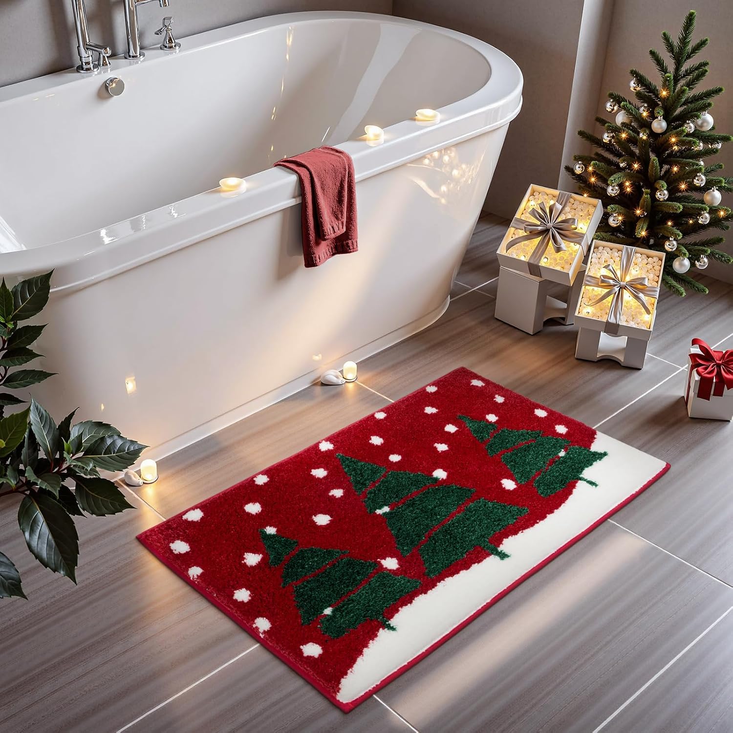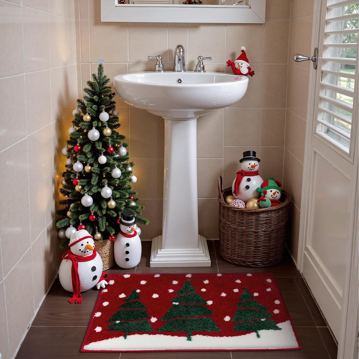 Tapete de baño para árbol de Navidad, decoración de baño de Navidad, absorbente y bonito, tapete de baño de felpa suave, antideslizante, lavable a máquina, tapetes de baño para bañera y lavabo, 20 x