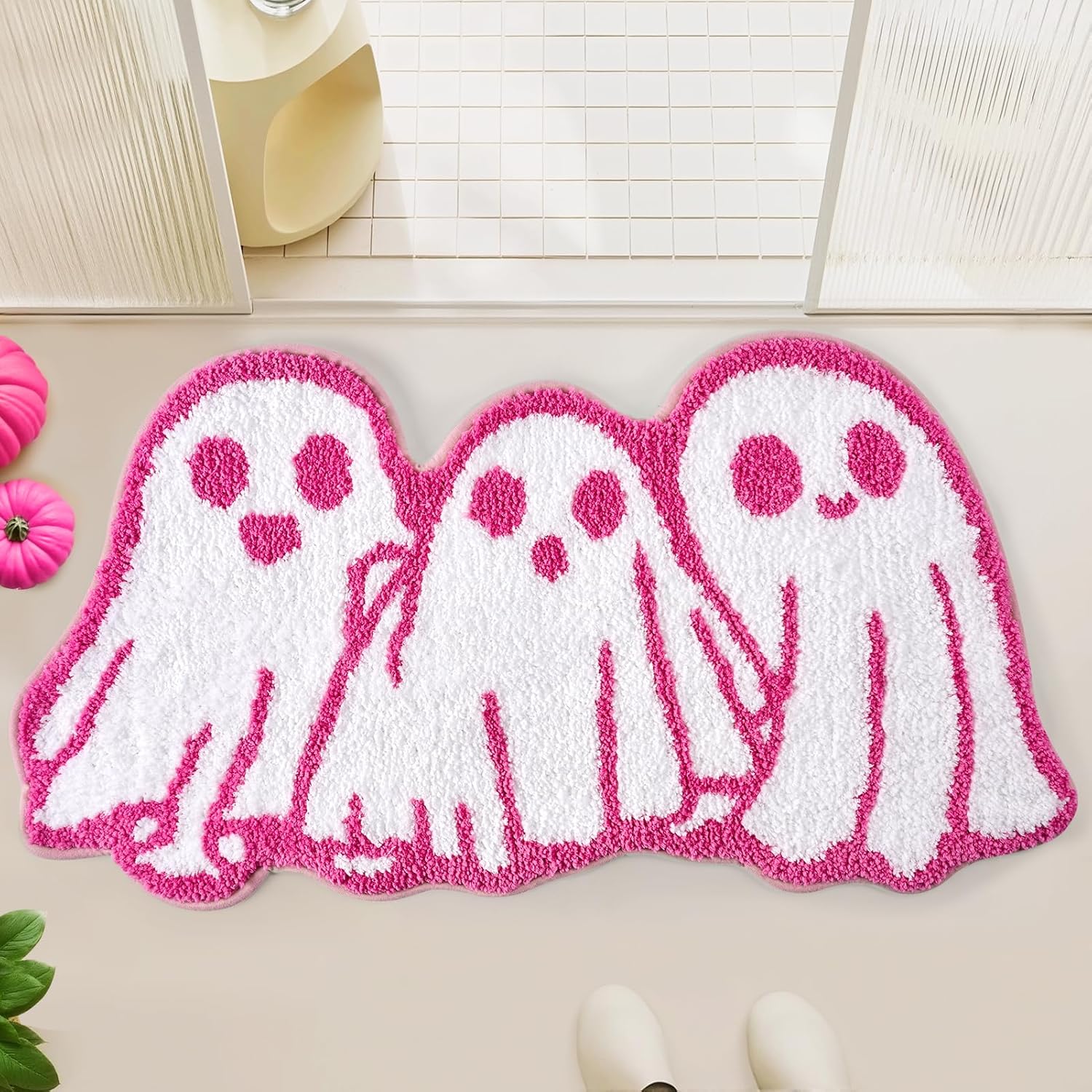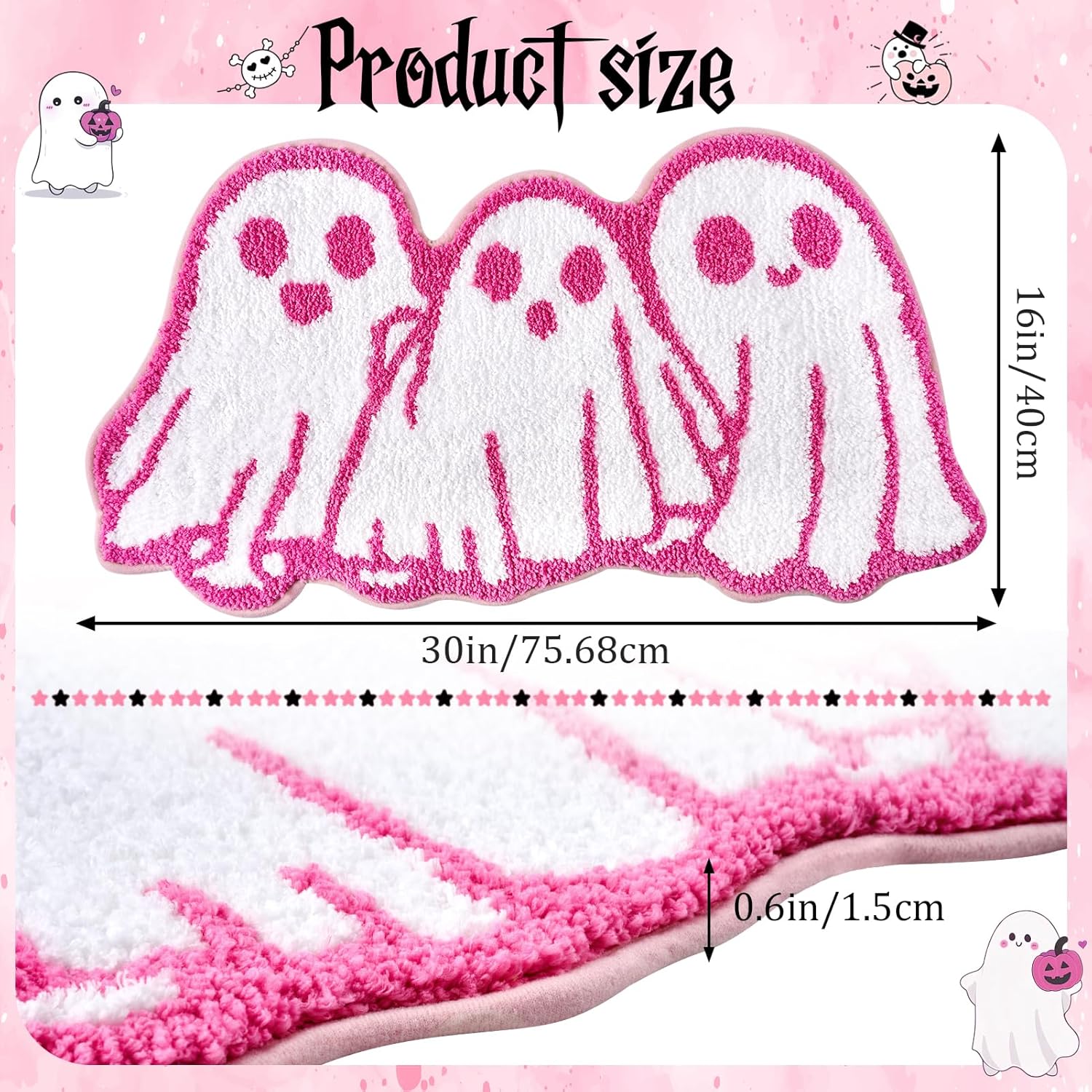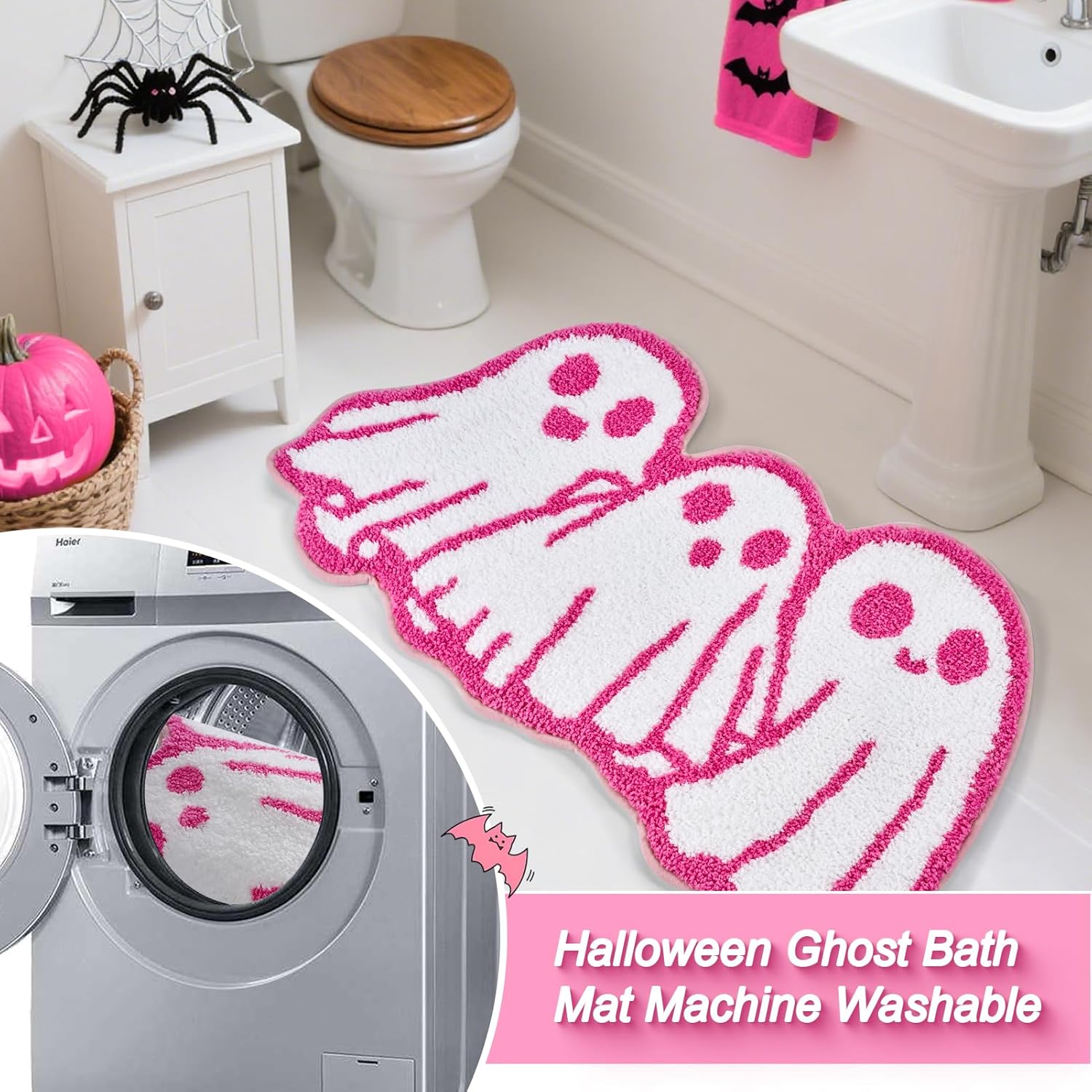 Tapete de baño rosa de Halloween, tapete de baño fantasma, antideslizante, tapete gótico espeluznante, tapete de baño gótico espeluznante, tapete de baño divertido para frente de la ducha, bañera