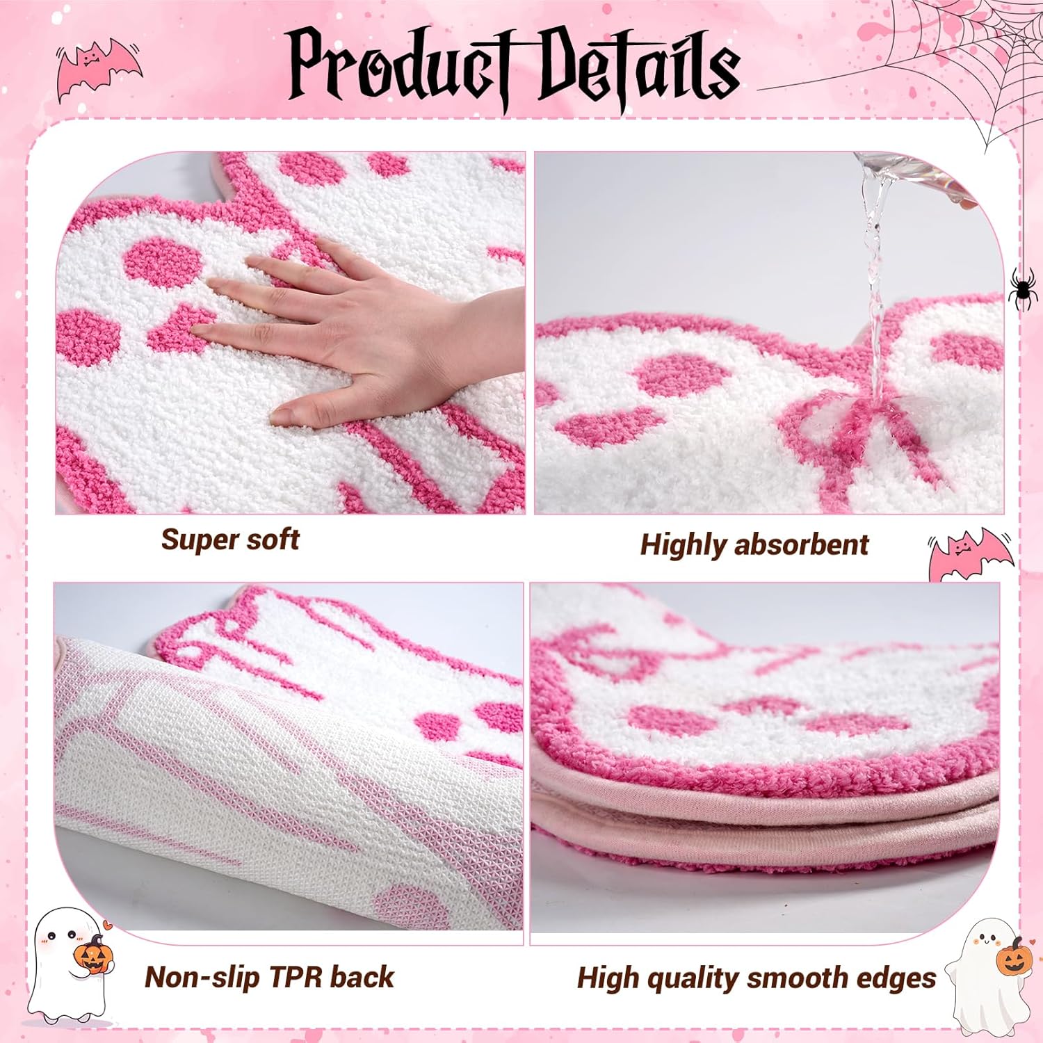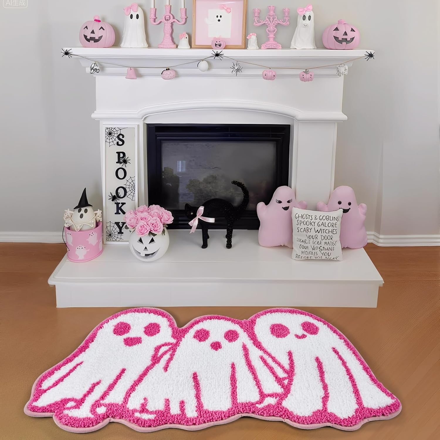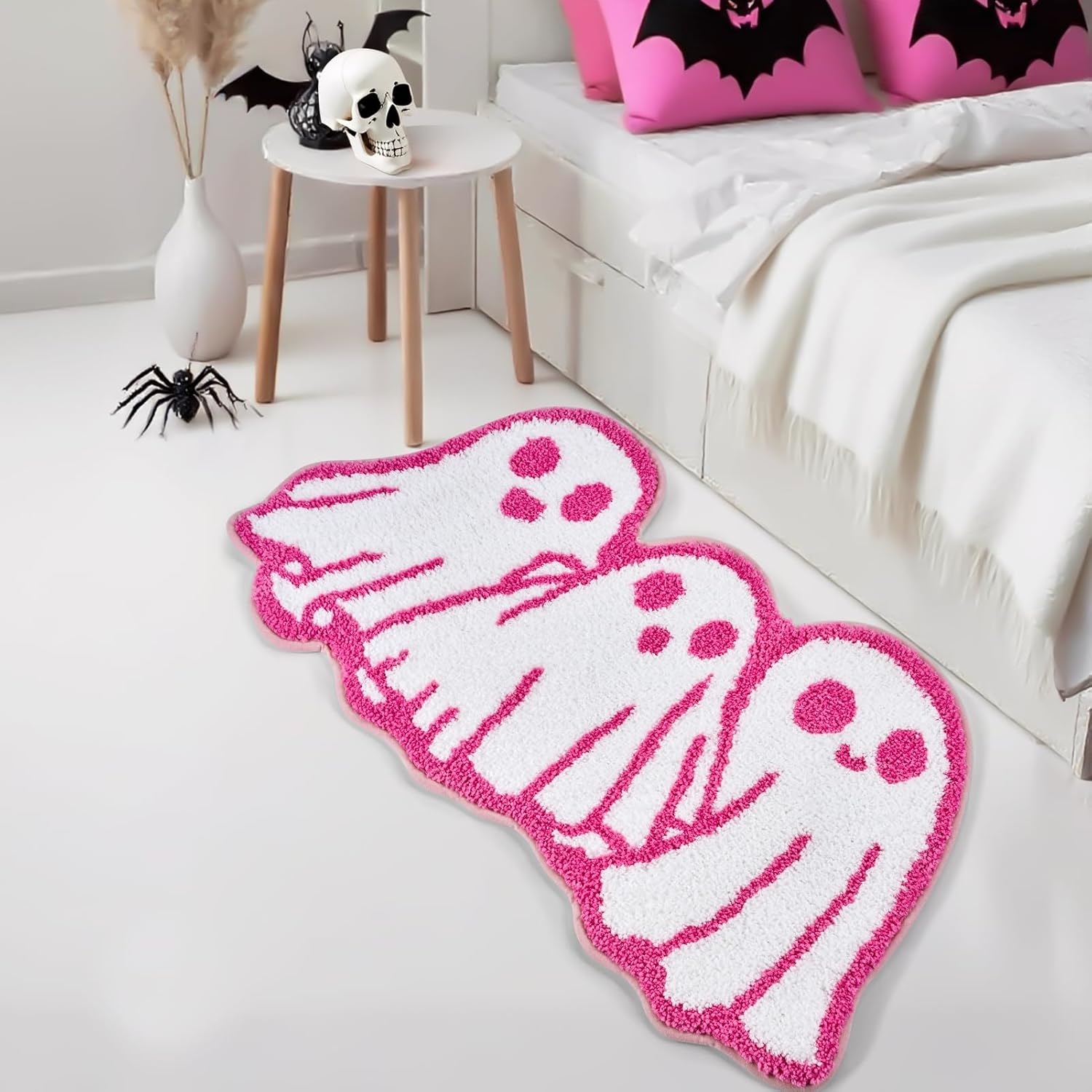 Tapete de baño rosa de Halloween, tapete de baño fantasma, antideslizante, tapete gótico espeluznante, tapete de baño gótico espeluznante, tapete de baño divertido para frente de la ducha, bañera