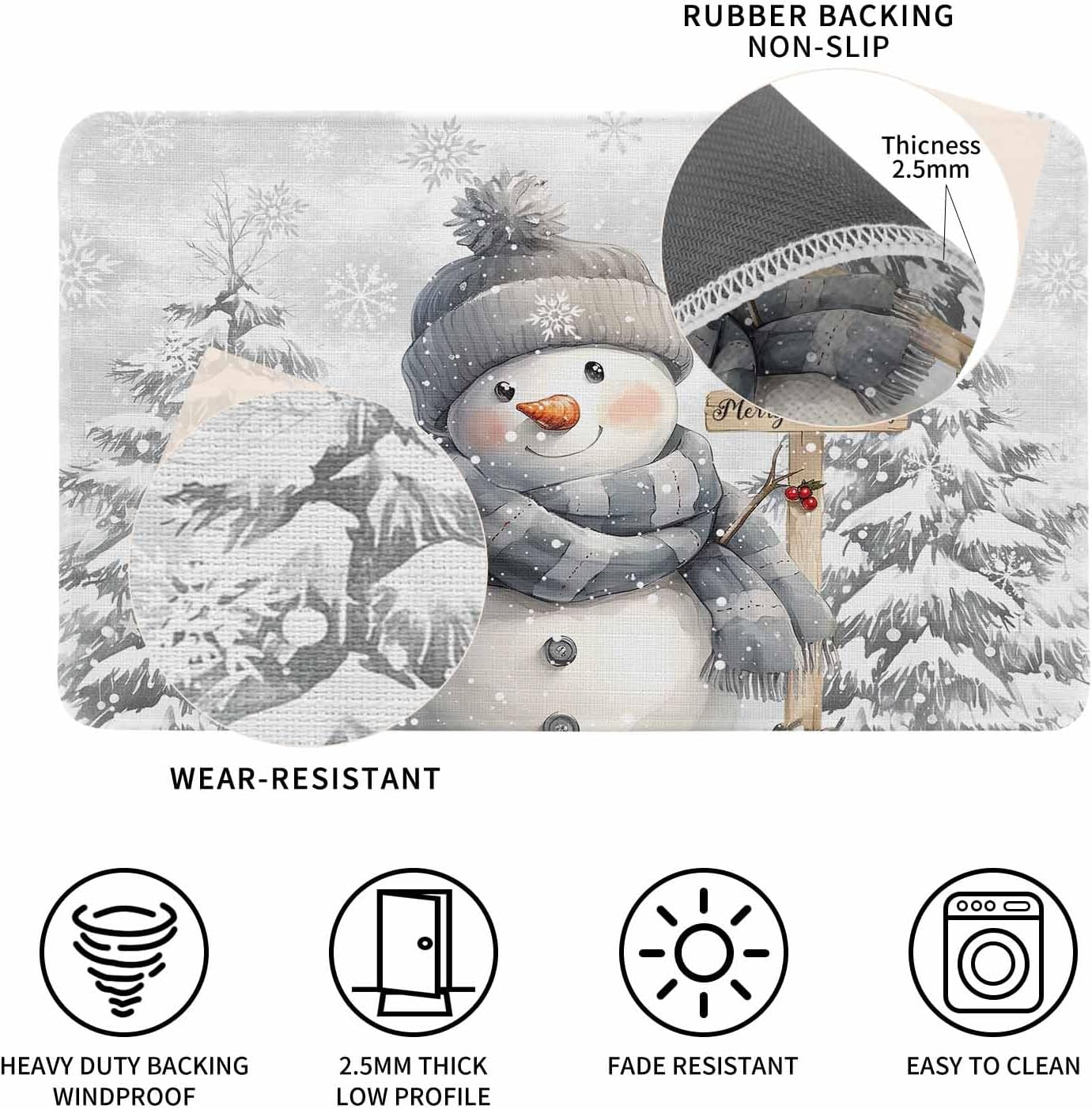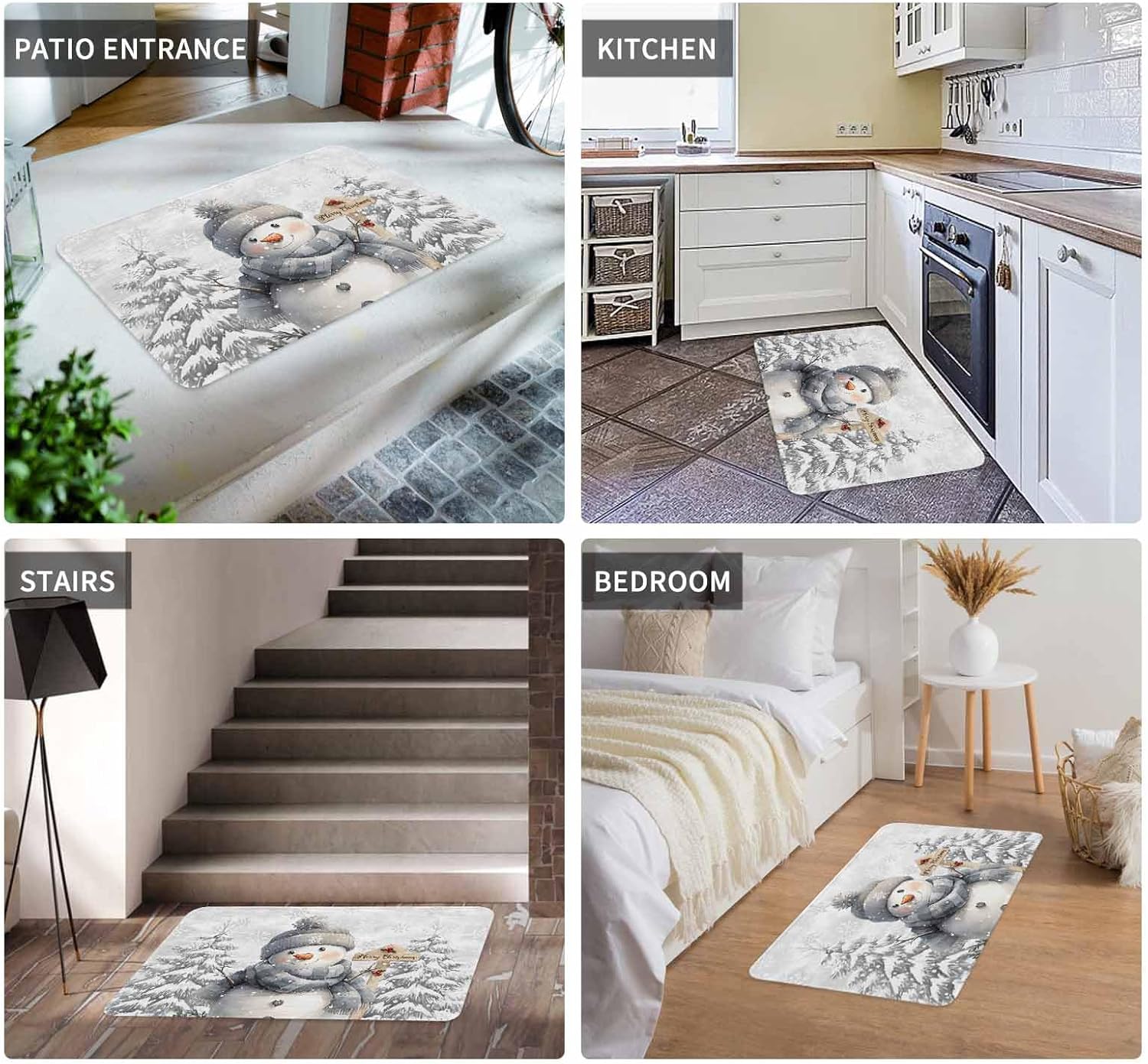 Ampliamente aplicado: da la bienvenida a los invitados a tu hogar con este tapete único de temporada. El tapete de muñeco de nieve es aplicable para colocar en la puerta de tu cocina, dormitorio, sala de estar, comedor, baño, porche, escalera, oficina y cualquier lugar interior o exterior, añadiendo personalidad y estilo festivo a tu hogar.