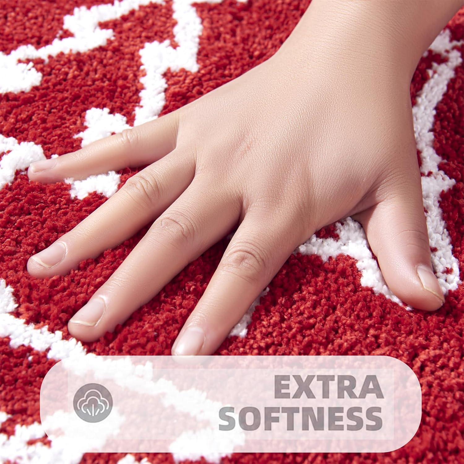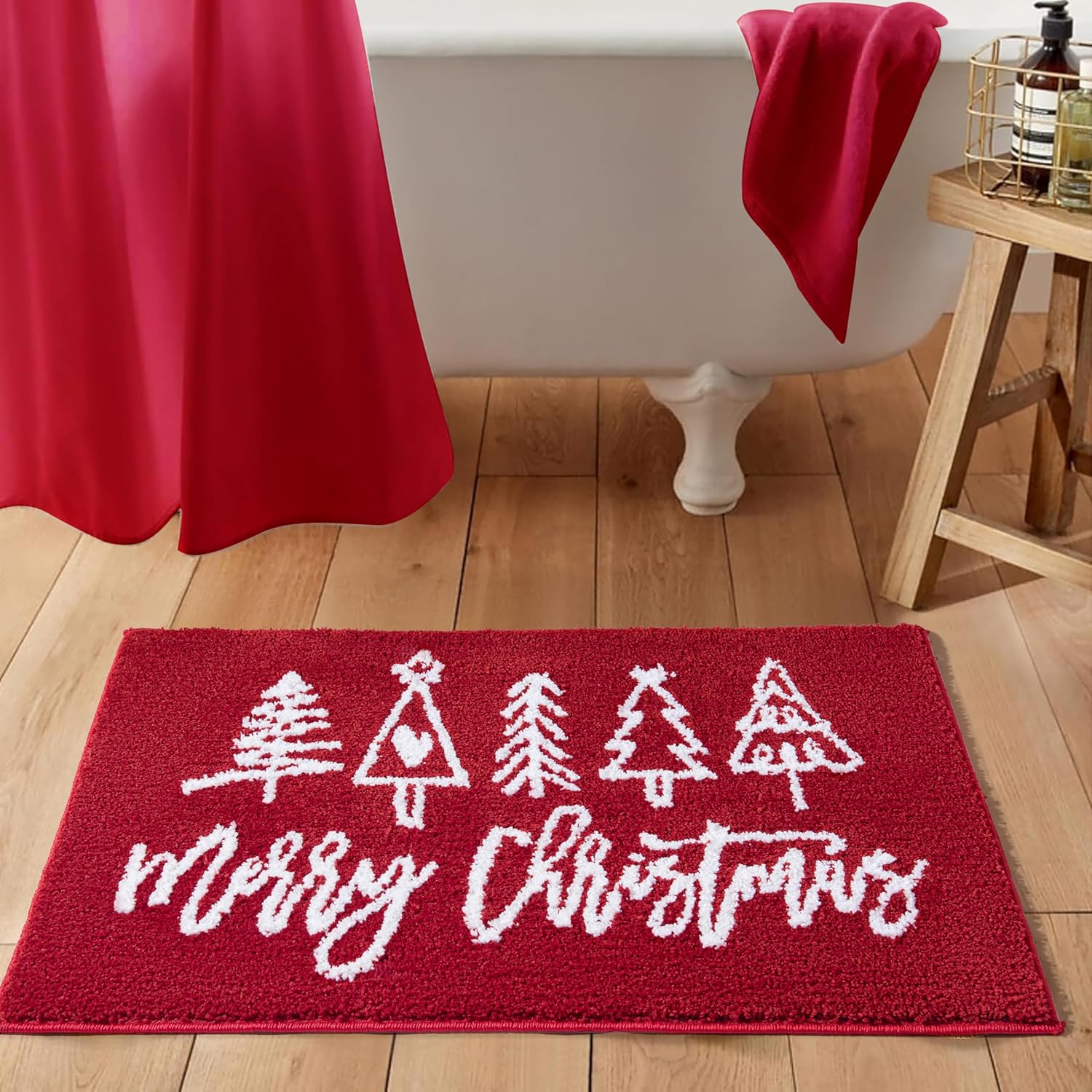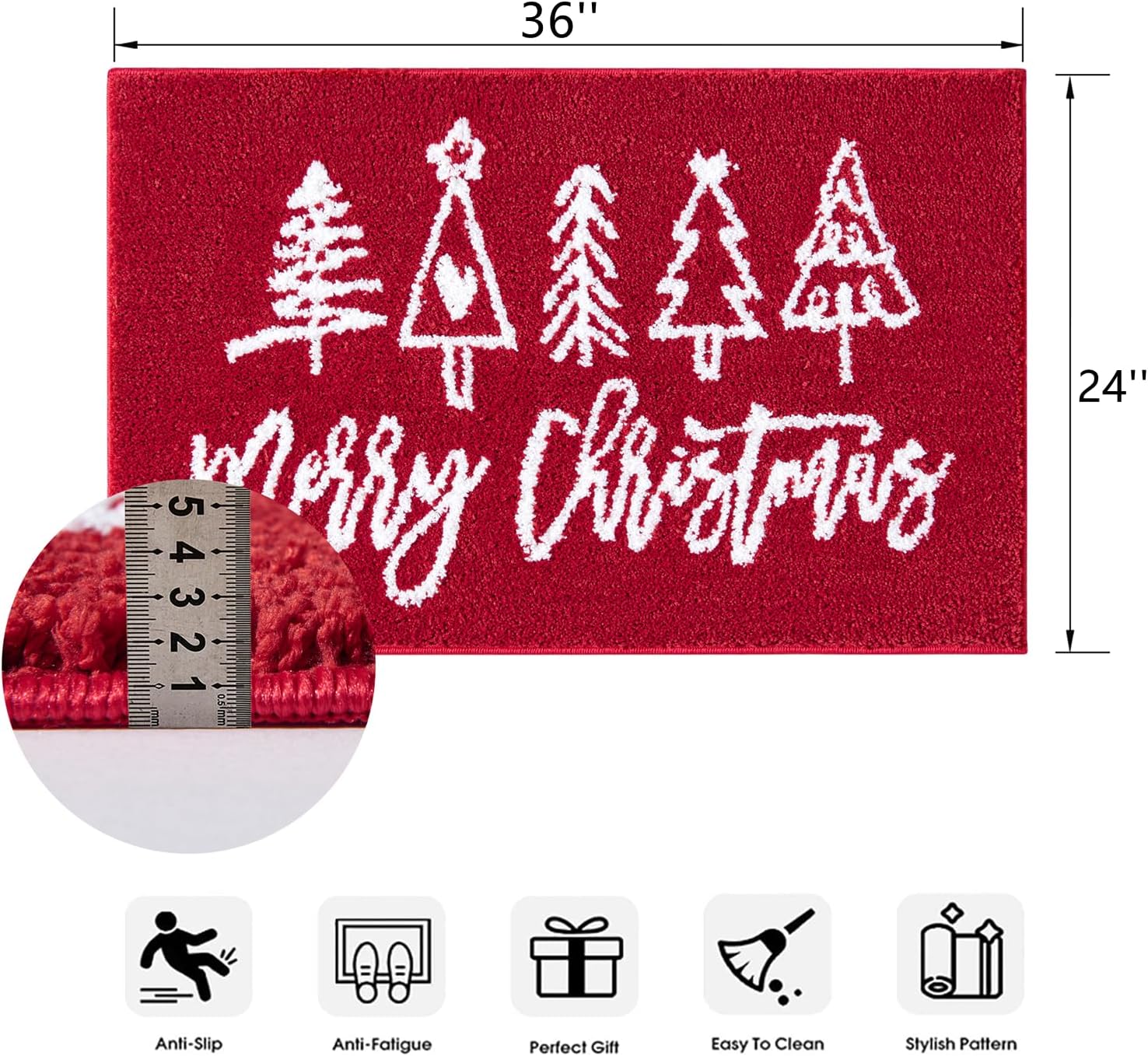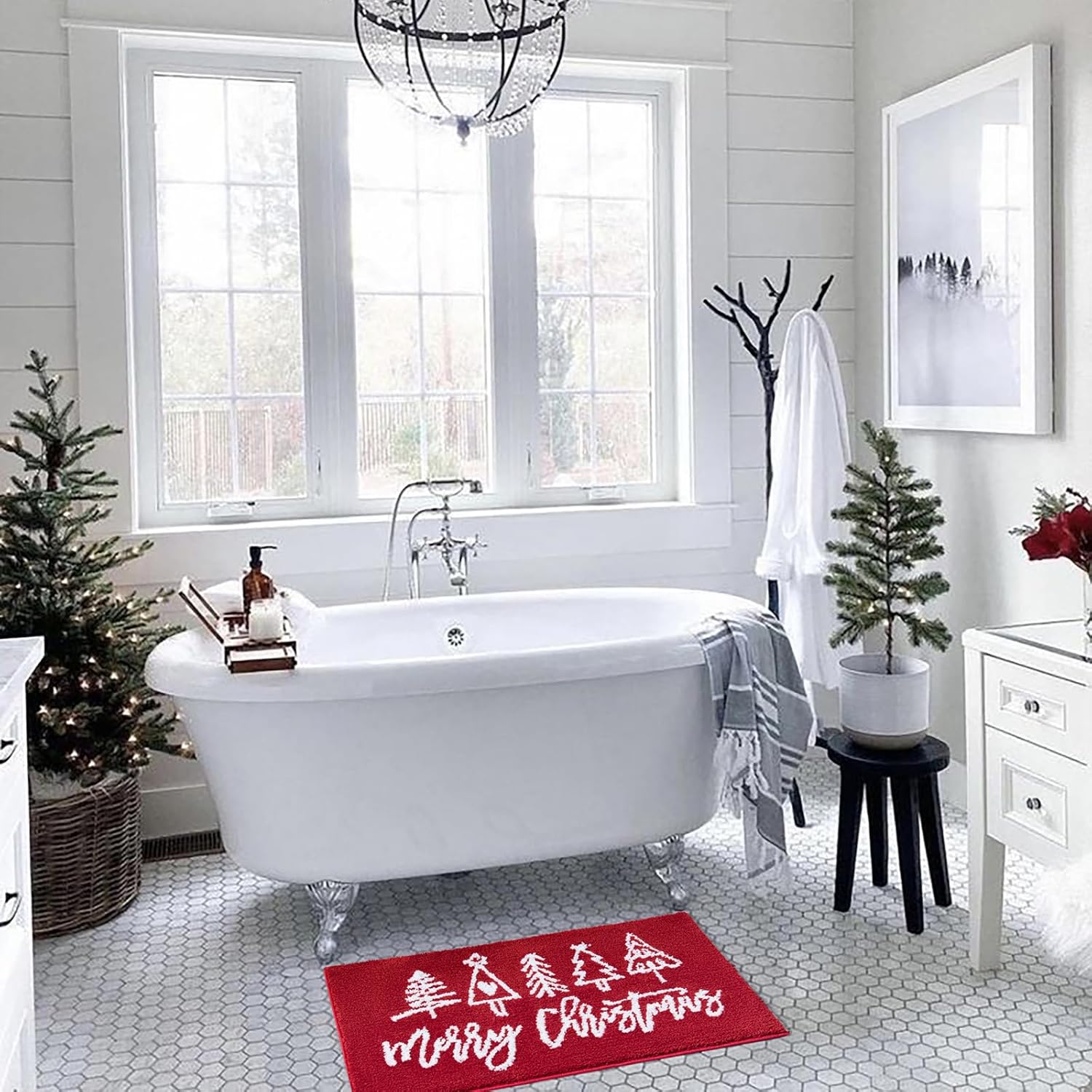 Tapete de interior con diseño copetudo de Feliz Navidad, lavable, bonito y vibrante color rojo moderno, tapete de baño para árbol de Navidad, antideslizante, para vacaciones, invierno, 2 x 3 pulgadas