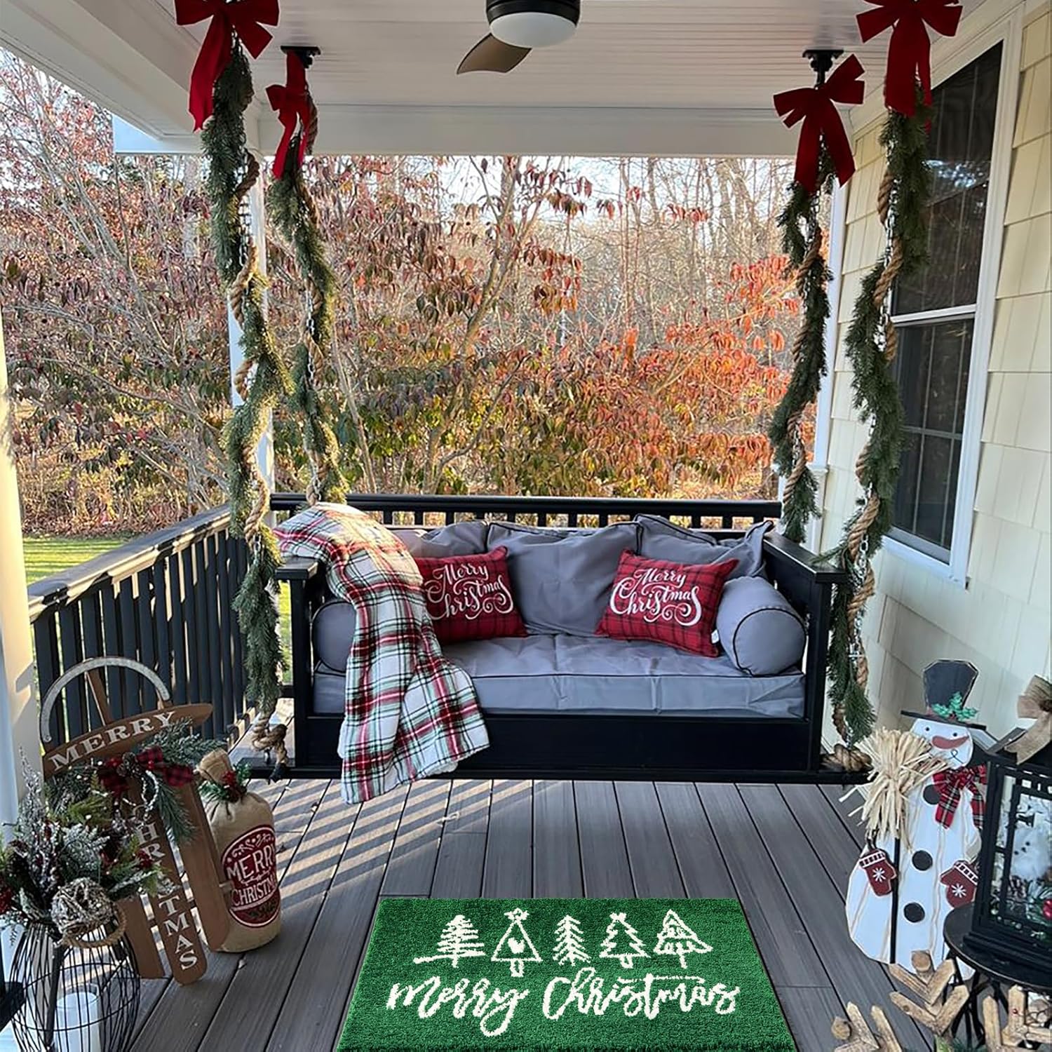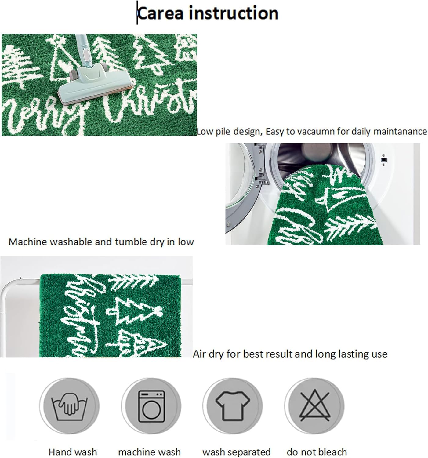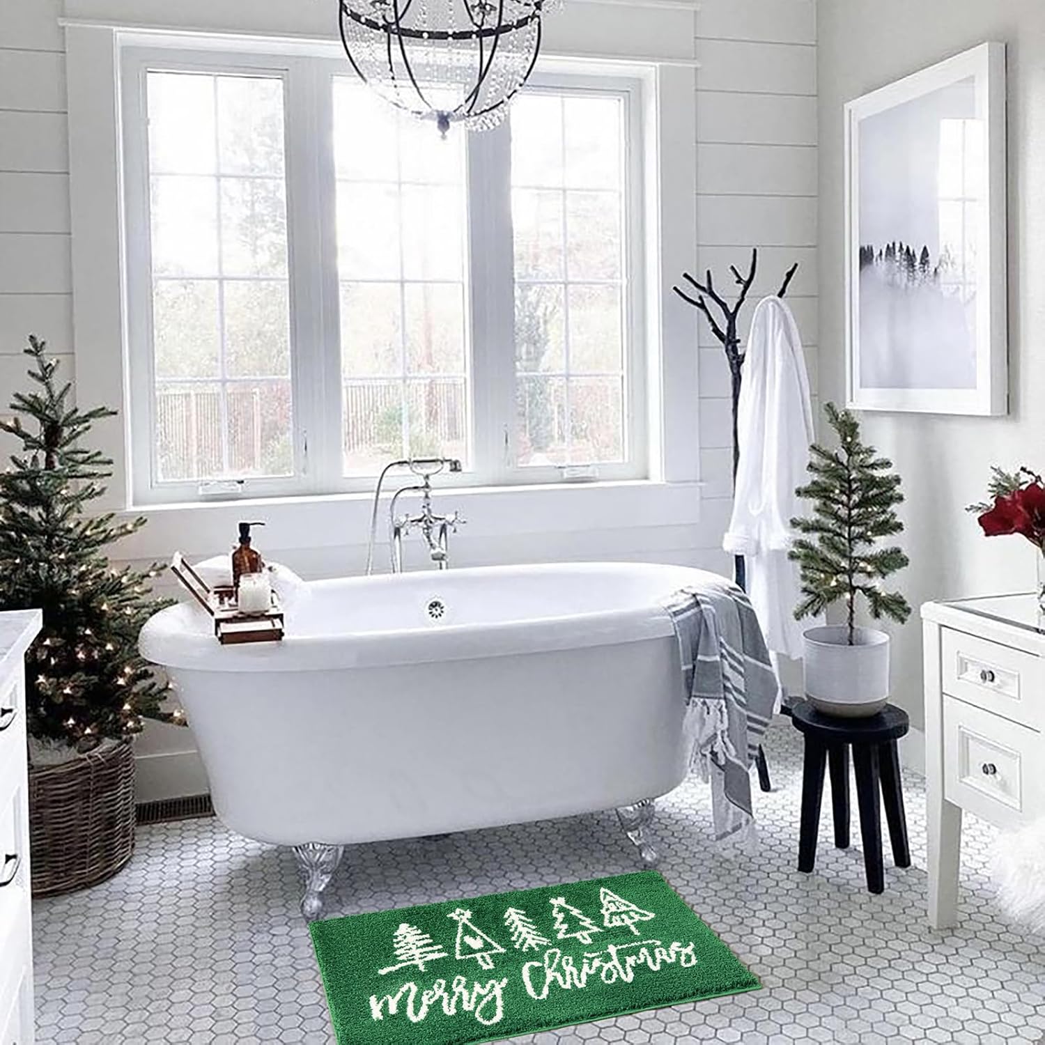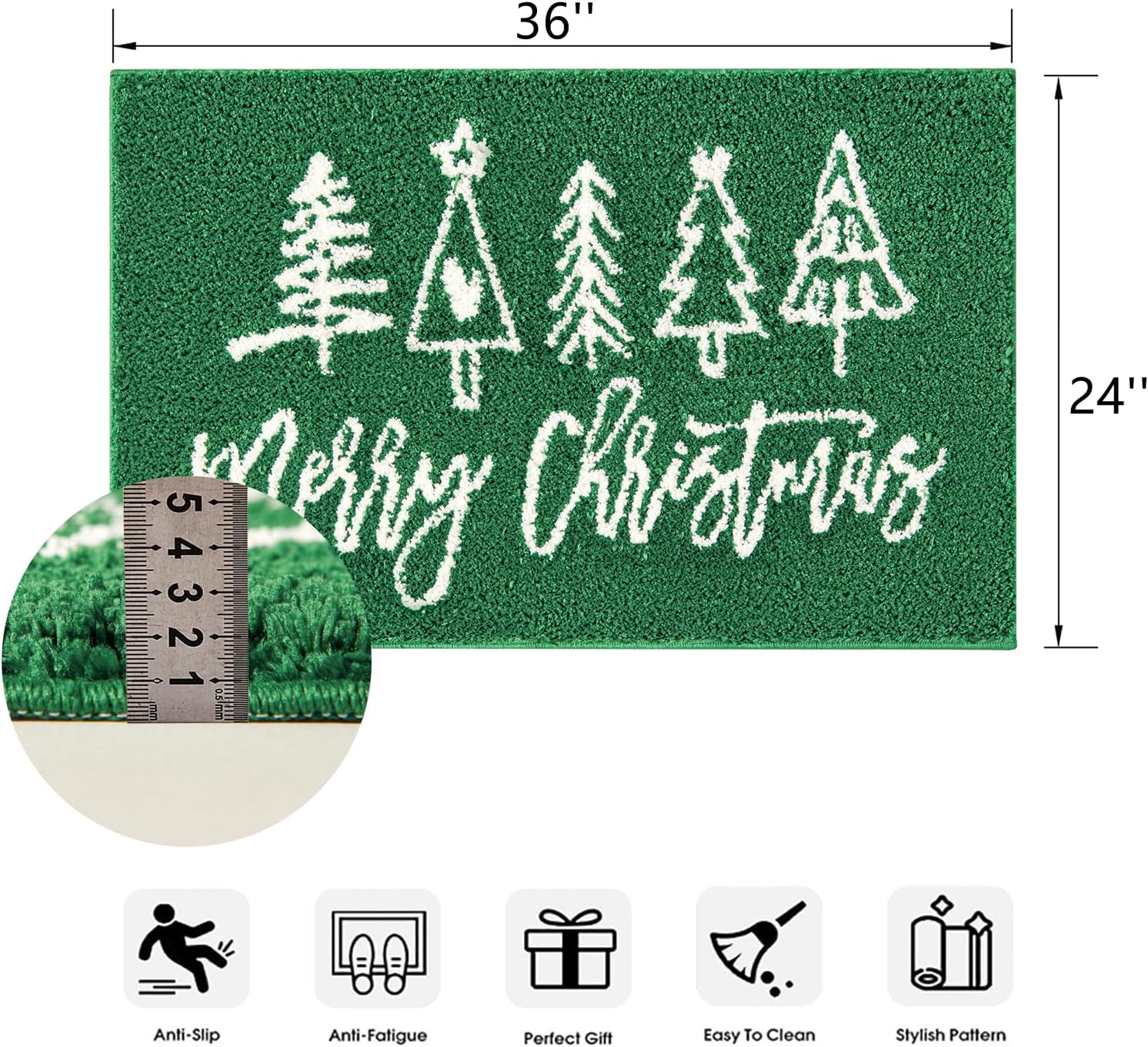 Tapete de interior con diseño de Feliz Navidad, lavable, bonito color verde, moderno, tapete de baño antideslizante para árbol de Navidad, festivo, invierno, 2 x 3 pulgadas, para cocina, entrada