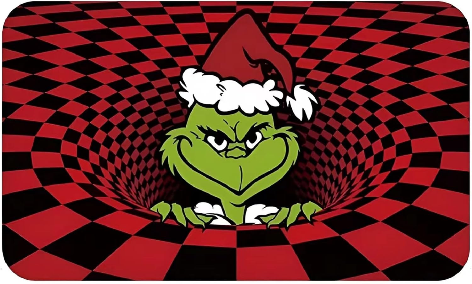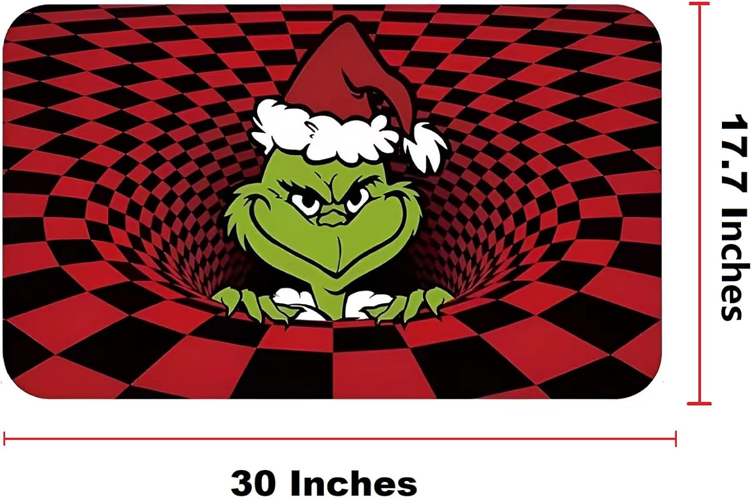 Tapete de Navidad con ilusión 3D, antideslizante, con ilusión óptica, tapete de Navidad, patrón a cuadros negros y rojos para decoración de Navidad en interiores y exteriores
