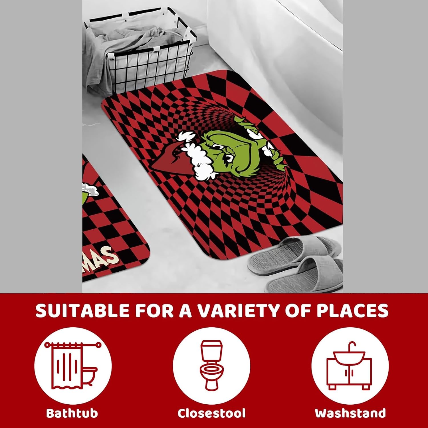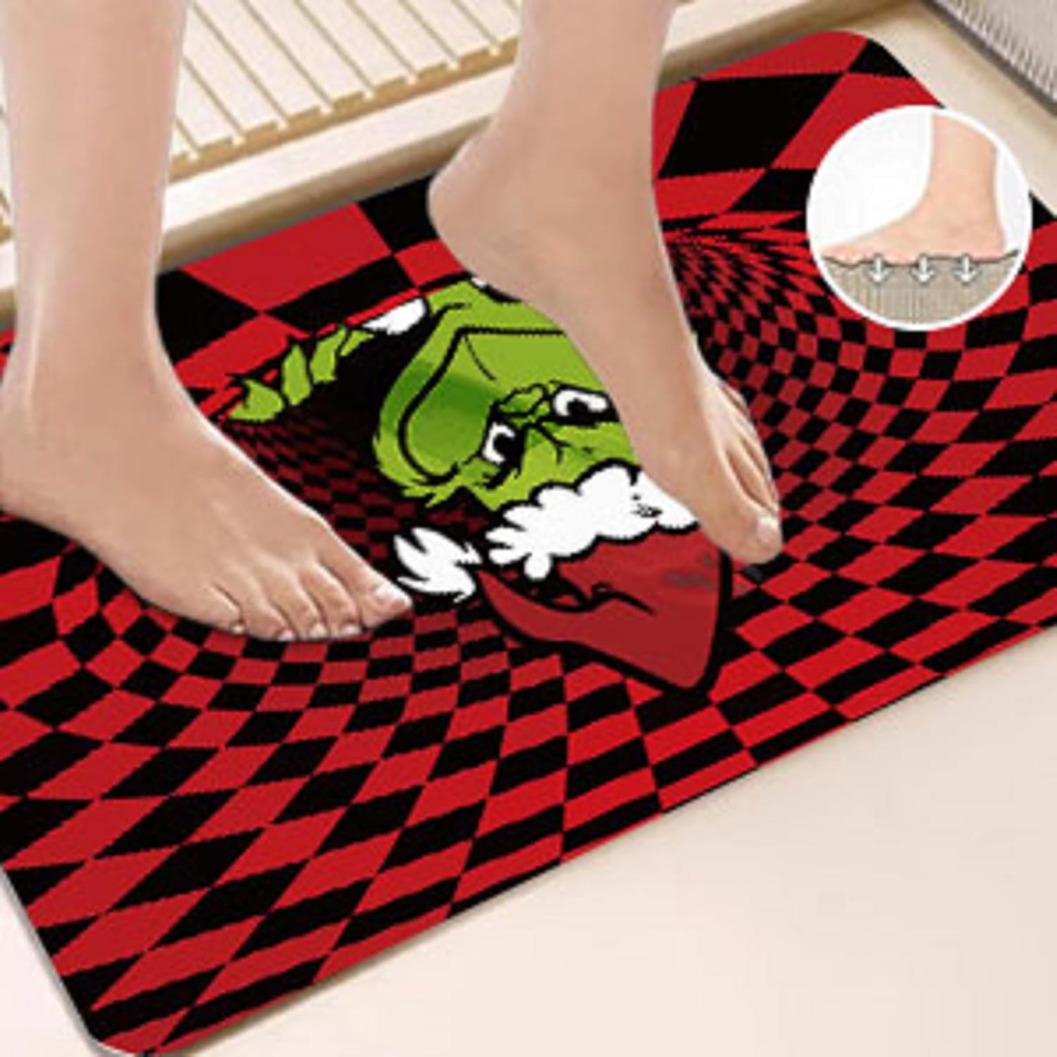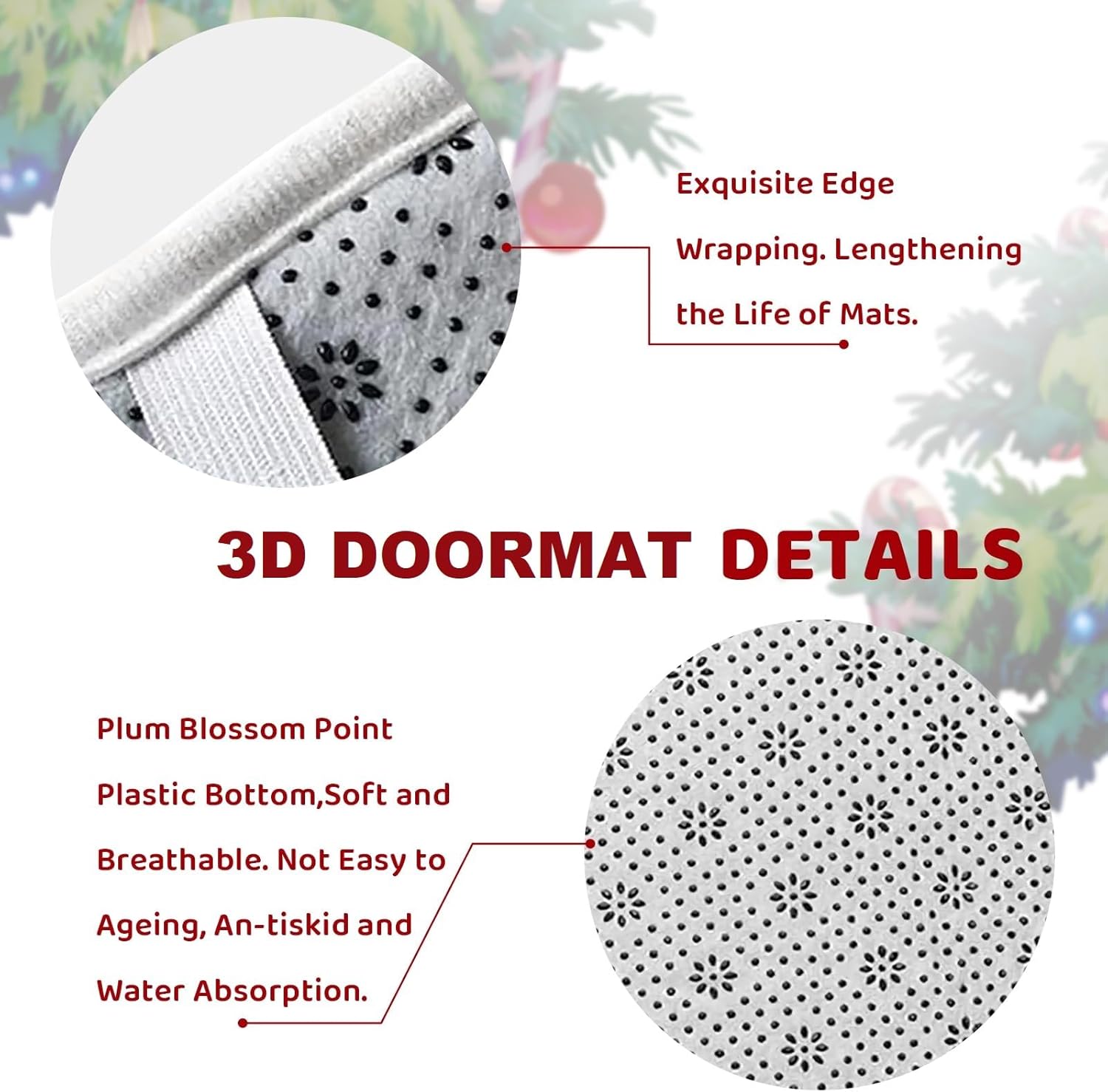 Material de alta calidad: el tapete antideslizante de Navidad está hecho de franela de alta calidad, que es cómoda y duradera, rellena de esponja gruesa, suave y corona. El felpudo adopta un punto antideslizante denso y fuerte, mantiene el felpudo en su lugar, lo que te ayuda a disfrutar de un tiempo agradable.