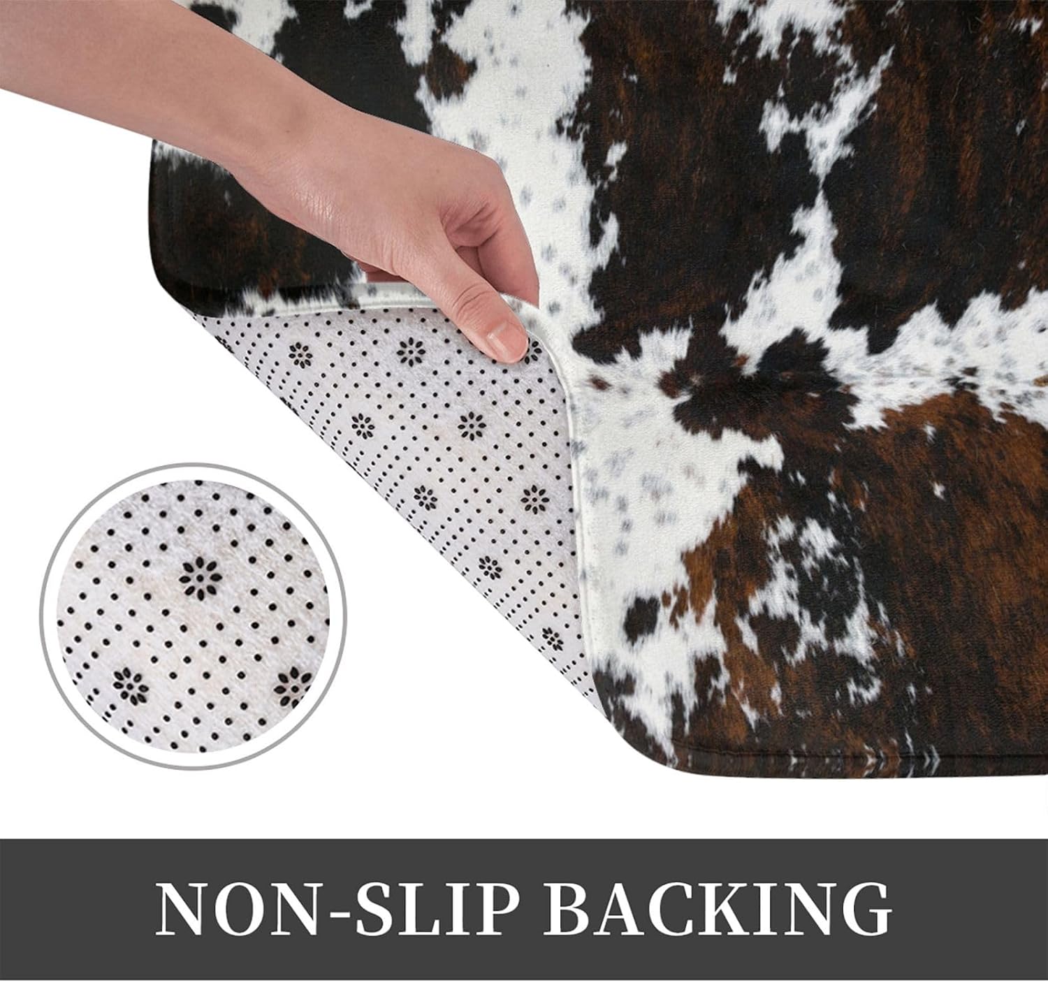Alfombra de baño suave: nuestras alfombras de baño con estampado de vaca occidental están hechas de 100% poliéster, franela súper suave, gruesa y cómoda.