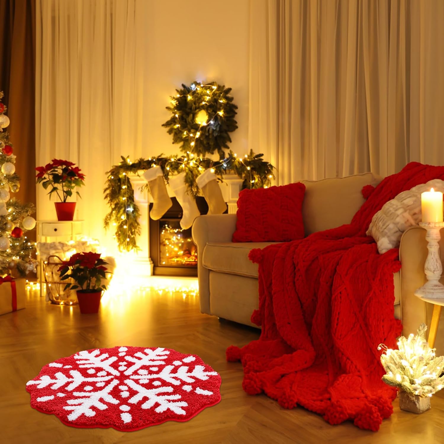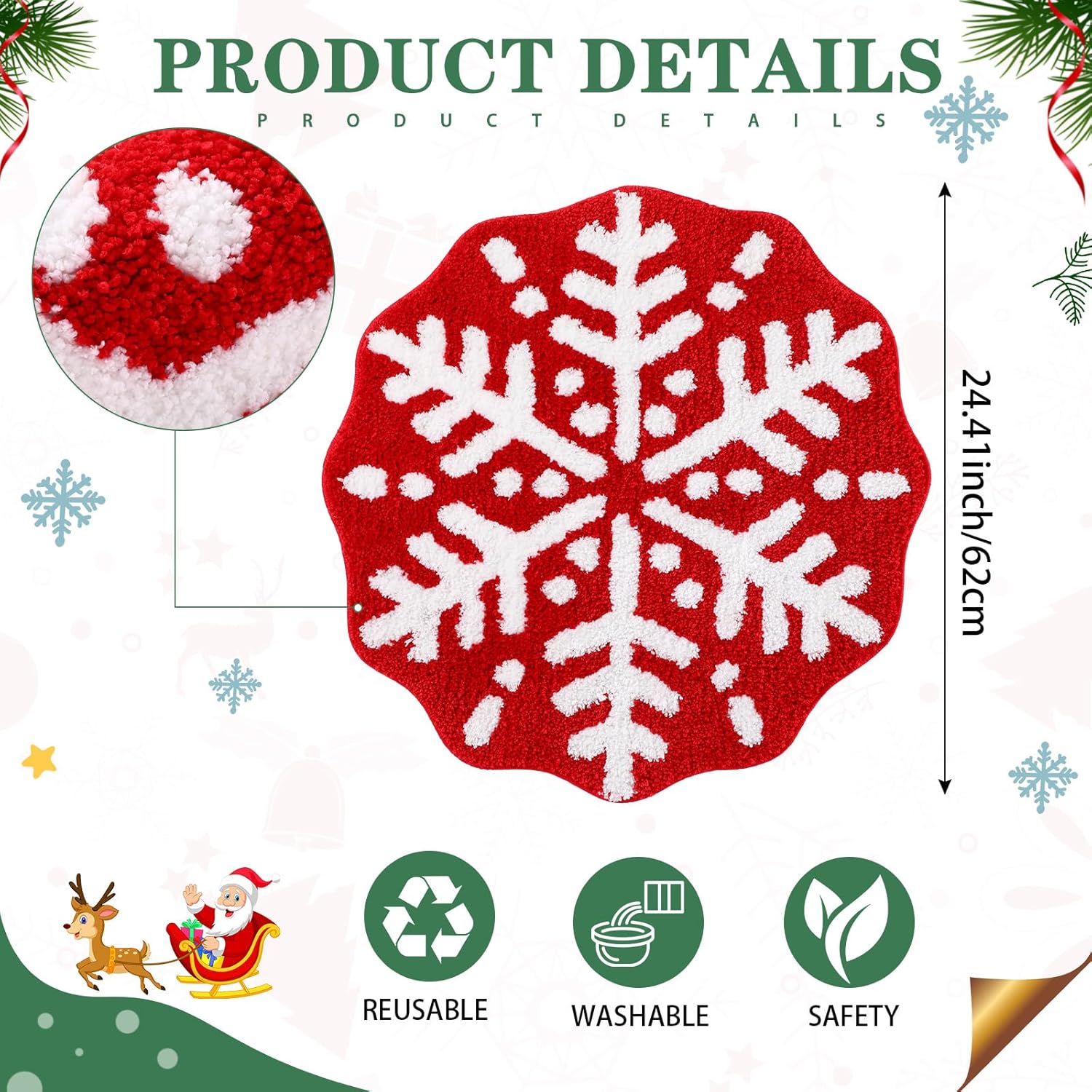 Tinideya Alfombra de baño de copo de nieve roja de invierno de 24.41 pulgadas, alfombra de baño redonda de copo de nieve antideslizante, tapete de bienvenida para decoración de alfombras de baño