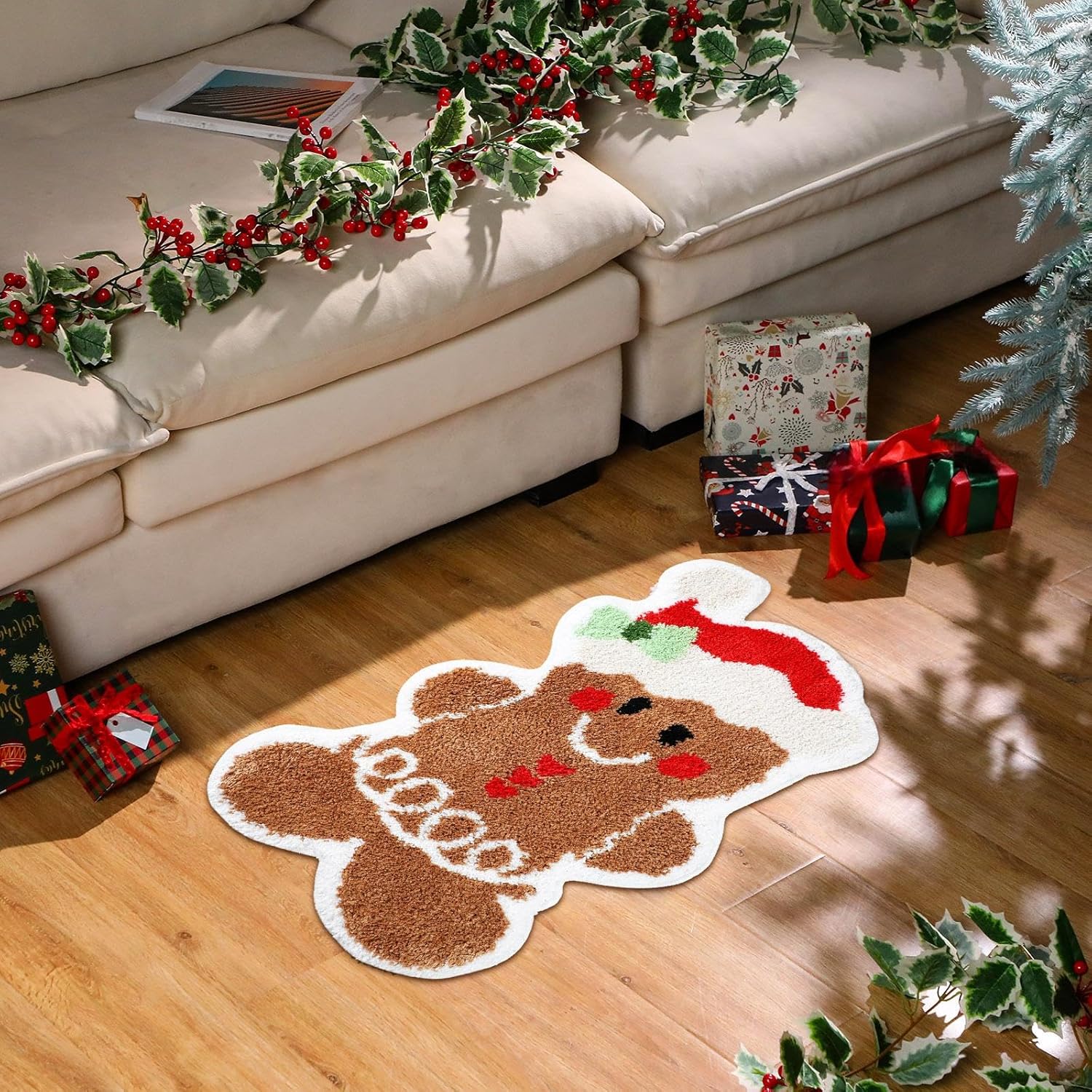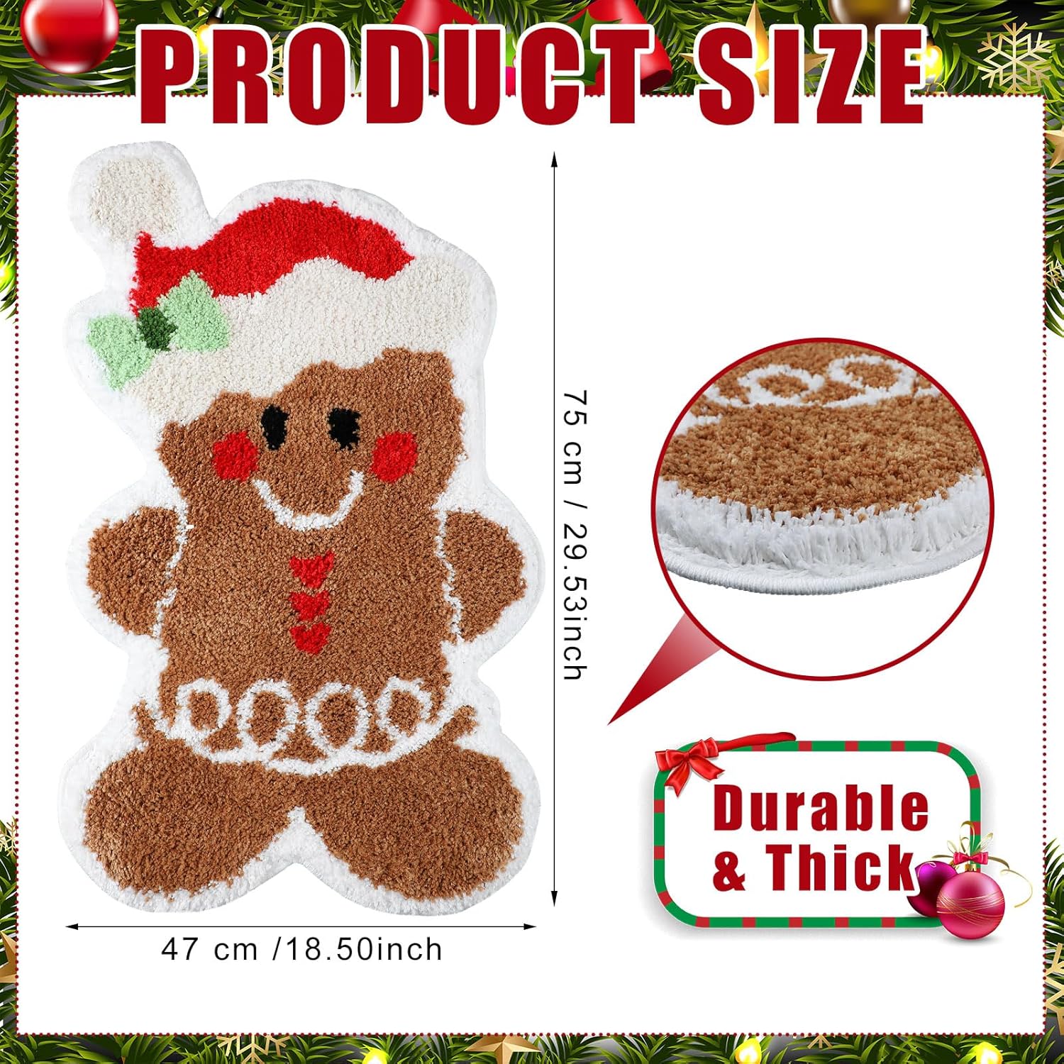Fácil limpieza: nuestra decoración navideña de pan de jengibre es muy fácil de mantener; con la opción de aspirar o lavar a máquina, despídete del polvo y la suciedad; con cada lavado, devuelve tu alfombra a su vibrante