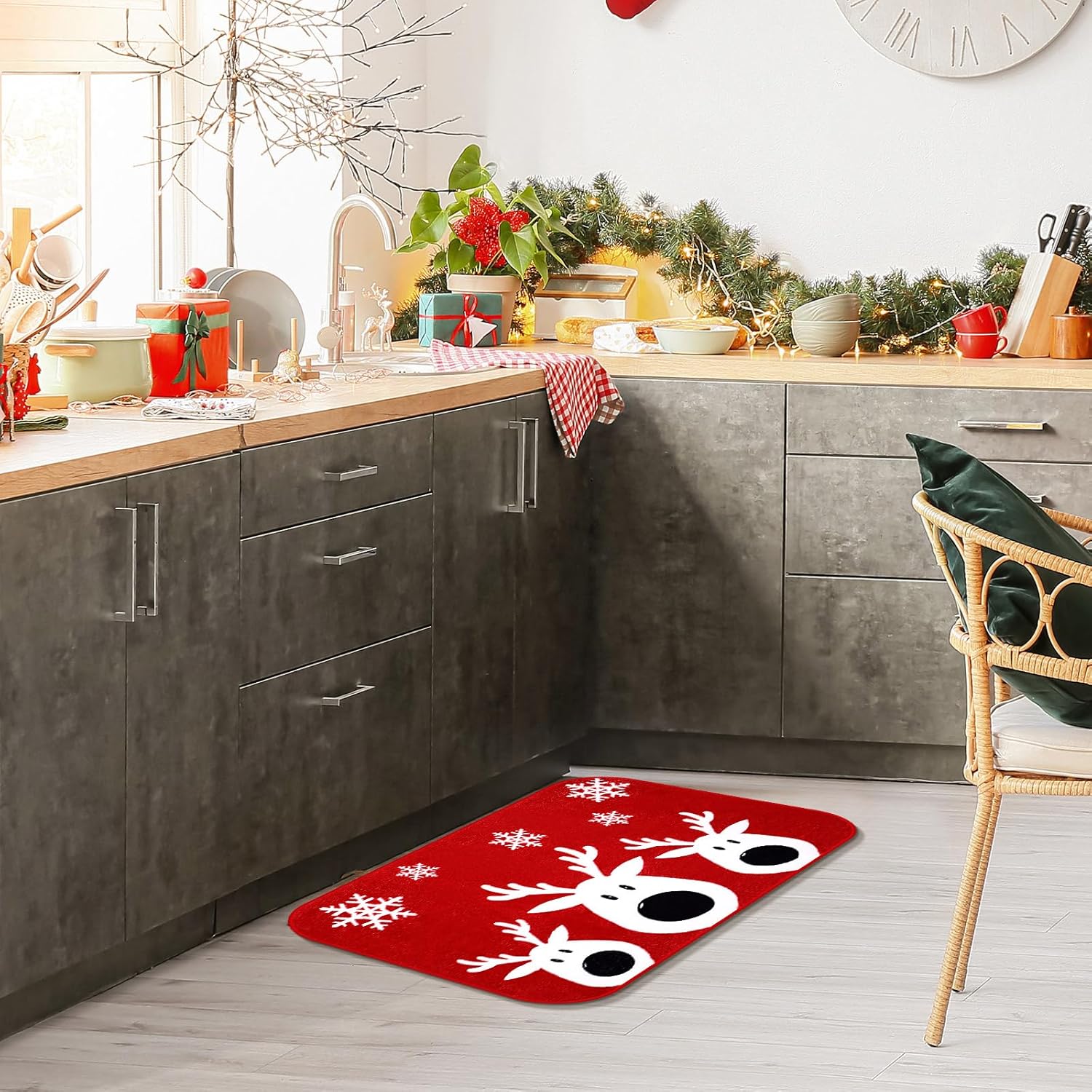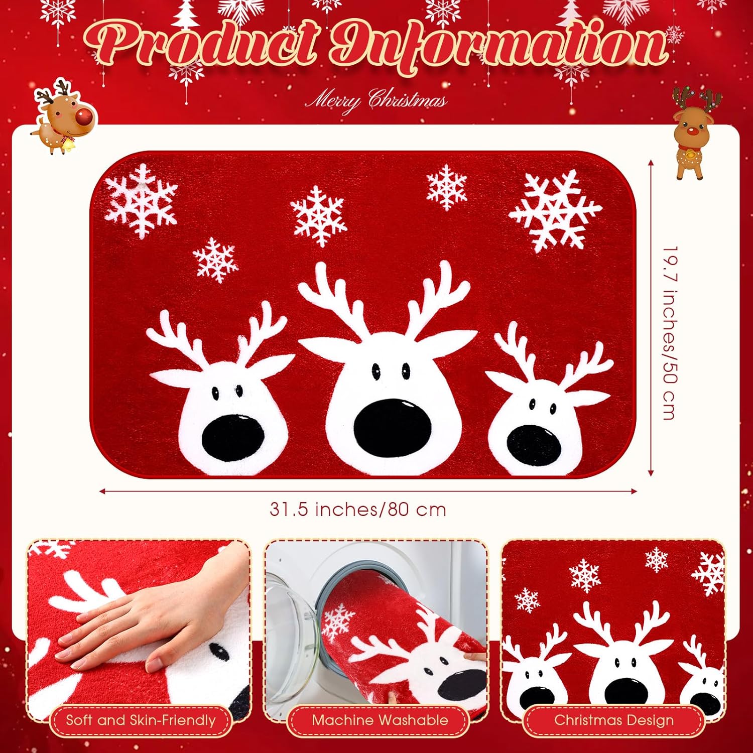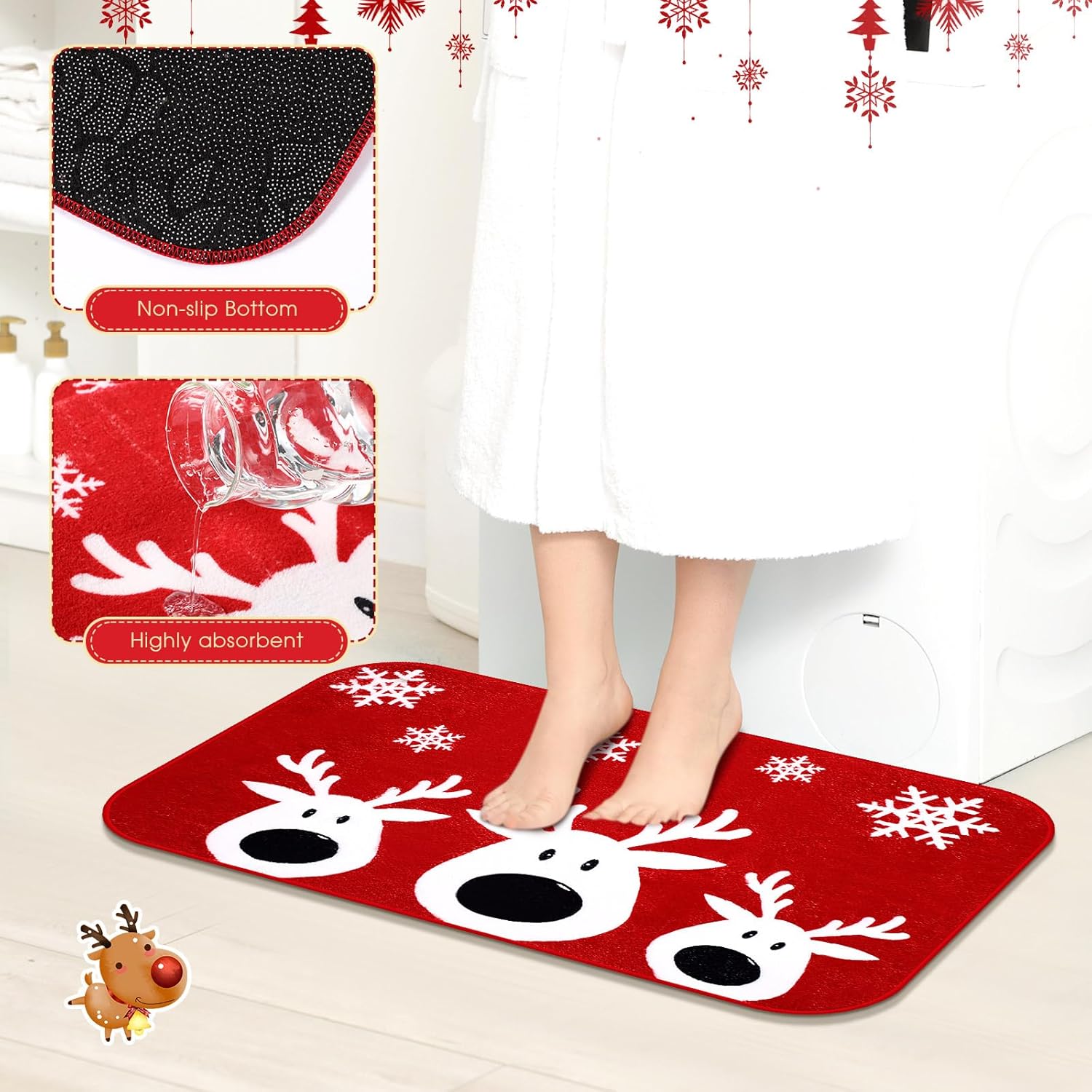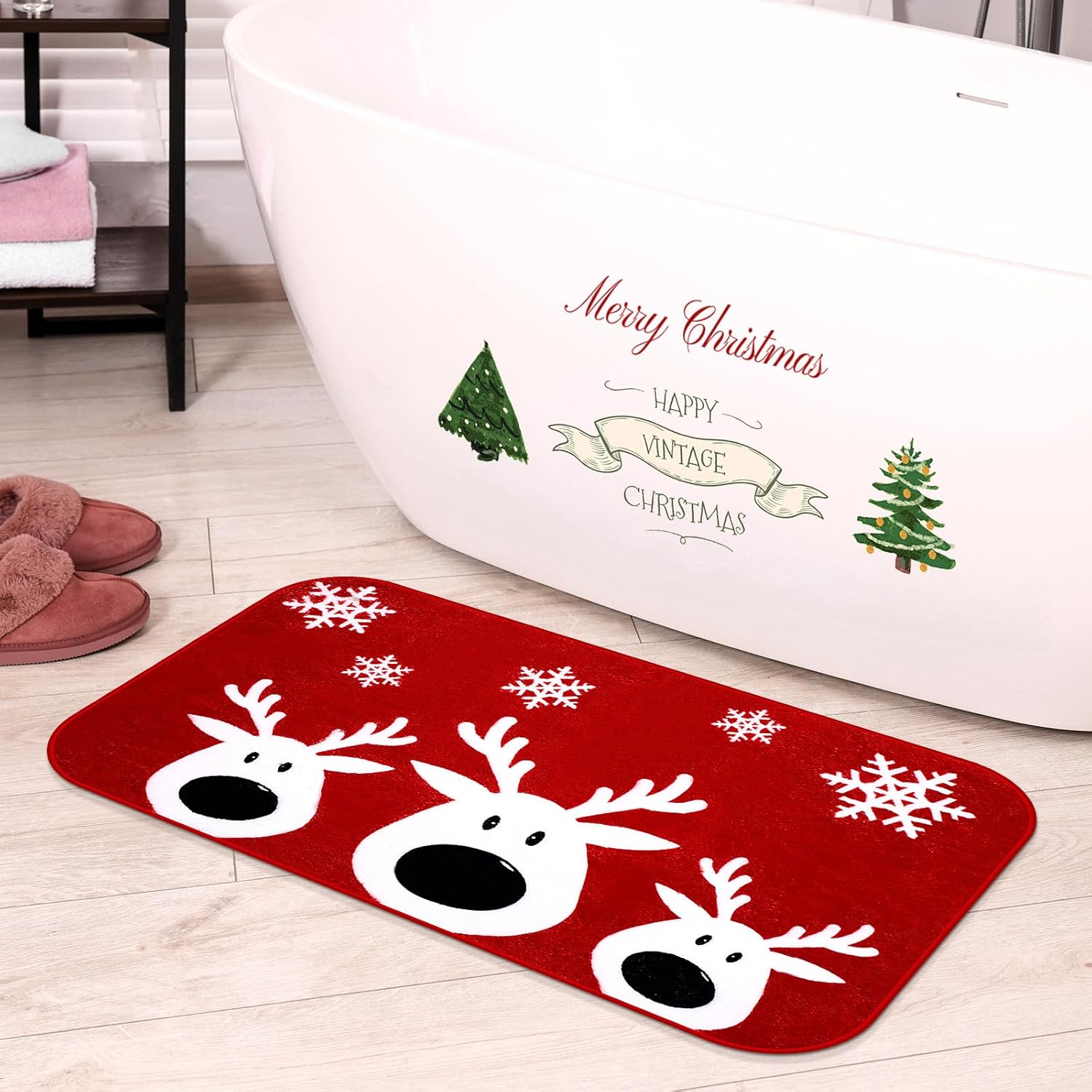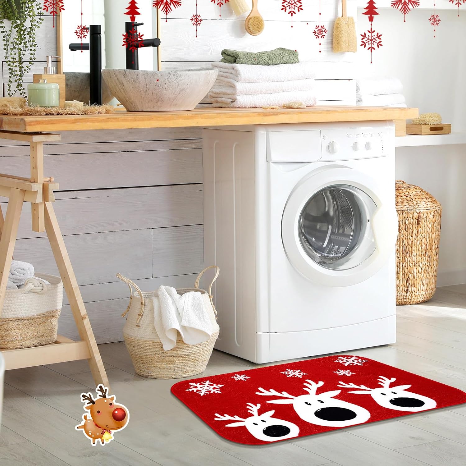 Deleite navideño: disfruta de tu espíritu navideño con nuestra alfombra de baño de renos; con un hermoso diseño inspirado en las fiestas, nuestra alfombrilla cuenta con intrincados patrones de renos y copos de nieve con vibrantes colores rojo y blanco, ofreciendo alegría y calidez en cualquier habitación