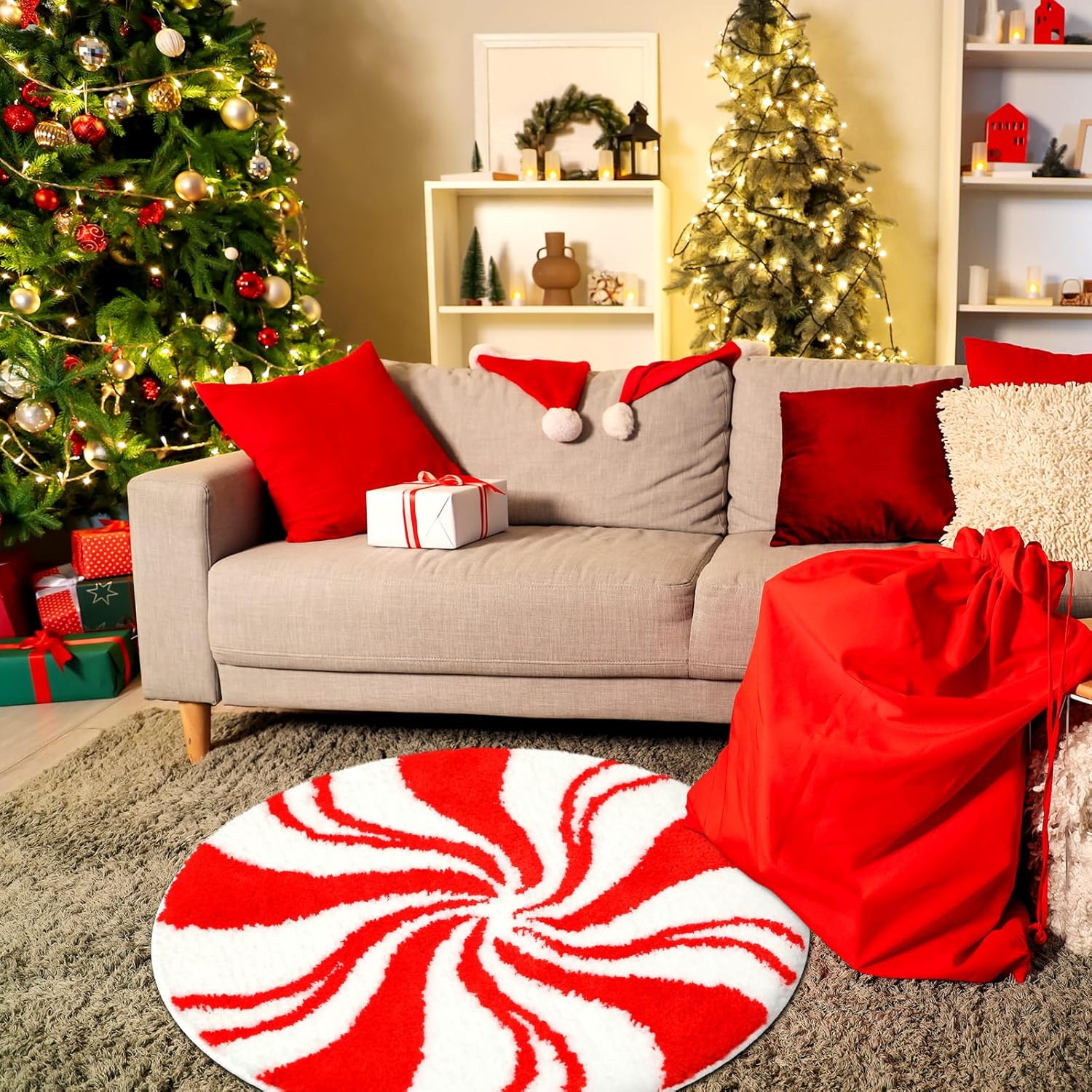 El paquete incluye: recibirás una alfombra de dulces de Navidad diseñada con un patrón de caramelo rojo y blanco para marcar la diferencia en la mayoría de las alfombras del mercado; está bien hecha, suave y cómoda