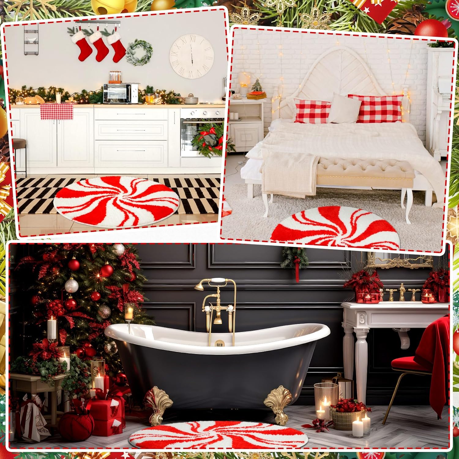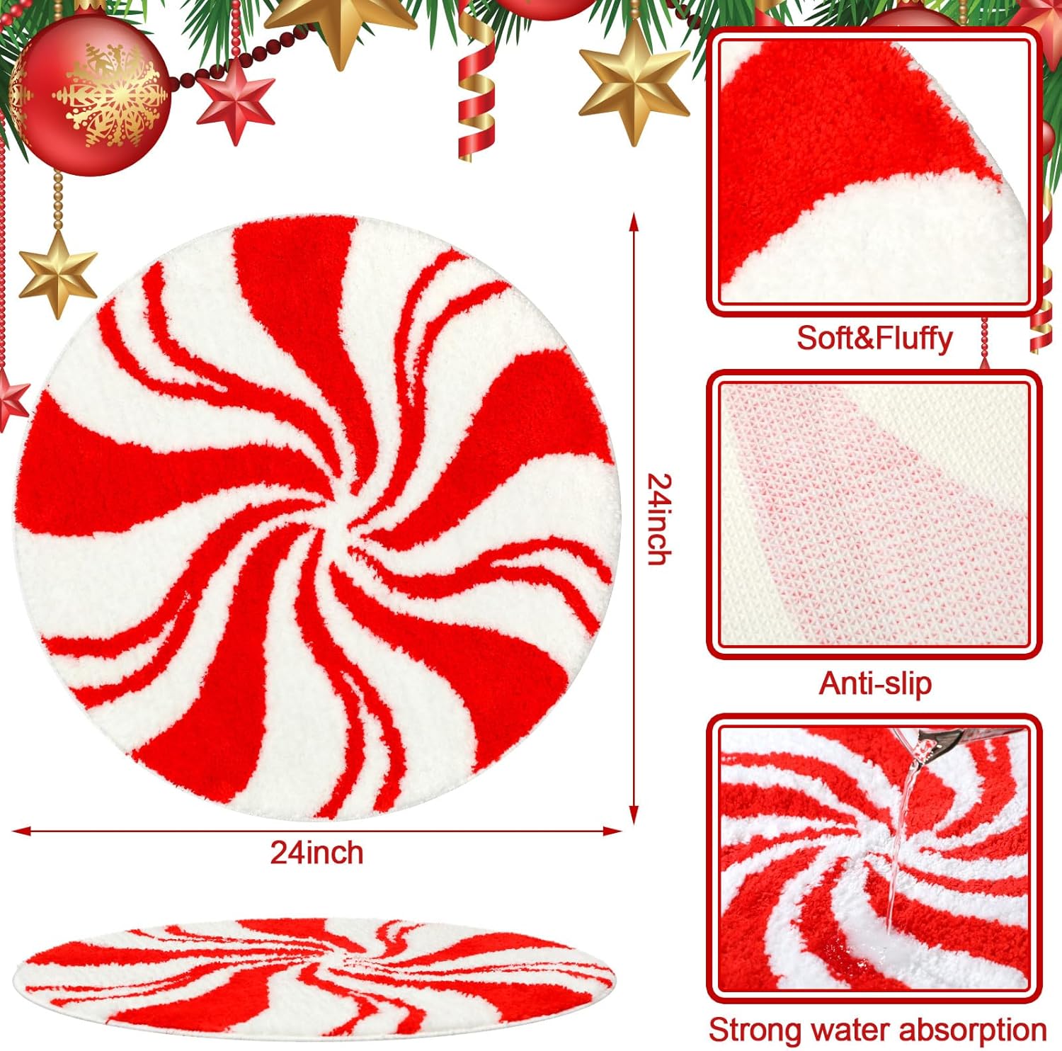 Diseño antideslizante: el tapete de baño de Navidad tiene una parte trasera antideslizante que te mantiene seguro, ya sea en un suelo liso o donde hay agua, y proporciona una sensación cómoda a tus pies; es fácil de usar y es de 24 (aprox. 61.0 cm) de tamaño, para cubrir el suelo del baño