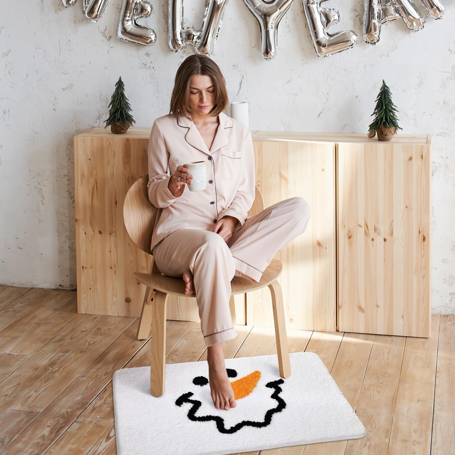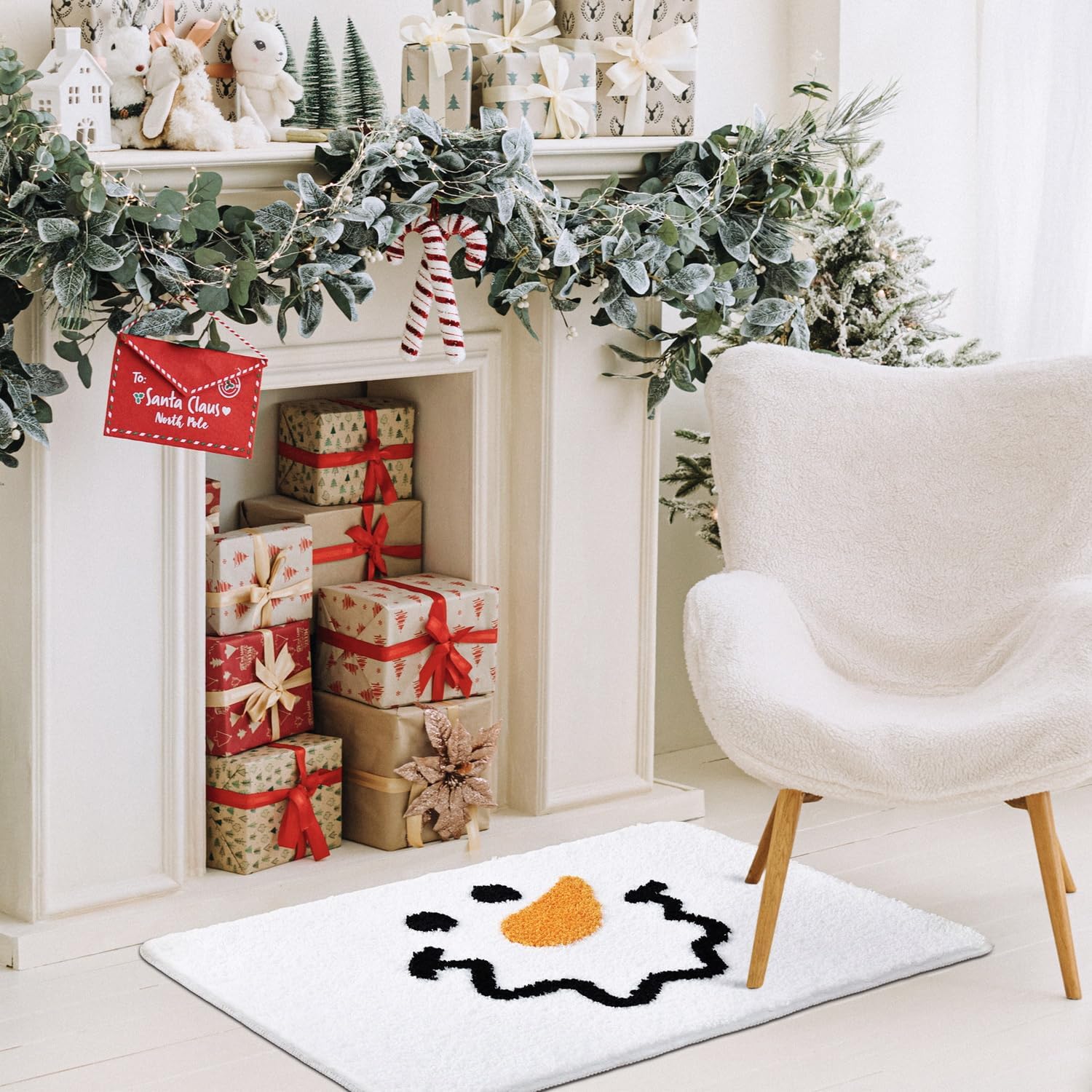 Derechos de autor: el tamaño de la alfombra de baño de Navidad es de 30 x 20 (aprox. 50.8 cm), el patrón de muñeco de nieve de la alfombra de baño de microfibra es lindo, añadiendo un ambiente navideño a tu habitación.