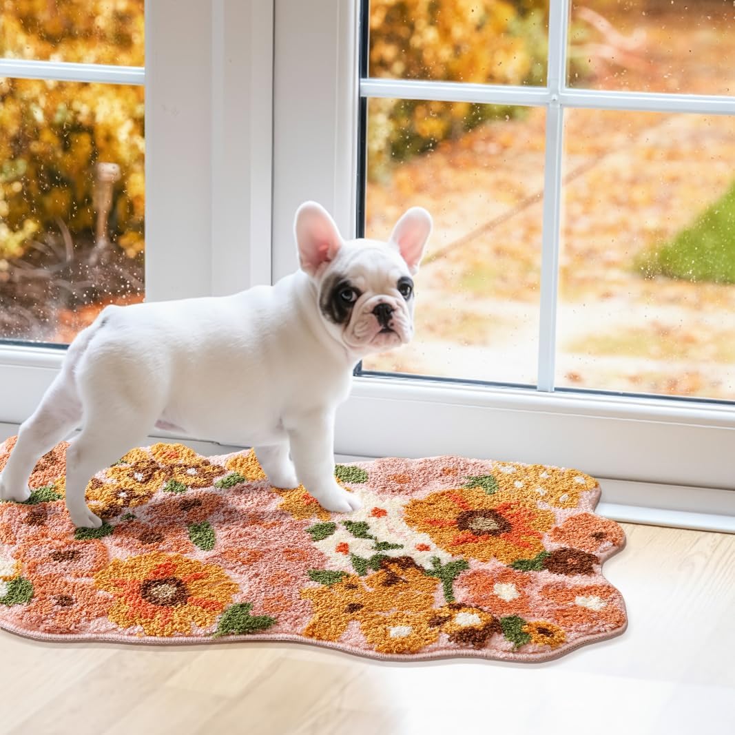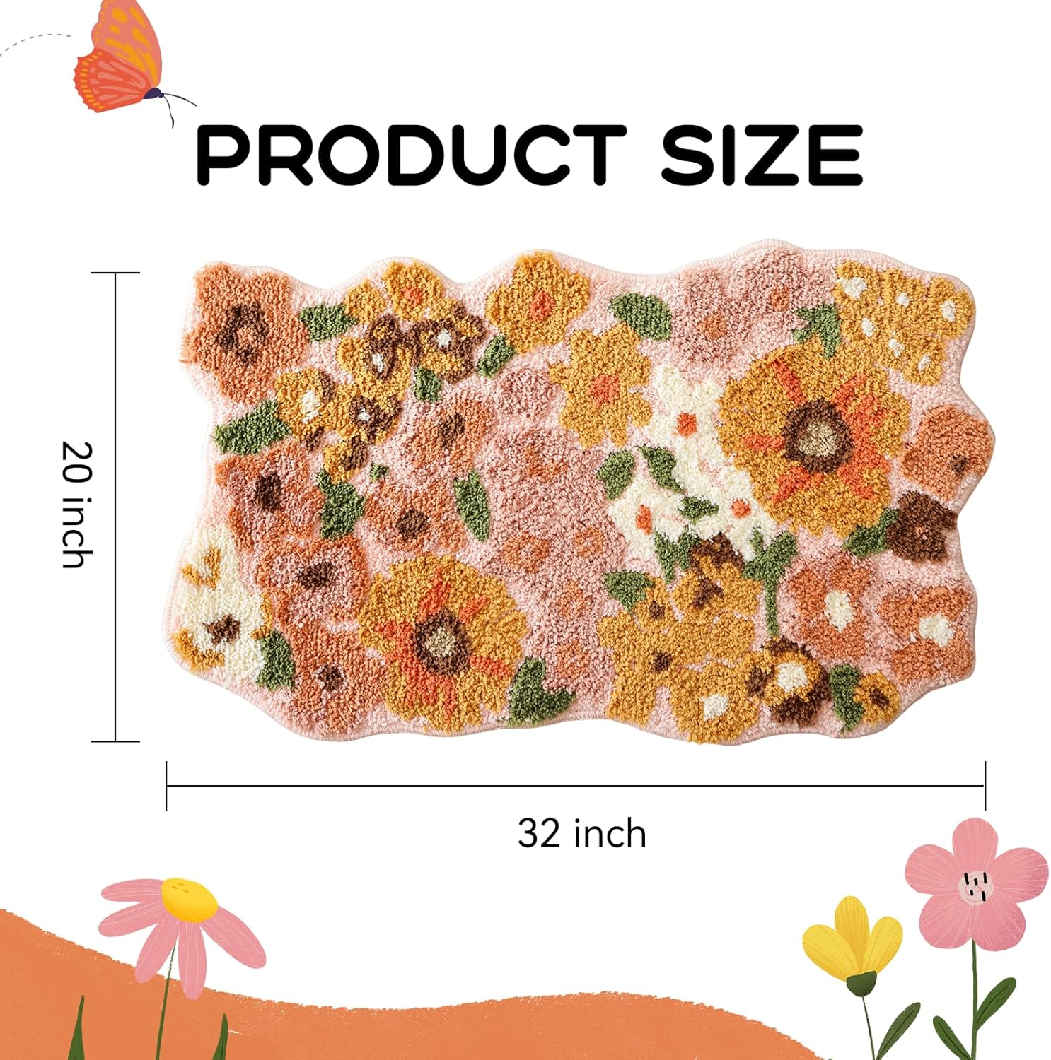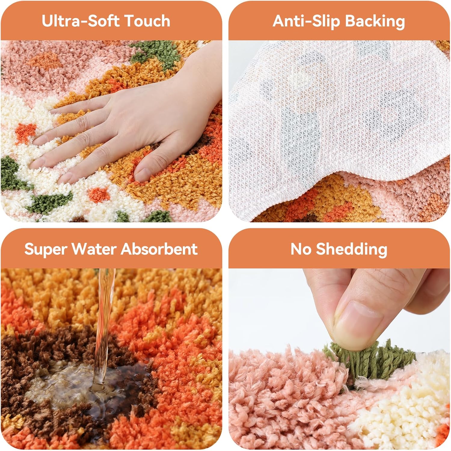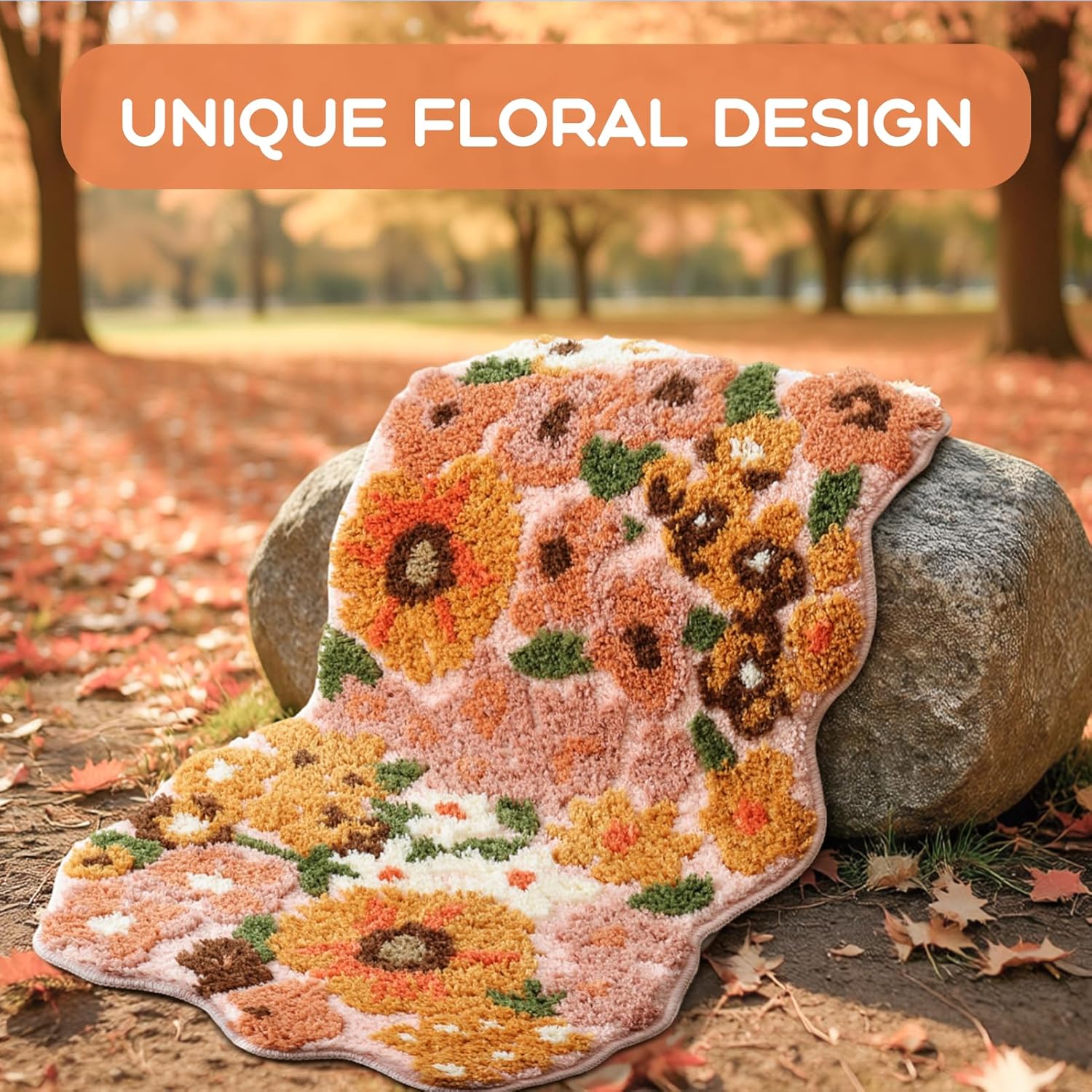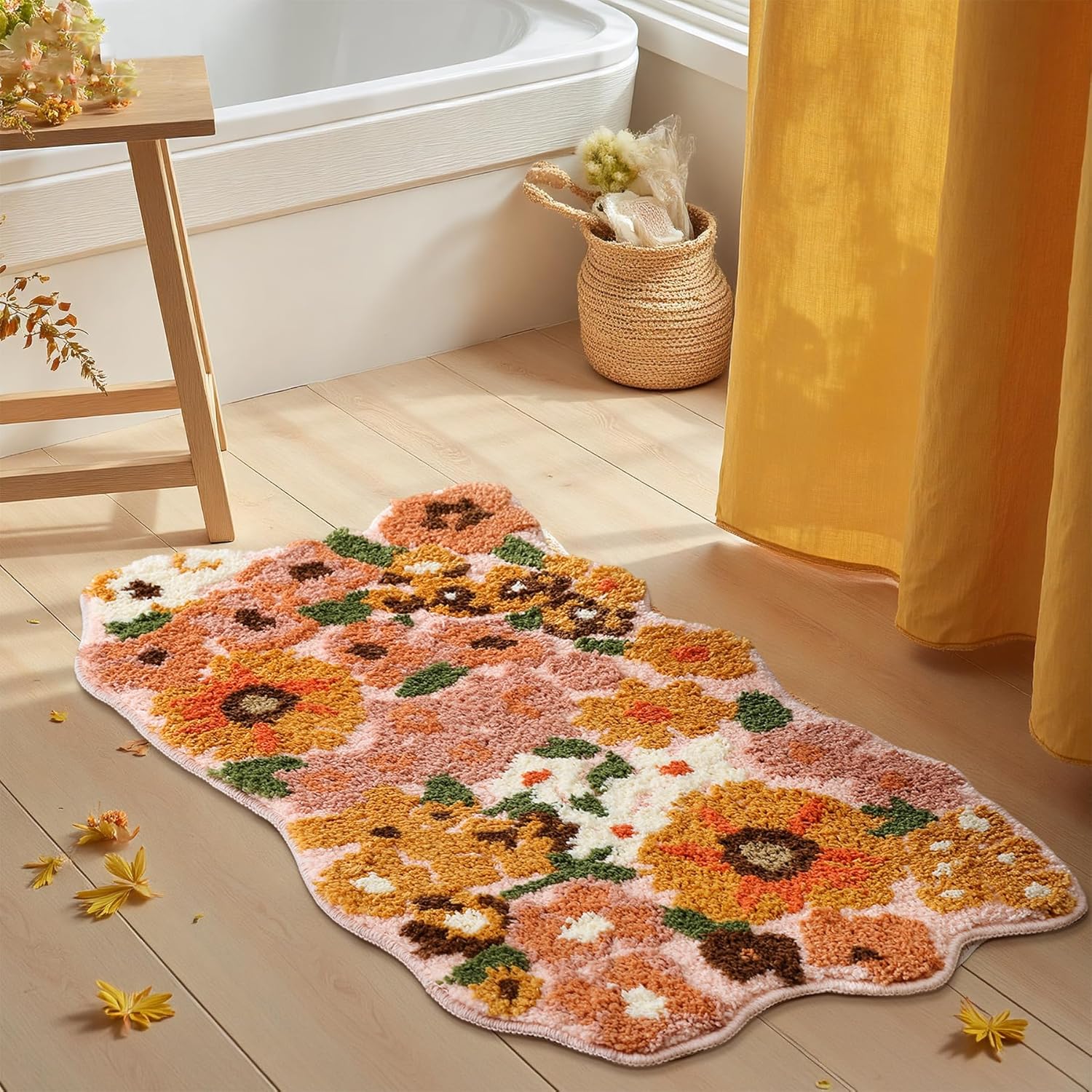 Bonito diseño floral de alfombra de baño: esta bonita alfombra de baño aporta encanto de flores silvestres con una forma divertida y un tono naranja suave, perfecta para los amantes del estilo de casa de campo y granja que buscan funcionalidad y estilo