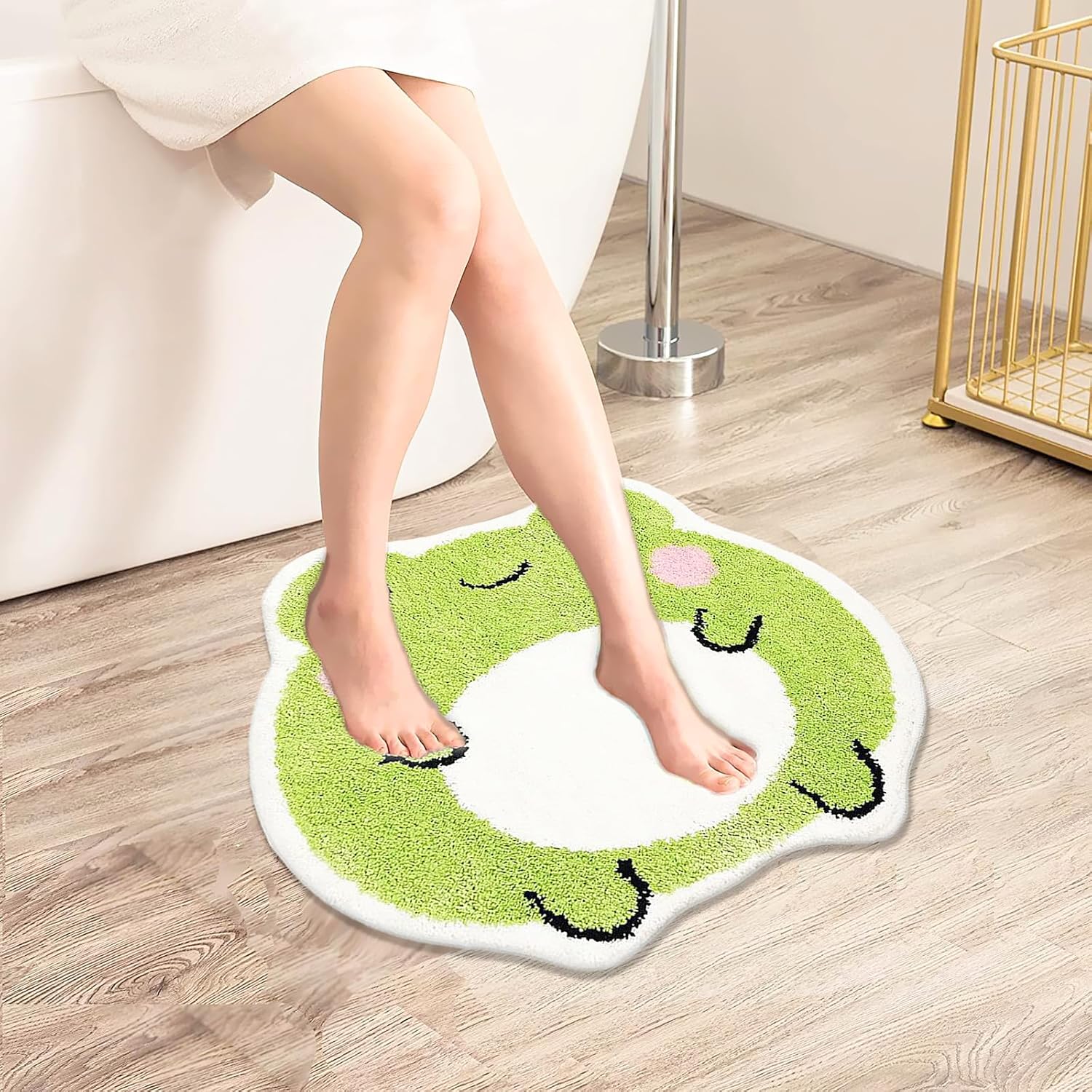 UKELER Tapetes de baño con forma de rana para niños, pequeños, peludos, suaves, antideslizantes, lavables, absorbentes, para fregadero, baño, dormitorio, habitación de los niños, 26 x 22 pulgadas