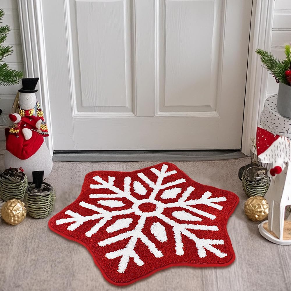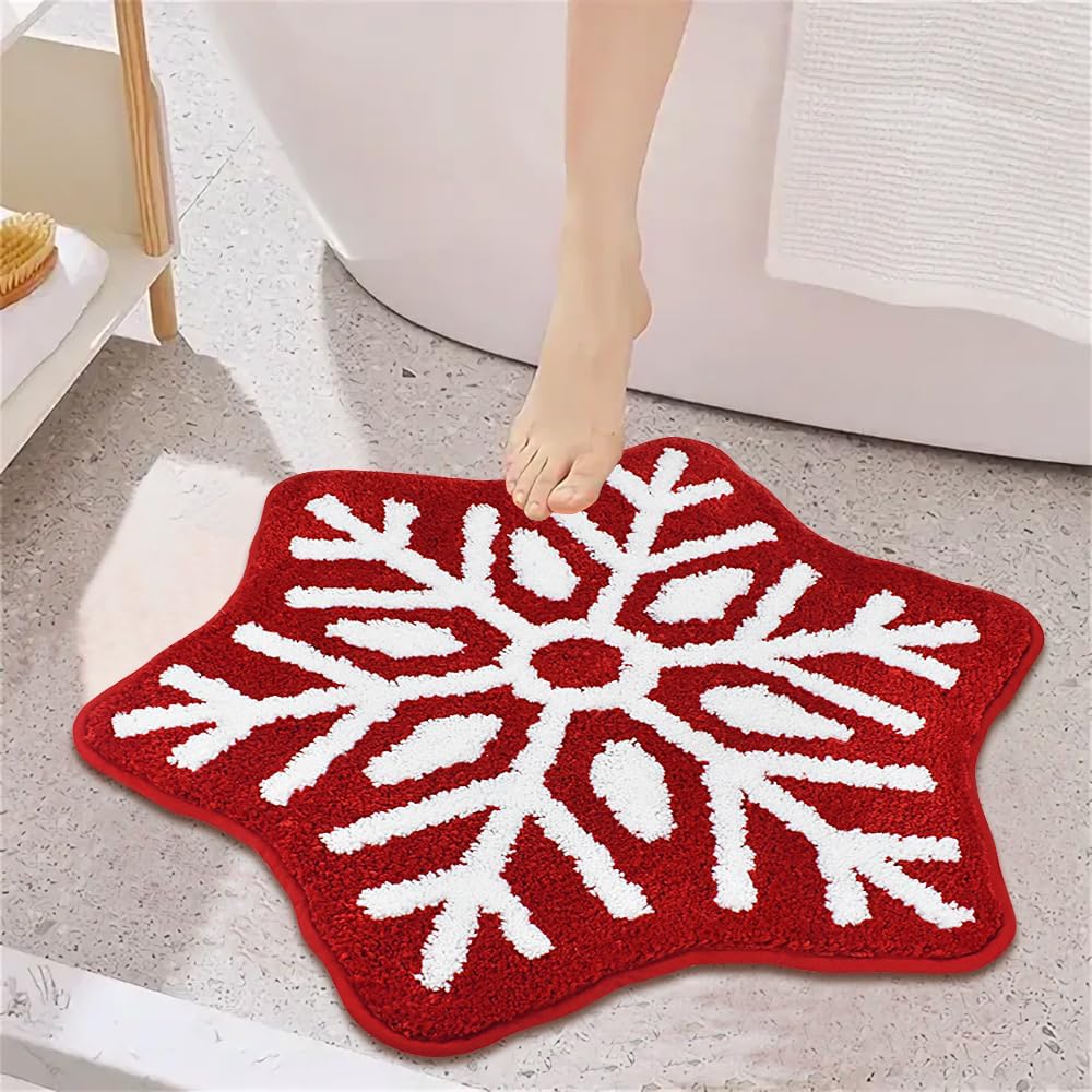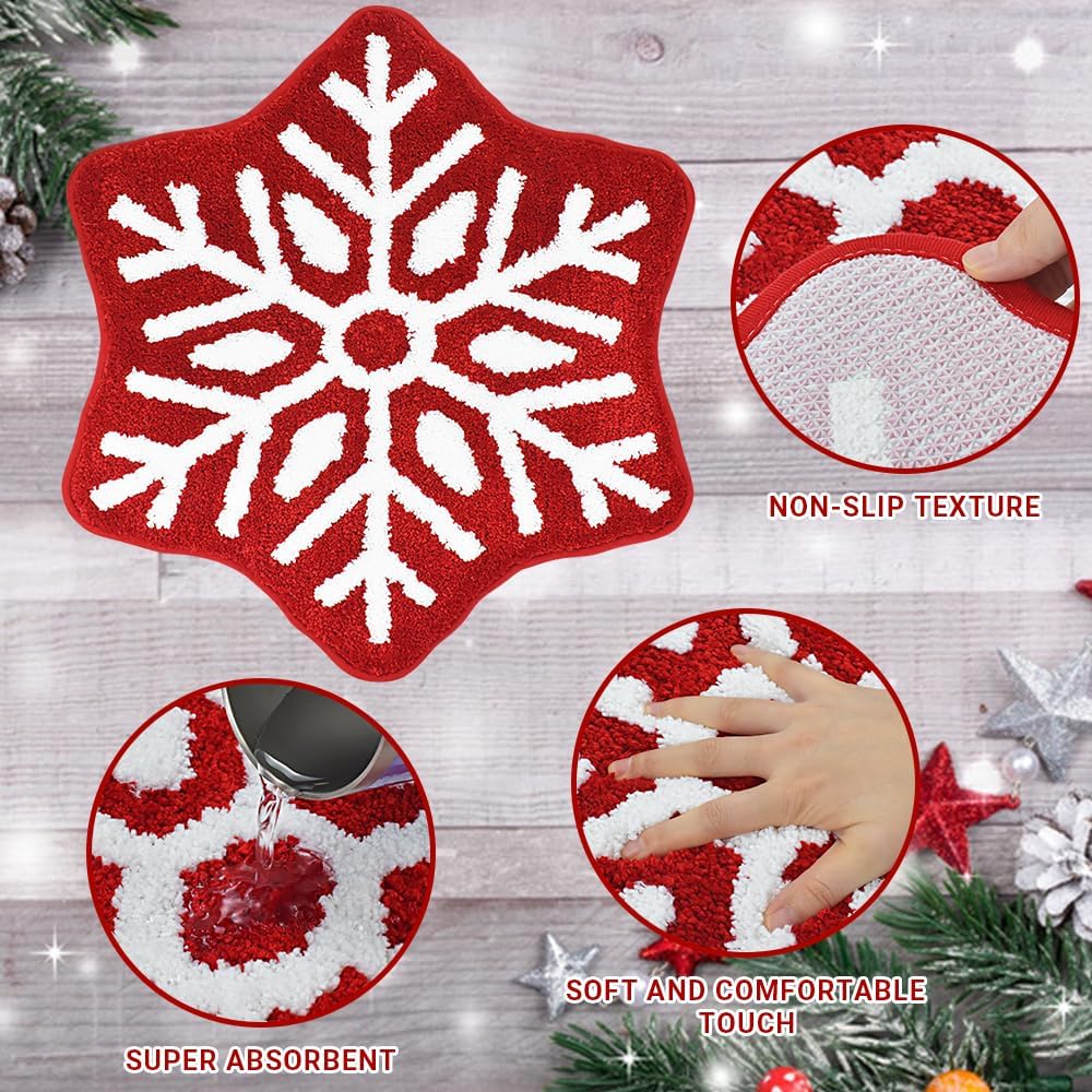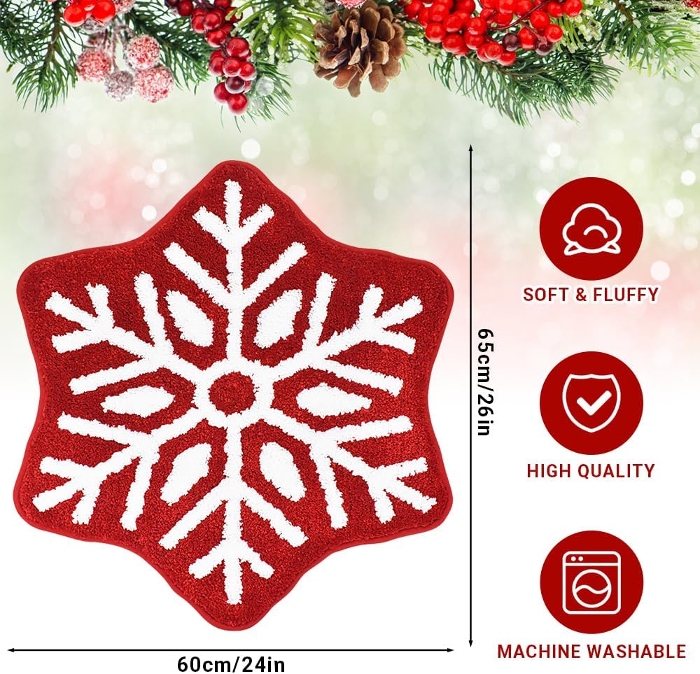 Alfombrilla de baño de copo de nieve: nuestra alfombra de baño de Navidad mide 25 x 21 x 7 (aprox. 17.8 cm), con un tema de invierno e incorporando inteligentemente elementos de copo de nieve. Adecuado para cualquier habitación, creando un ambiente festivo cálido y romántico