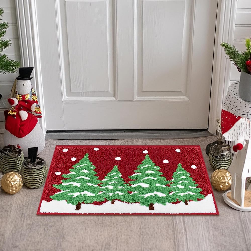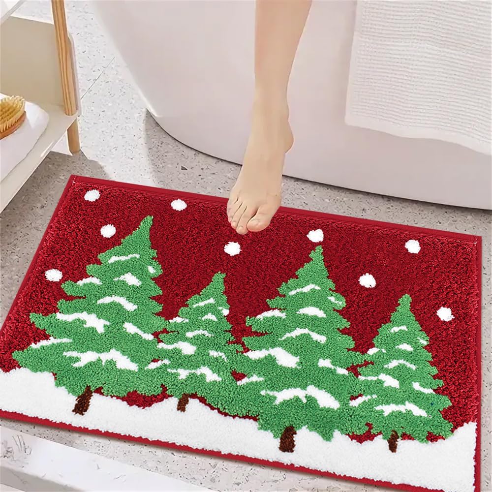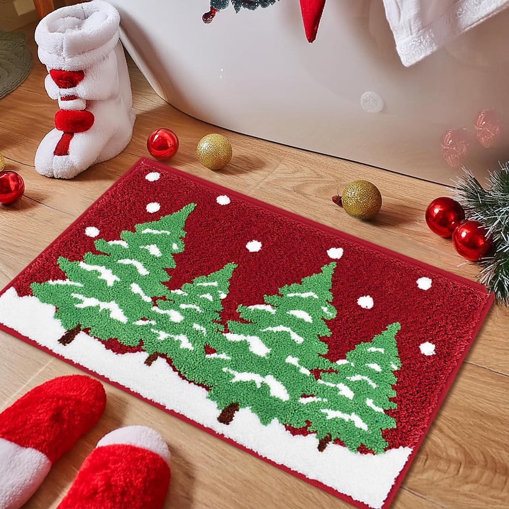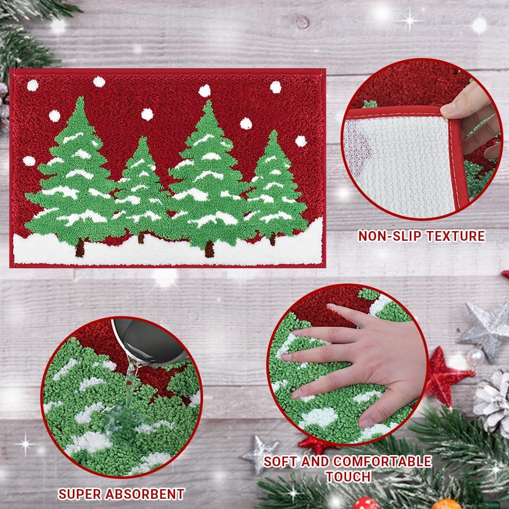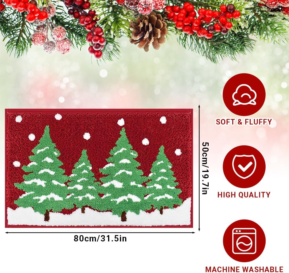 Alfombra de baño de Navidad: nuestra alfombra de baño de Navidad mide 25 x 21 x 7 (aprox. 17.8 cm), con un tema festivo con una base roja adornada con diseños de árboles de Navidad, creando un ambiente festivo cálido y romántico