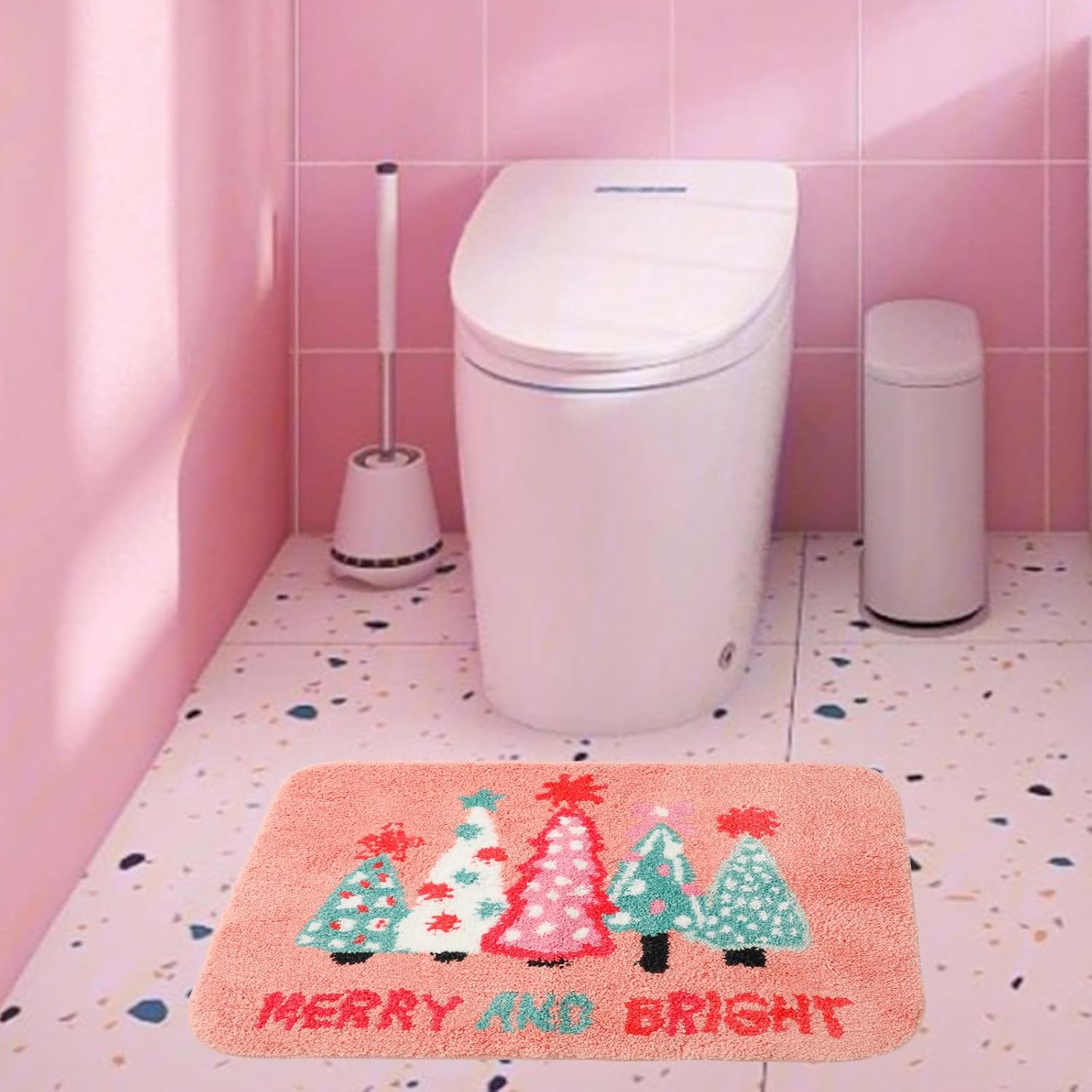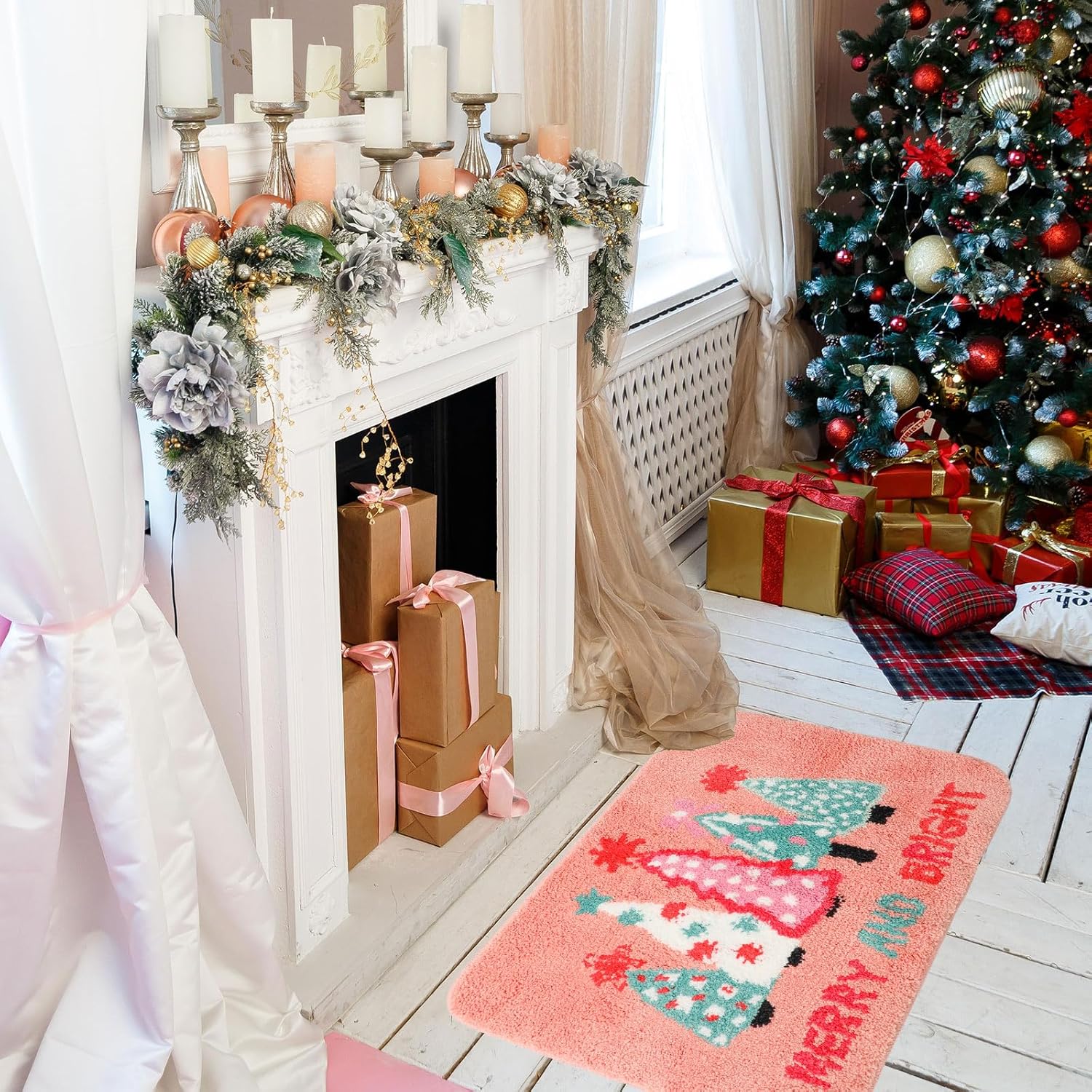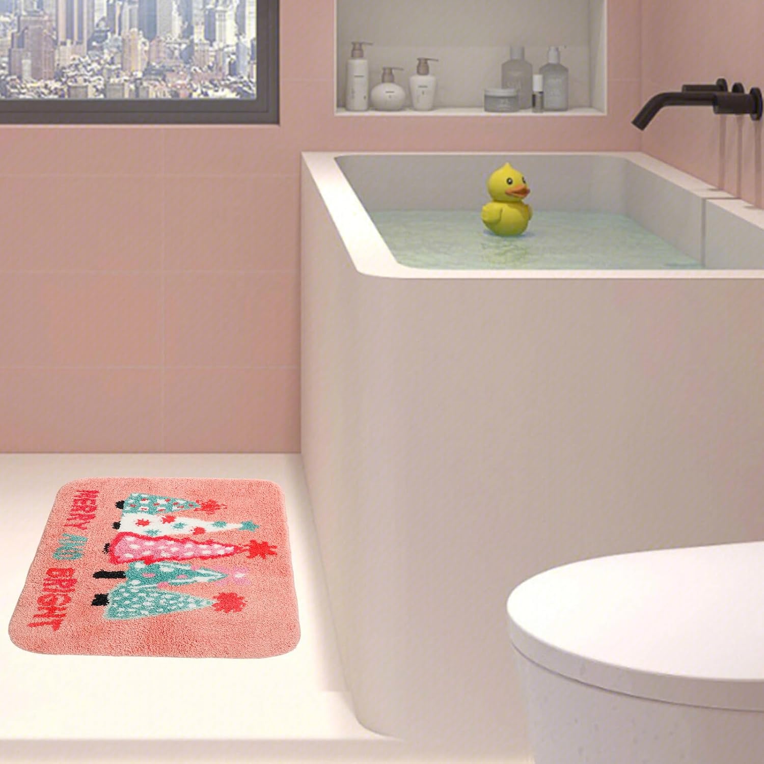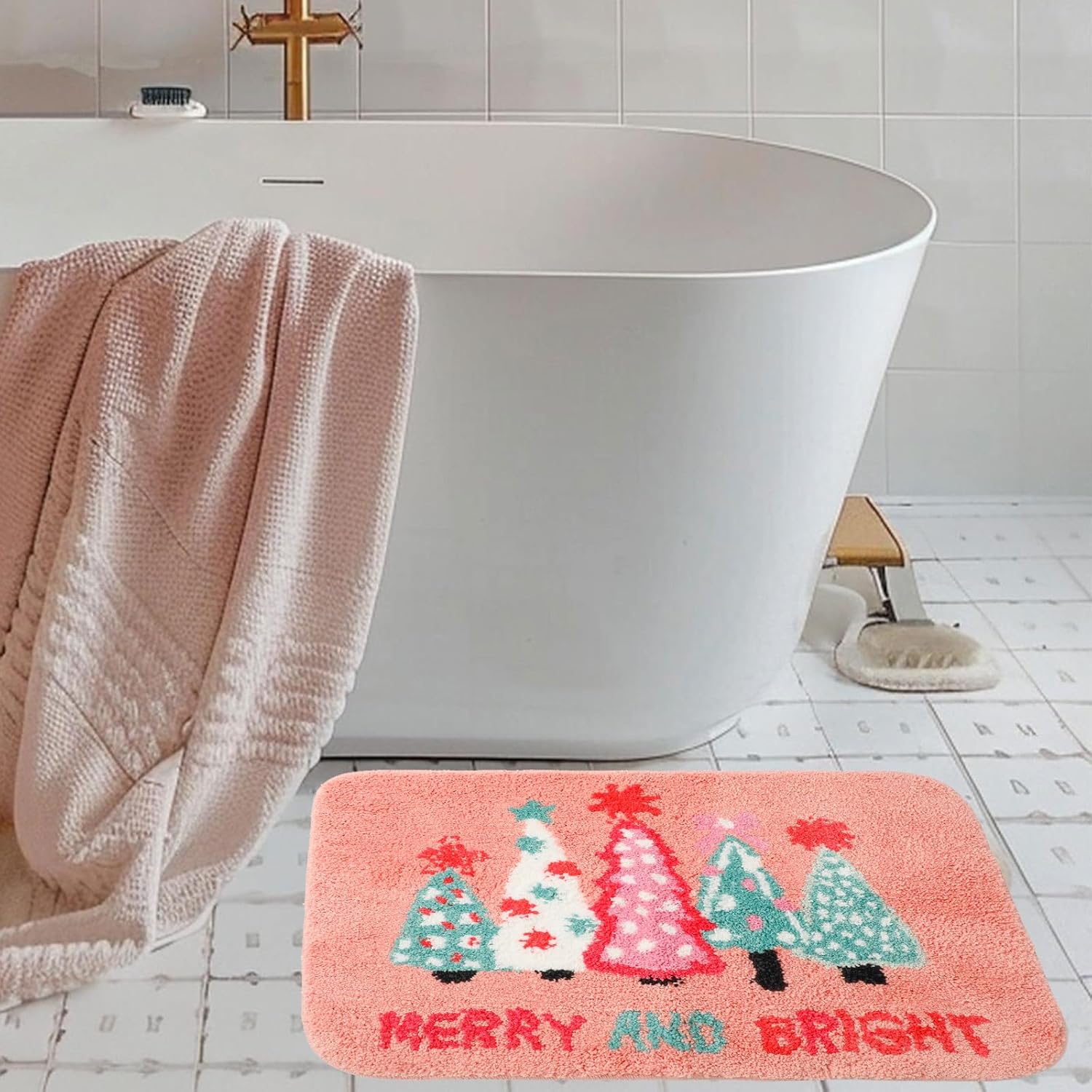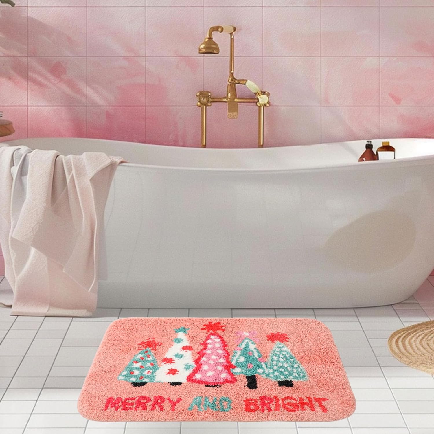 Whaline Alfombra de baño rosa de Navidad con diseño de árbol de Navidad, antideslizante, alfombra de ducha para puerta delantera, alfombra para el hogar, cocina, dormitorio, porche, entrada